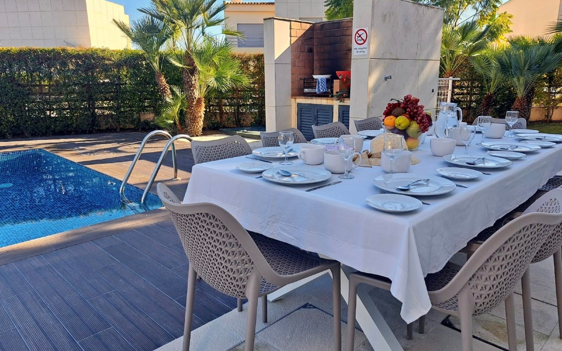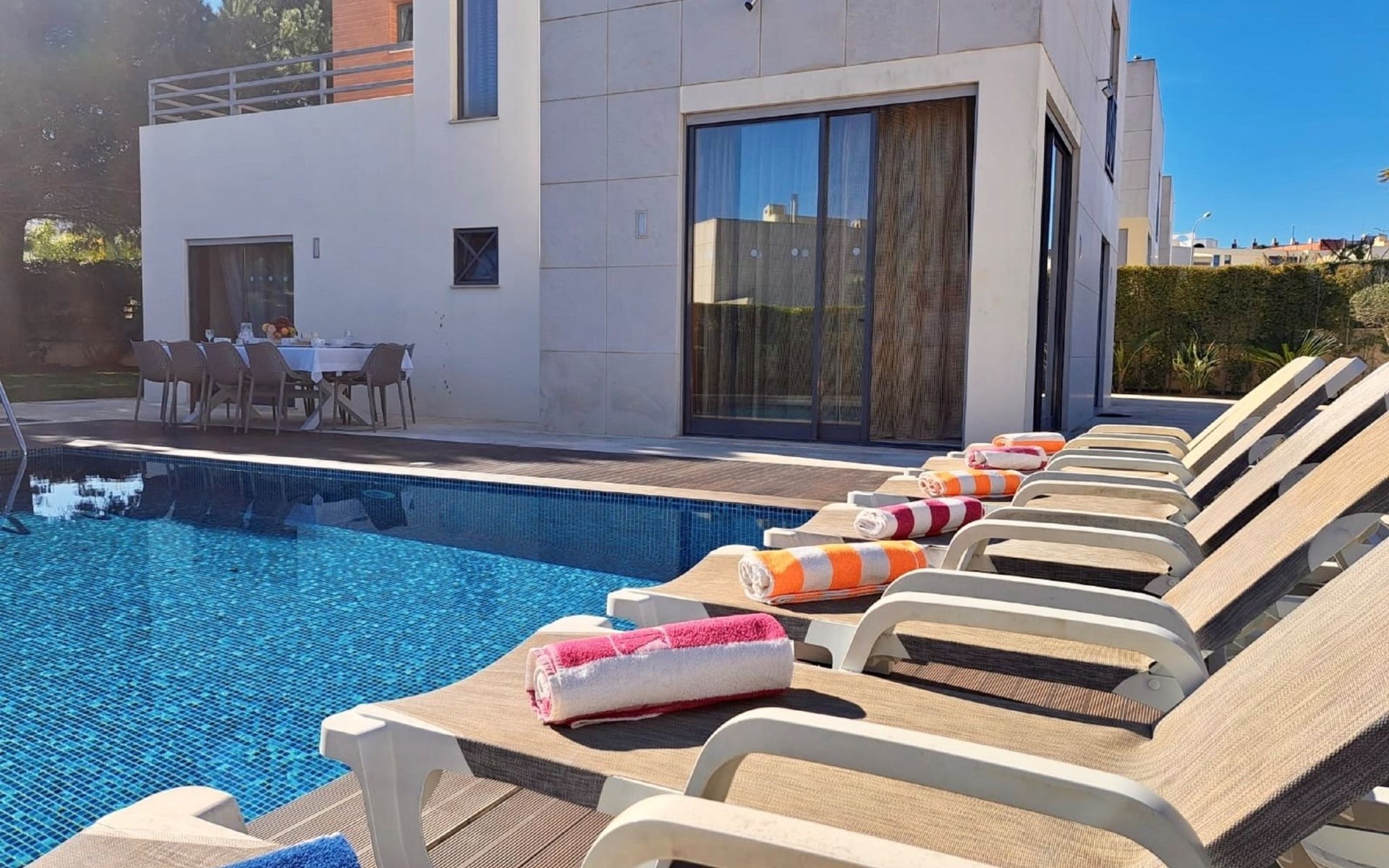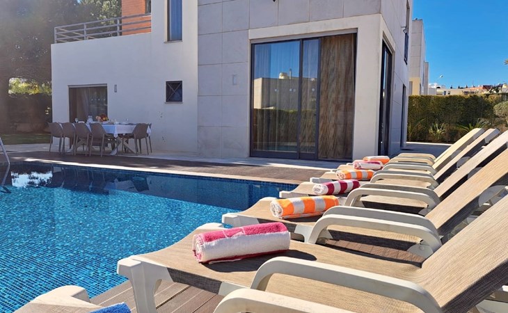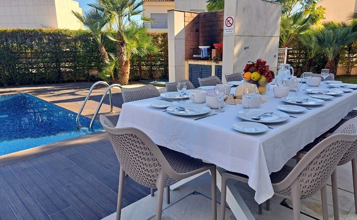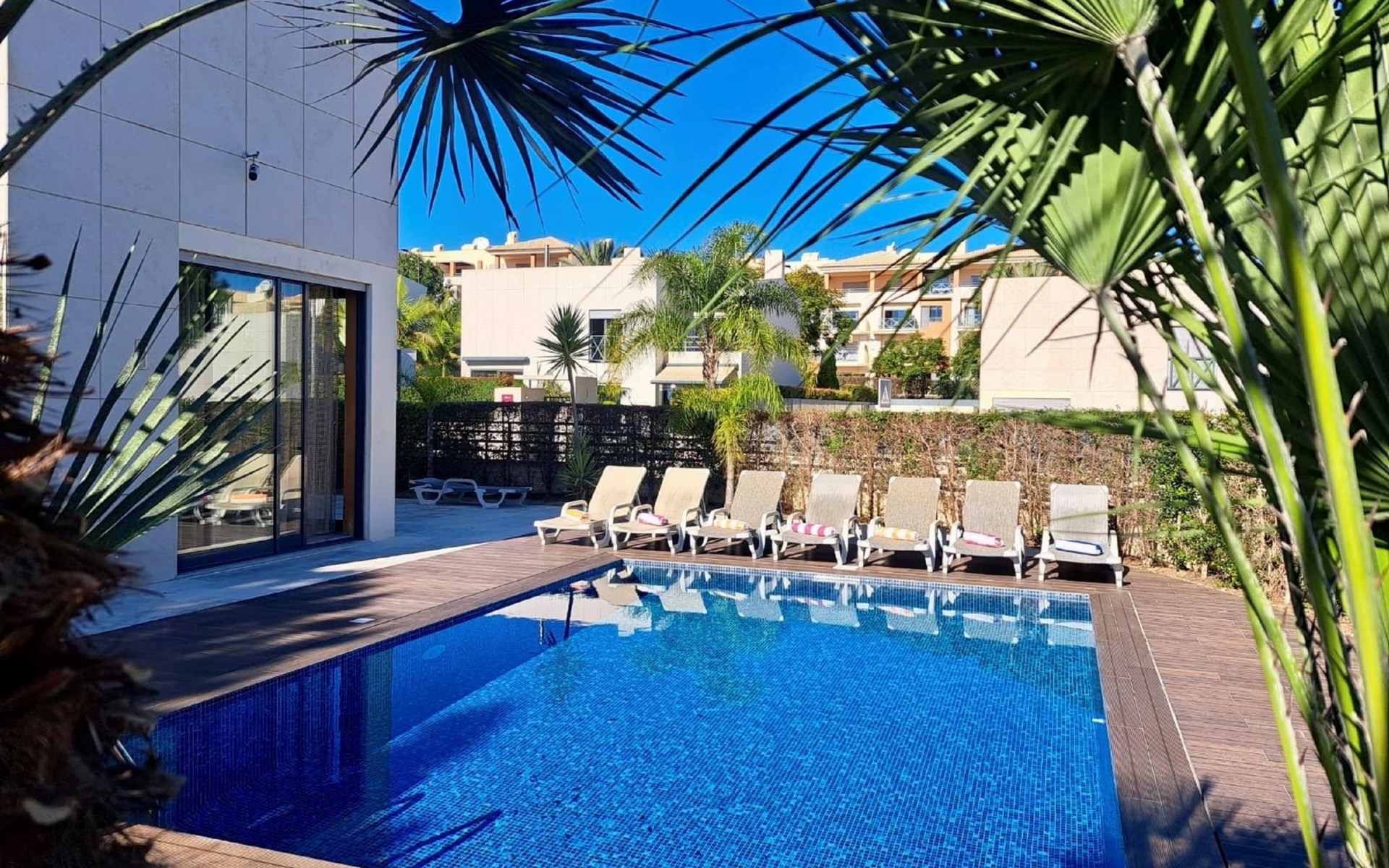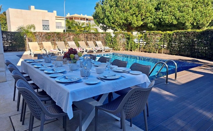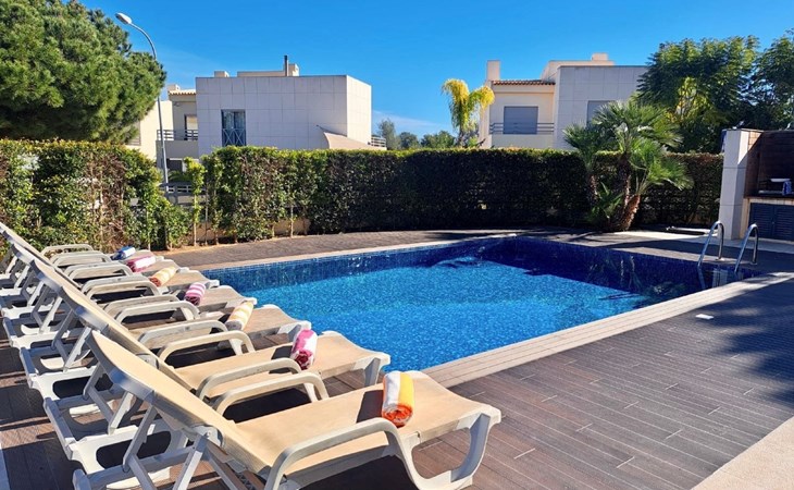 Very cosy, comfortable villa "Corcovada Lote 28 VIP Properties". In the resort 3.1 km from the centre of Albufeira, residential area (villas), 1.9 km from the sea. Private: swimming pool angular, heated (4 x 8 m, depth 150 - 150 cm, seasonal availability: 01.Jan. - 31.Dec.). Outdoor shower. In the house: WiFi, air conditioning, washing machine. Parking at the house. Shop 750 m, grocery 600 m, supermarket, shopping centre 750 m, restaurant 400 m, bar 750 m, bakery 600 m, café 600 m, bicycle rental 800 m, bus stop 300 m, sandy beach "Praia da Oura, Albufeira" 1.5 km, diving center 6.1 km. Marina 7 km, golf course (18 hole) 6.6 km, surf school 11 km, sailing school 15.1 km, tennis 2.5 km, riding stable 12 km, children's playground 2.6 km. Nearby attractions: Aqualand 19.5 km, Zebra Safari Tours 1.5 km, Krazy World 15.2 km, Algarve Shopping 10 km, Zoomarine 13 km, Faro Airport 38 km. Well-known lakes can easily be reached: Lagoa dos Salgados 14.2 km. Please note: car recommended. Loading and unloading of baggage is possible at the holiday house. Young groups under 25 y.o. will be charged an extra deposit per person on spot. The pool heating service (20ºC-22ºC) must be informed to the KH one week before of your arrival paid on spot. After 7 nights extra 50€ per day for pool heating.