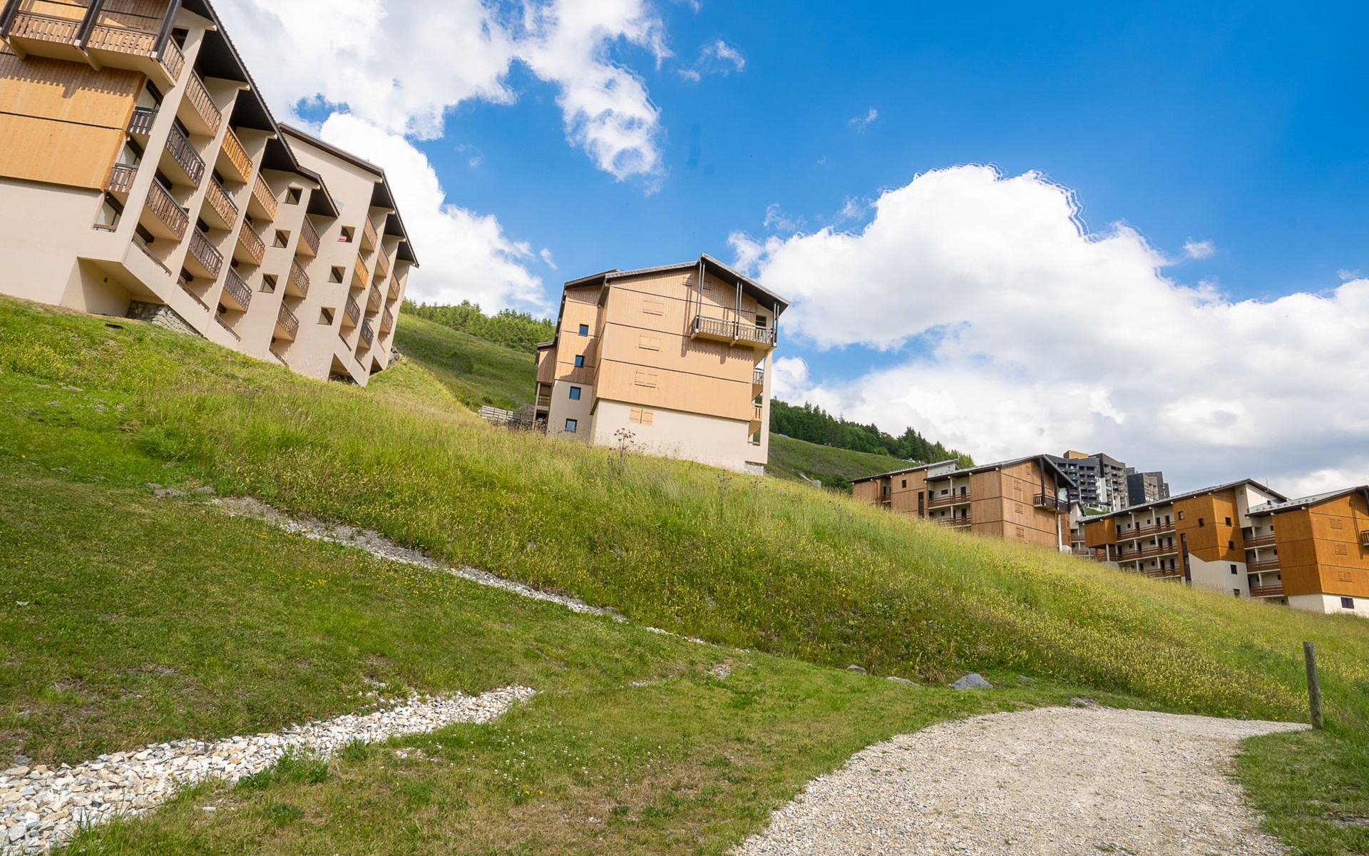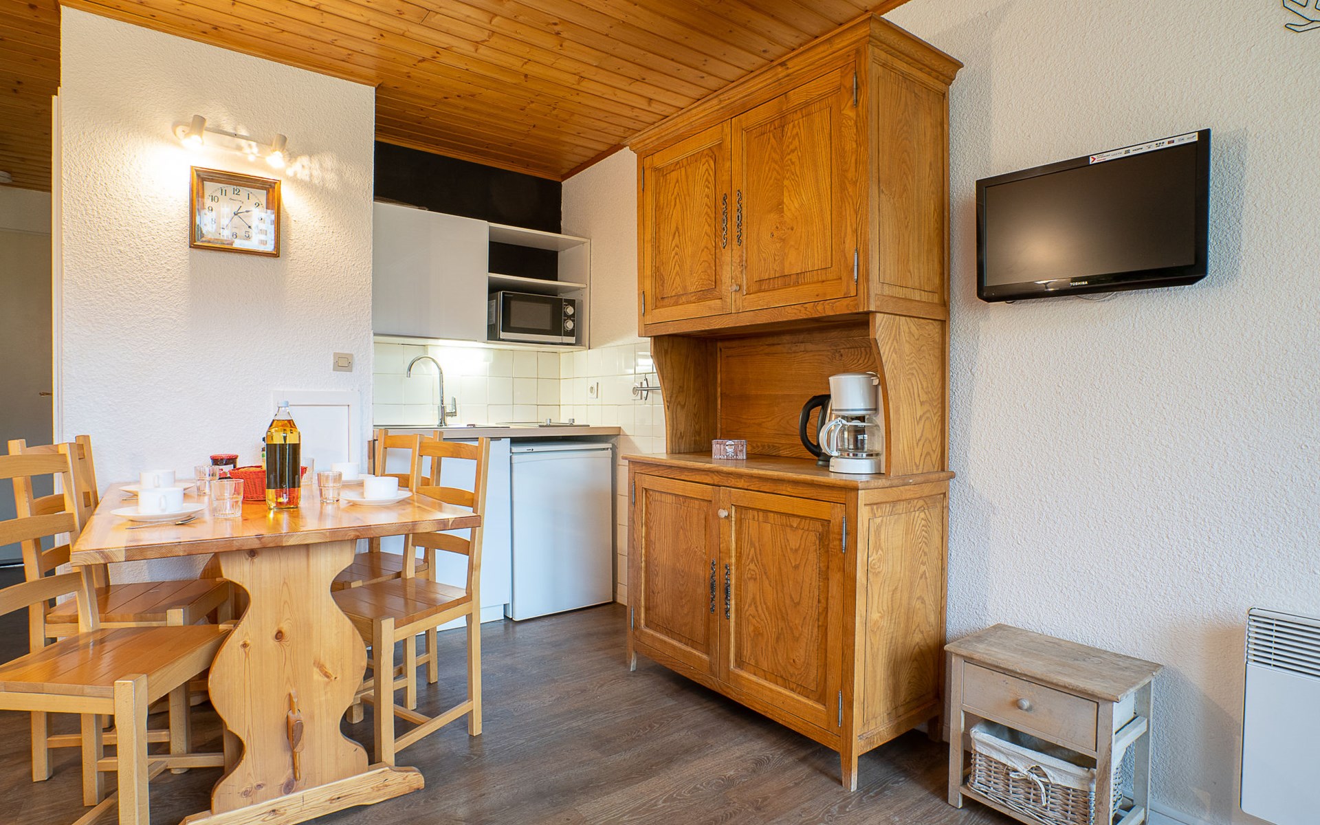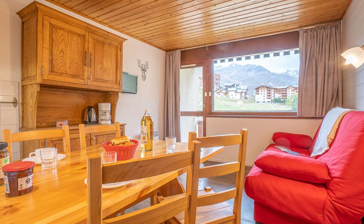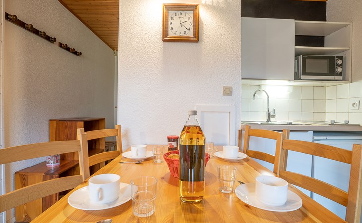 Small residence "Les Asters", 5 storeys. In the district of Fontanettes 800 m from the centre of La Croisette, in a quiet position, 200 m from the skiing area. Public parking on the road. Grocery, shopping centre 800 m, 10 minute walk to the centre, bus stop " ARRET les fontanettes" 500 m. Sports centre 800 m, chair lift, skisport facilities 200 m, slopes 50 m, ski rental 50 m, ski school 800 m, cross country ski track 1.5 km. Well-known ski regions can easily be reached: Les 3 Vallées. Please note: no lift. The photograph shows a typical example. Additional accommodations can be booked.