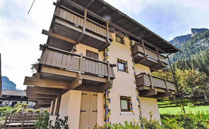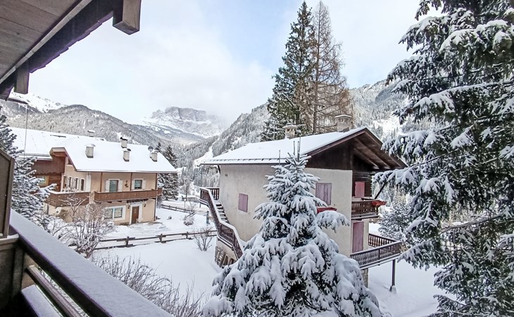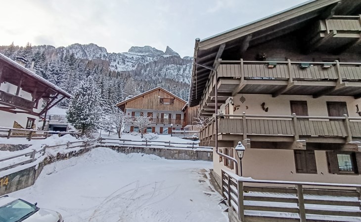 Comfortable apartment house "Fontanelle", 3 storeys. 2 houses in the residence. In the hamlet Alba 2.3 km from the centre of Canazei, in a quiet position, 1.2 km from the skiing area. In the house: central heating system, heating available only from 01.Dec. - 01.May.. In Winter: please take snow chains. Parking at the house, public parking on the road. Supermarket 800 m, restaurant, bar 600 m, bus stop 100 m. Mountain railway 1.3 km, gondola lift 1.3 km, ski bus stop 100 m. Nearby attractions: Sella Ronda 1.3 km, Lago di Carezza 26 km.
