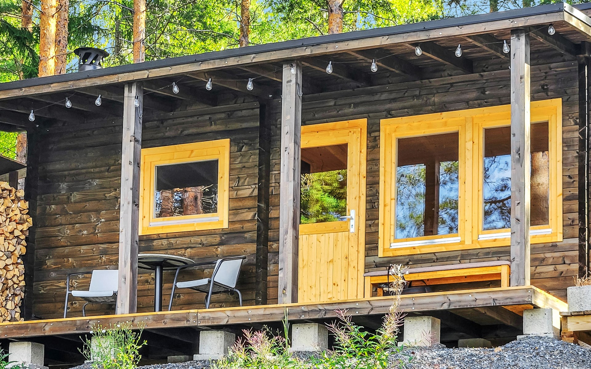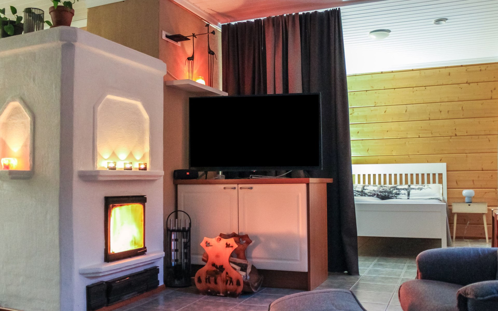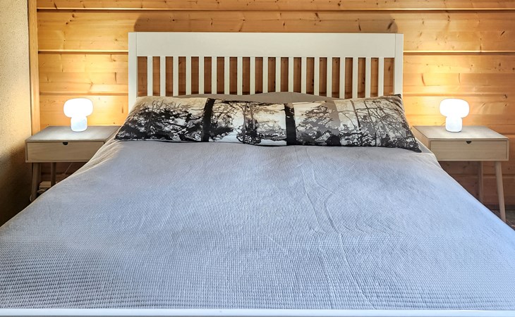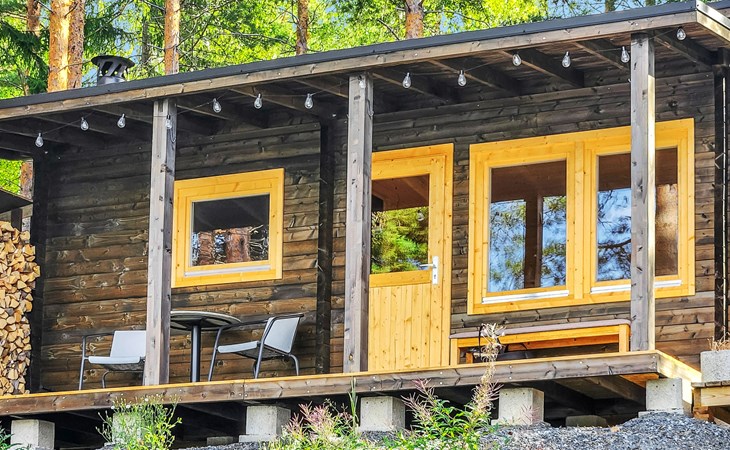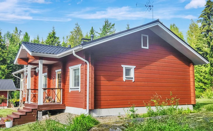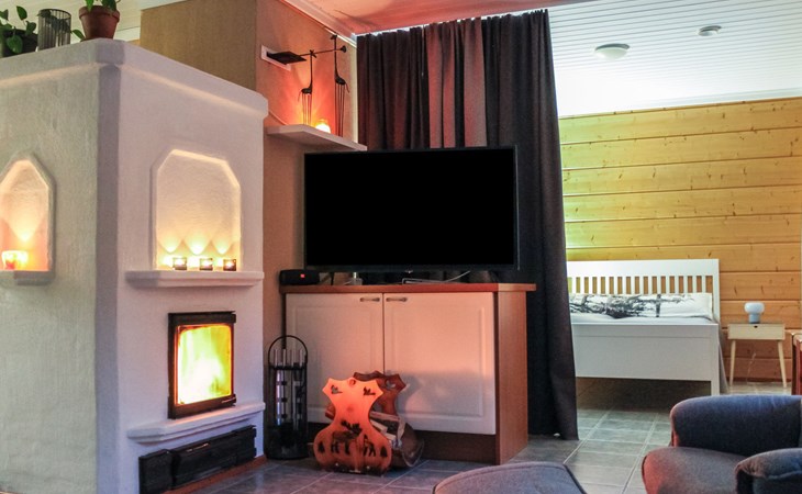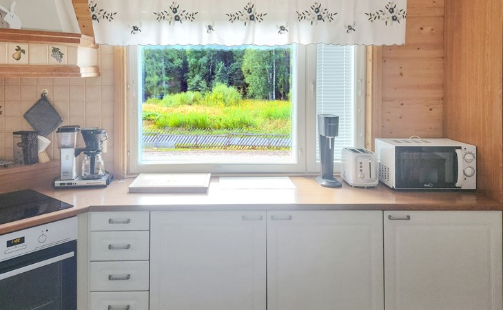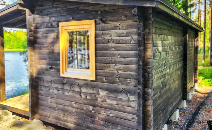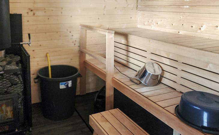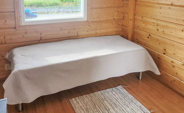 In addition, there is a double bed (160 cm) in the sleeping alcove separated by a curtain. There is also a sofa bed (120 cm) and two folding mattresses as a spare bed. The sauna building's sofa bed (120 cm) is also an alternative bed. The property has beds for up to eight people.