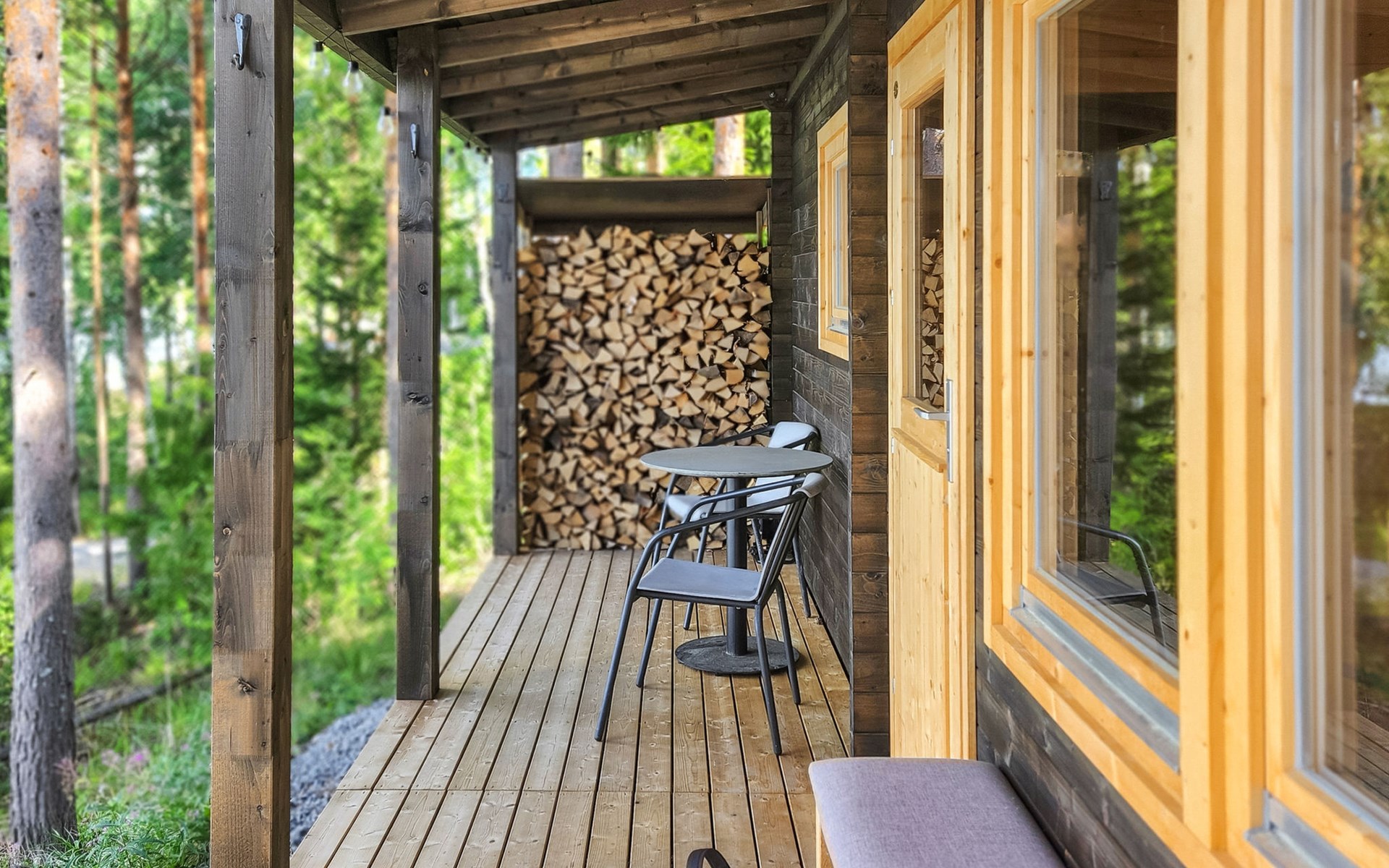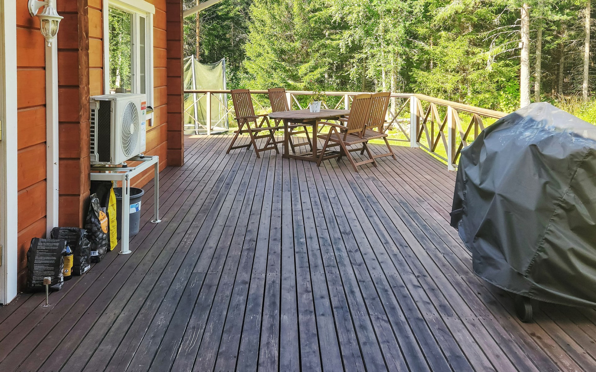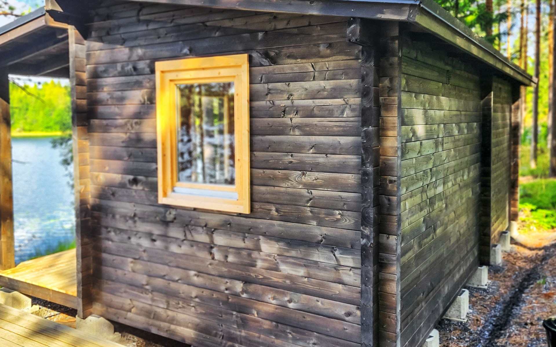 In addition, there is a double bed (160 cm) in the sleeping alcove separated by a curtain. There is also a sofa bed (120 cm) and two folding mattresses as a spare bed. The sauna building's sofa bed (120 cm) is also an alternative bed. The property has beds for up to eight people.