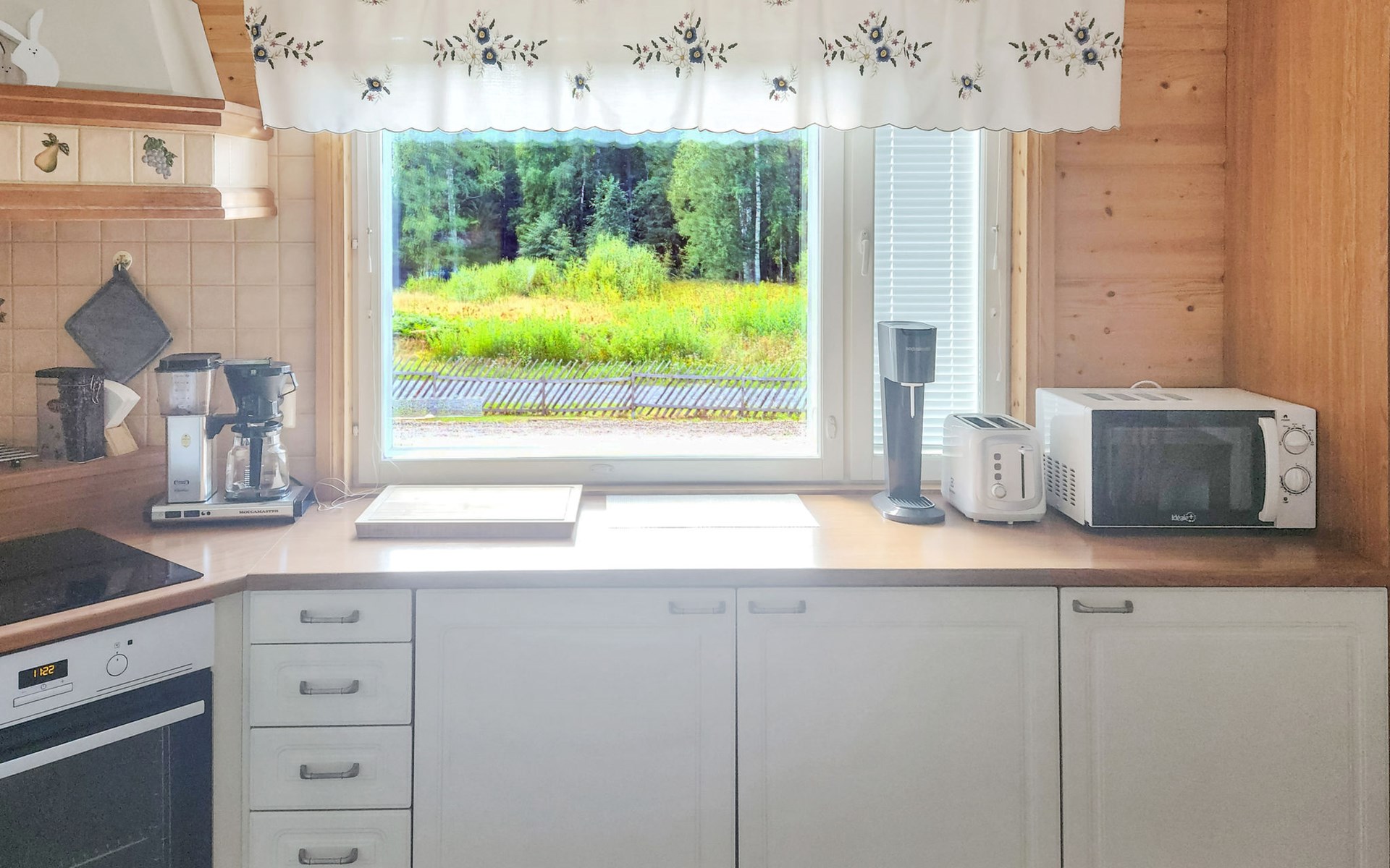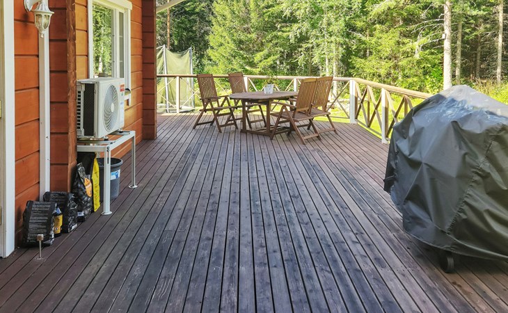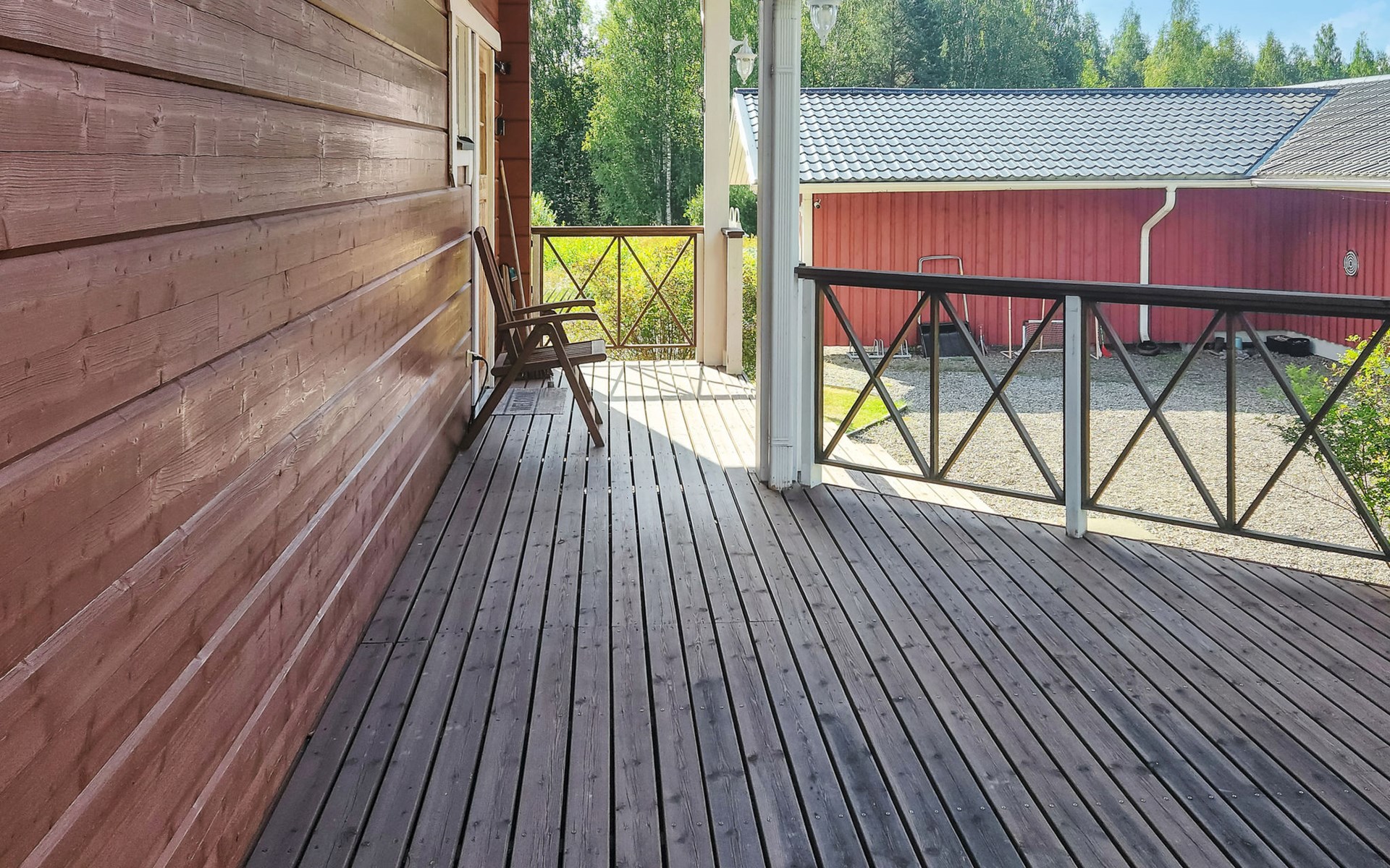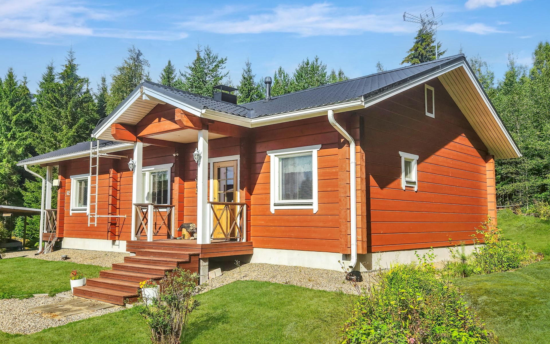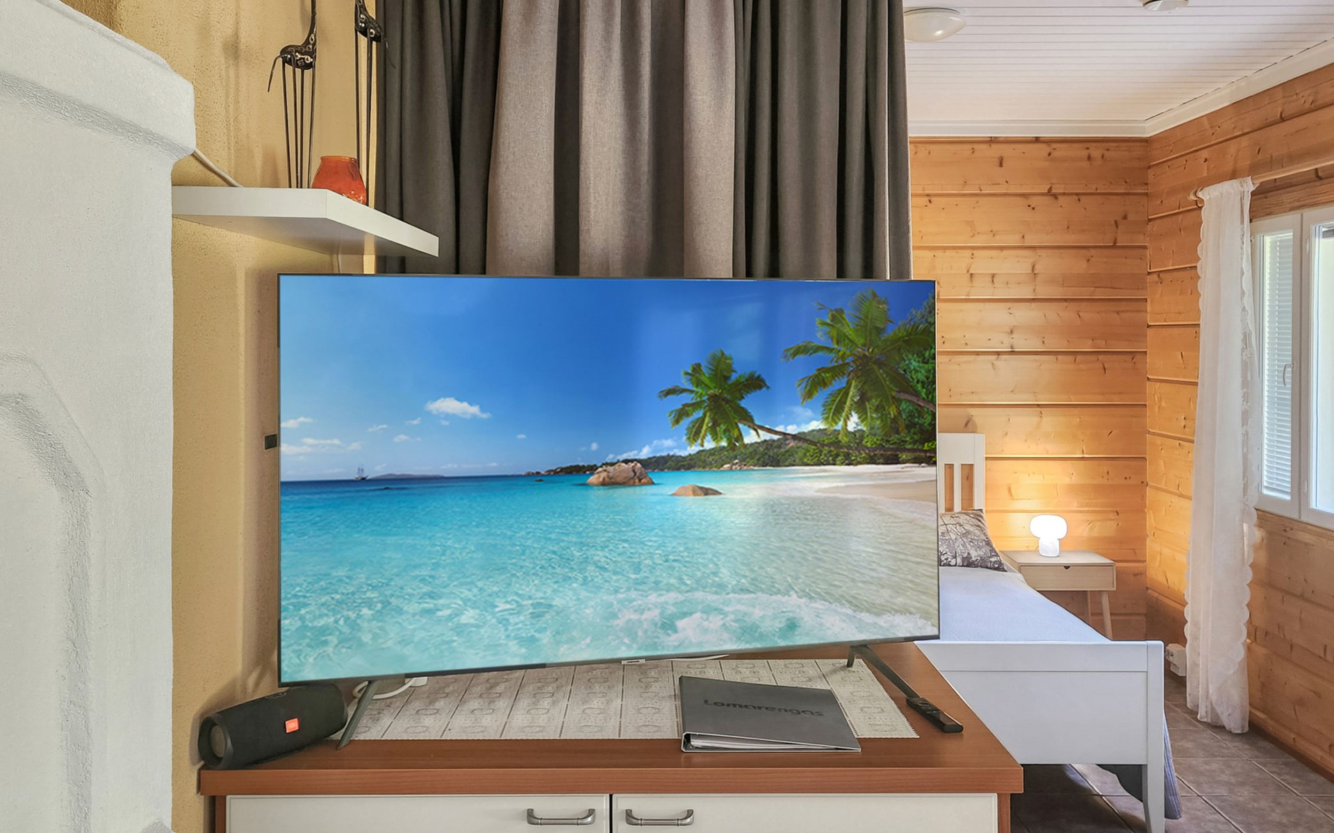 In addition, there is a double bed (160 cm) in the sleeping alcove separated by a curtain. There is also a sofa bed (120 cm) and two folding mattresses as a spare bed. The sauna building's sofa bed (120 cm) is also an alternative bed. The property has beds for up to eight people.