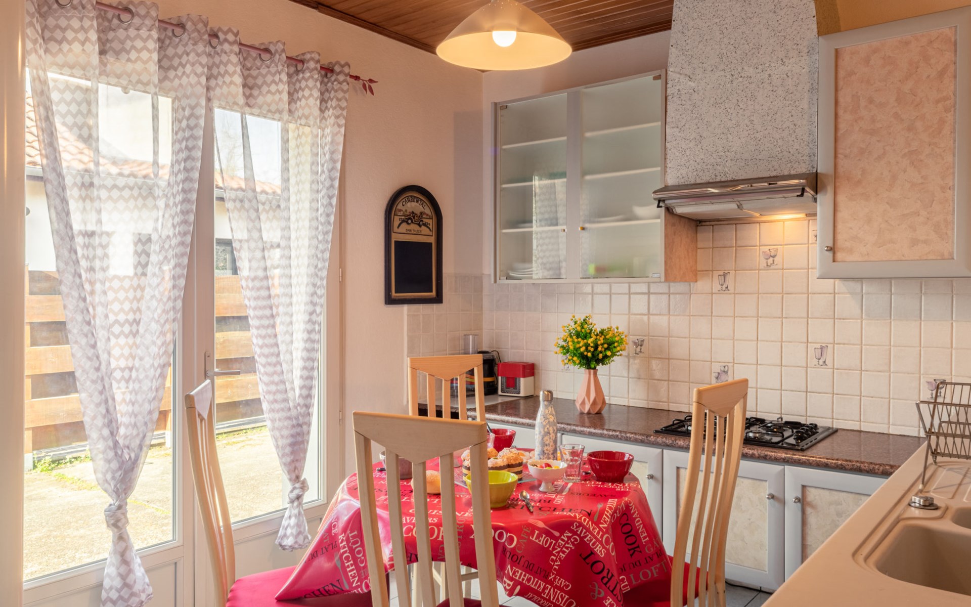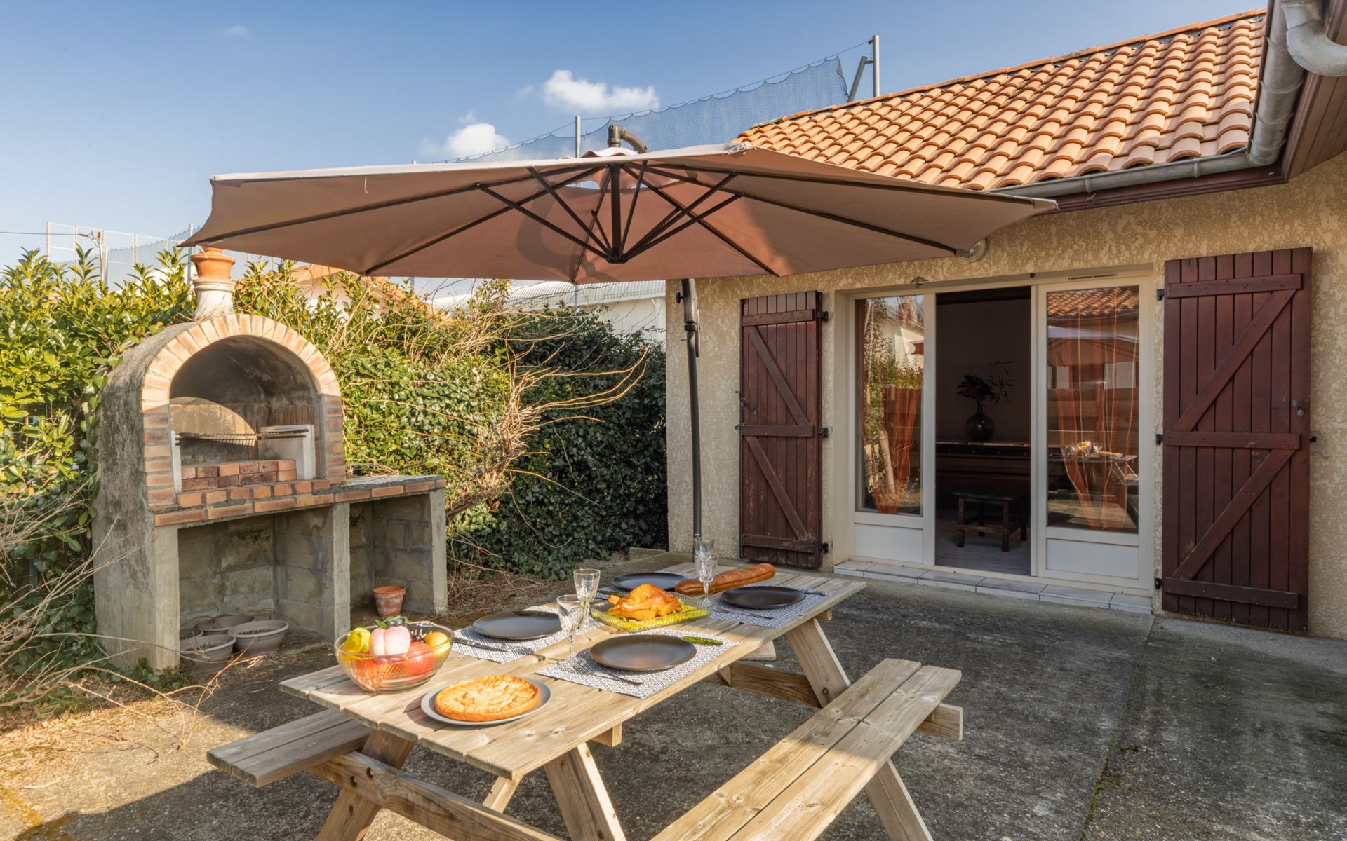 Simple house "La Gare". In the resort 100 m from the centre of Mimizan Bourg, 6 km from the sea, 5 km from the lake, 6 km from the beach, west facing position. Private: property 100 m2, parking on the premises. Shop 500 m, grocery 1 km, restaurant 200 m, bakery 200 m, pedestrian zone 200 m, sandy beach "sud" 6 km, park "dis golf" 7 km, bathing lake "Aureilhan" 2 km. Golf course (9 hole) 4 km, surf school 6 km. Nearby attractions: Arcachon 70 km, Biscarrosse 35 km, Casino de la plage 6 km. Hiking paths: Village de marquèze 40 km. Please note: the owner lives on the same property.