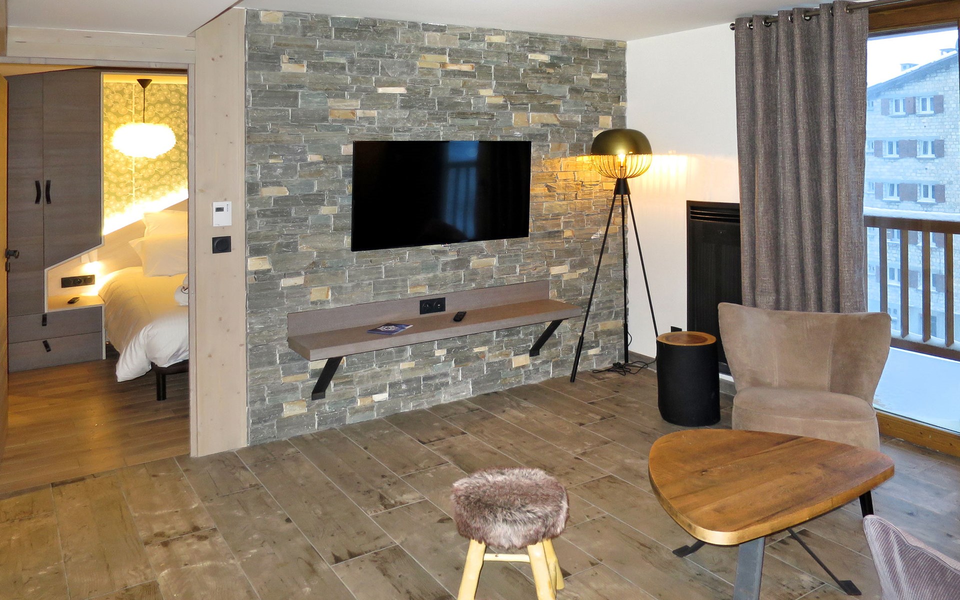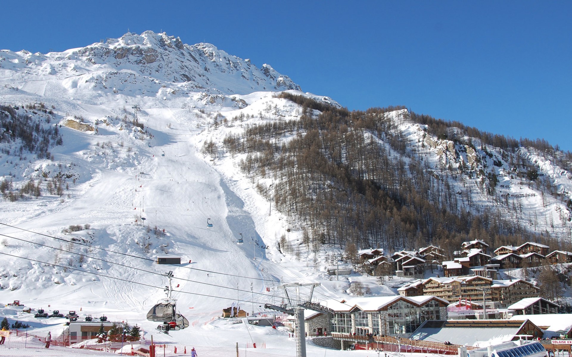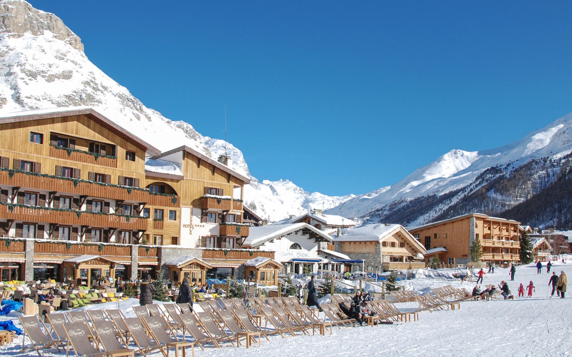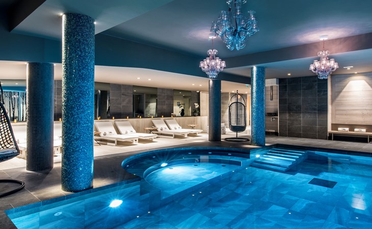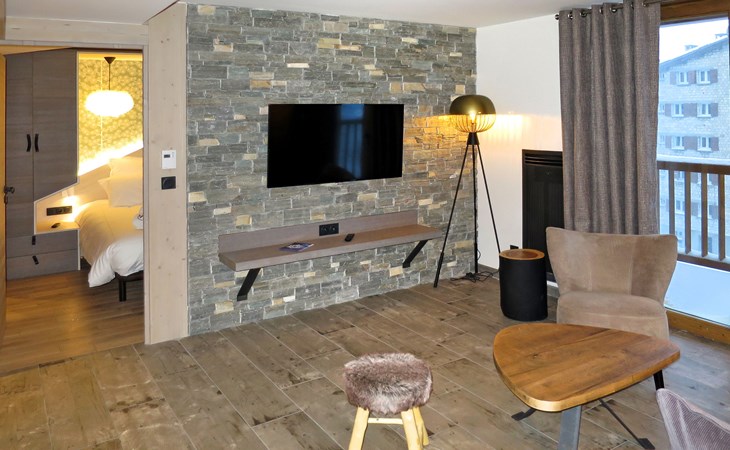 Beautiful, comfortable residence "Chalet Skadi". 26 apartments in the residence. On the outskirts, 600 m from the centre of Val d'Isère, 15 km from the centre of Tignes, in a sunny position, directly by the skiing area. For shared use: indoor pool heated (10 x 5 m, depth 160 cm) with internal staircase. Shower/WC in the pool area. In the complex: reception, lounge, sauna, massage (extra). Steam room, hot tub, lift, storage room for skis, ski boot dryer. Bread roll service and breakfast possible (extra). Storeroom available. Communal covered parking (extra). Parking space or garage only for small to medium-sized cars. Dimension: height 220 cm. Shop, grocery 50 m, restaurant, bar 600 m, bus stop "Gare routière de la Daille" 2.2 km. Walking paths from the house 500 m, ski lift 500 m, slopes, ski rental 50 m, ski bus stop 50 m. Well-known ski regions can easily be reached: Tignes – Val d'Isère (Espace Killy). Please note: baby equipment on request (included). The photograph shows a typical example. The holiday properties may differ in living space, floorplan, equipment and furnishing.