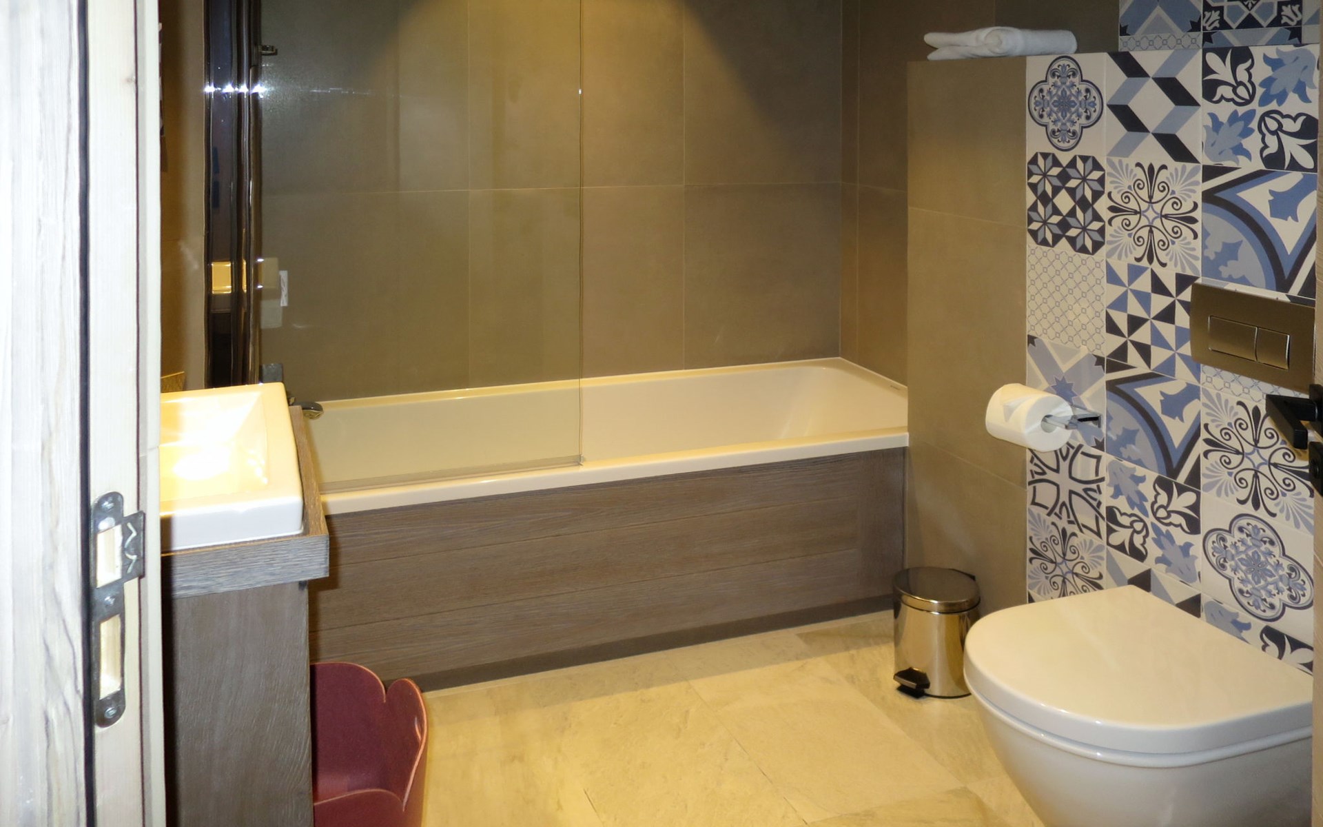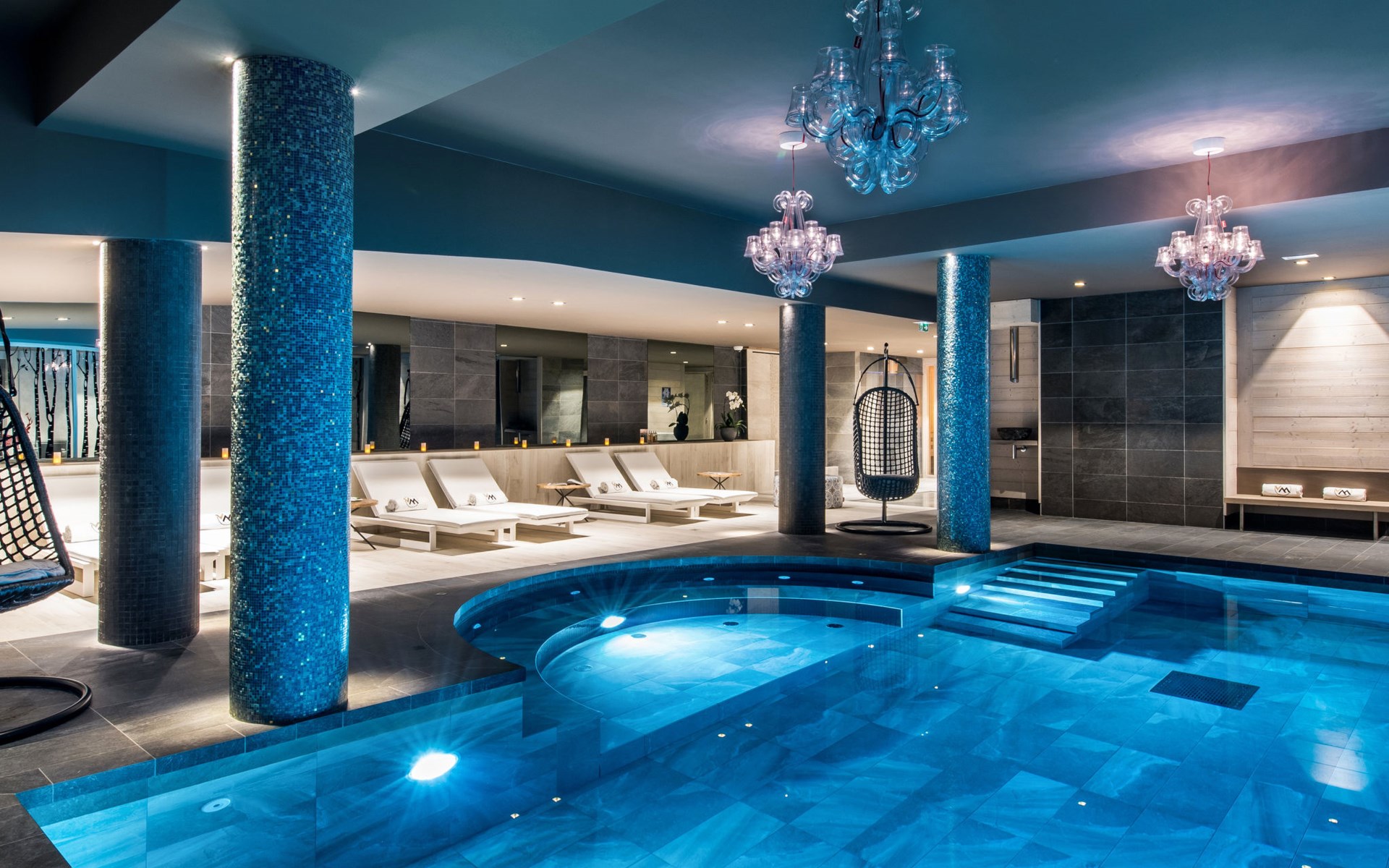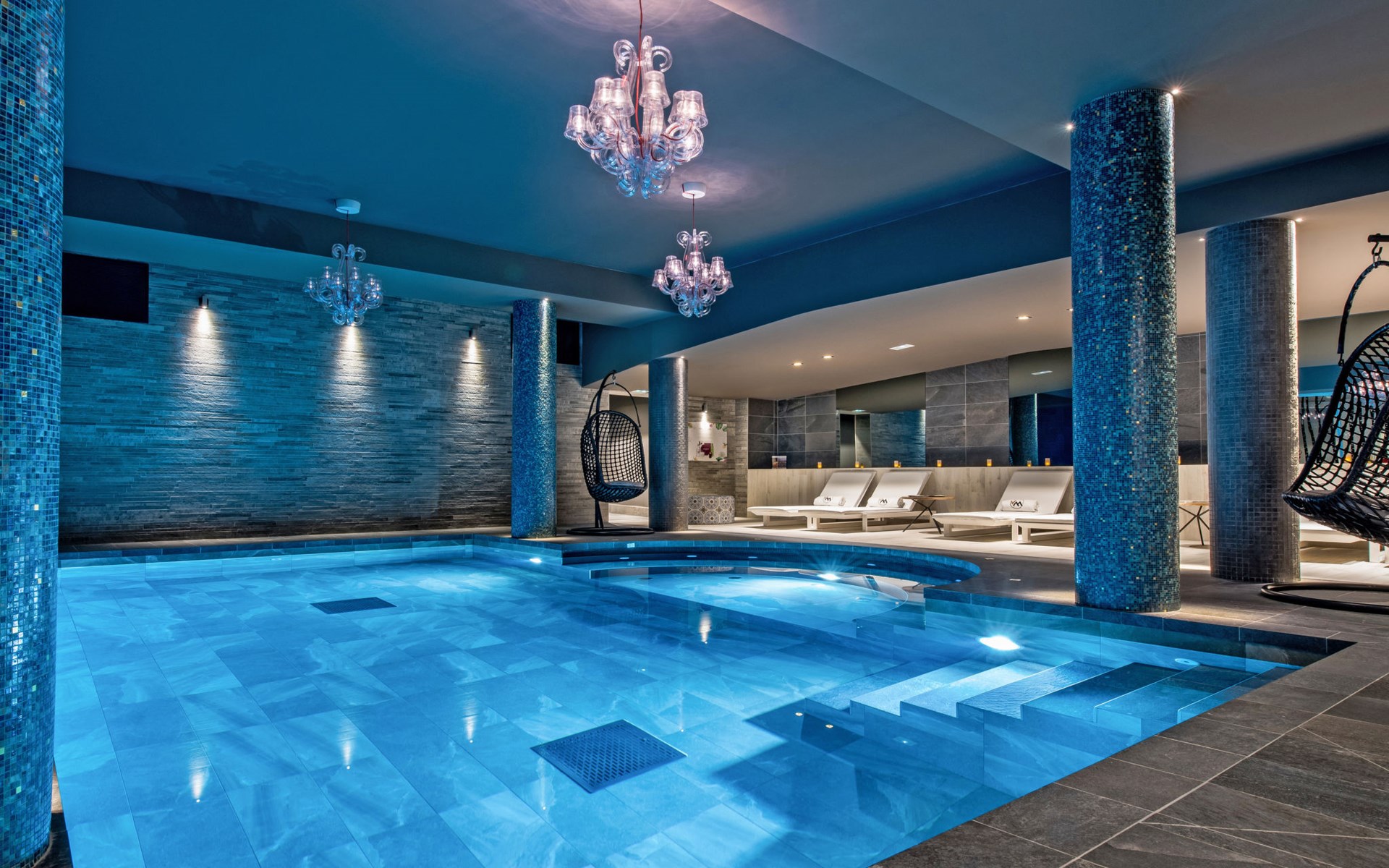 Beautiful, comfortable residence "Chalet Skadi". 26 apartments in the residence. On the outskirts, 600 m from the centre of Val d'Isère, 15 km from the centre of Tignes, in a sunny position, directly by the skiing area. For shared use: indoor pool heated (10 x 5 m, depth 160 cm) with internal staircase. Shower/WC in the pool area. In the complex: reception, lounge, sauna, massage (extra). Steam room, hot tub, lift, storage room for skis, ski boot dryer. Bread roll service and breakfast possible (extra). Storeroom available. Communal covered parking (extra). Parking space or garage only for small to medium-sized cars. Dimension: height 220 cm. Shop, grocery 50 m, restaurant, bar 600 m, bus stop "Gare routière de la Daille" 2.2 km. Walking paths from the house 500 m, ski lift 500 m, slopes, ski rental 50 m, ski bus stop 50 m. Well-known ski regions can easily be reached: Tignes – Val d'Isère (Espace Killy). Please note: baby equipment on request (included). The photograph shows a typical example. The holiday properties may differ in living space, floorplan, equipment and furnishing.