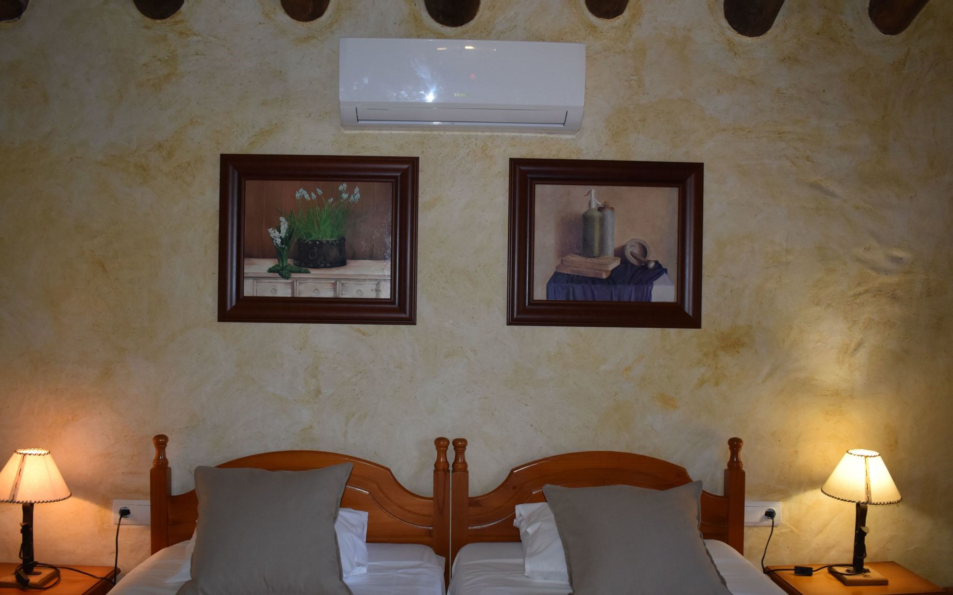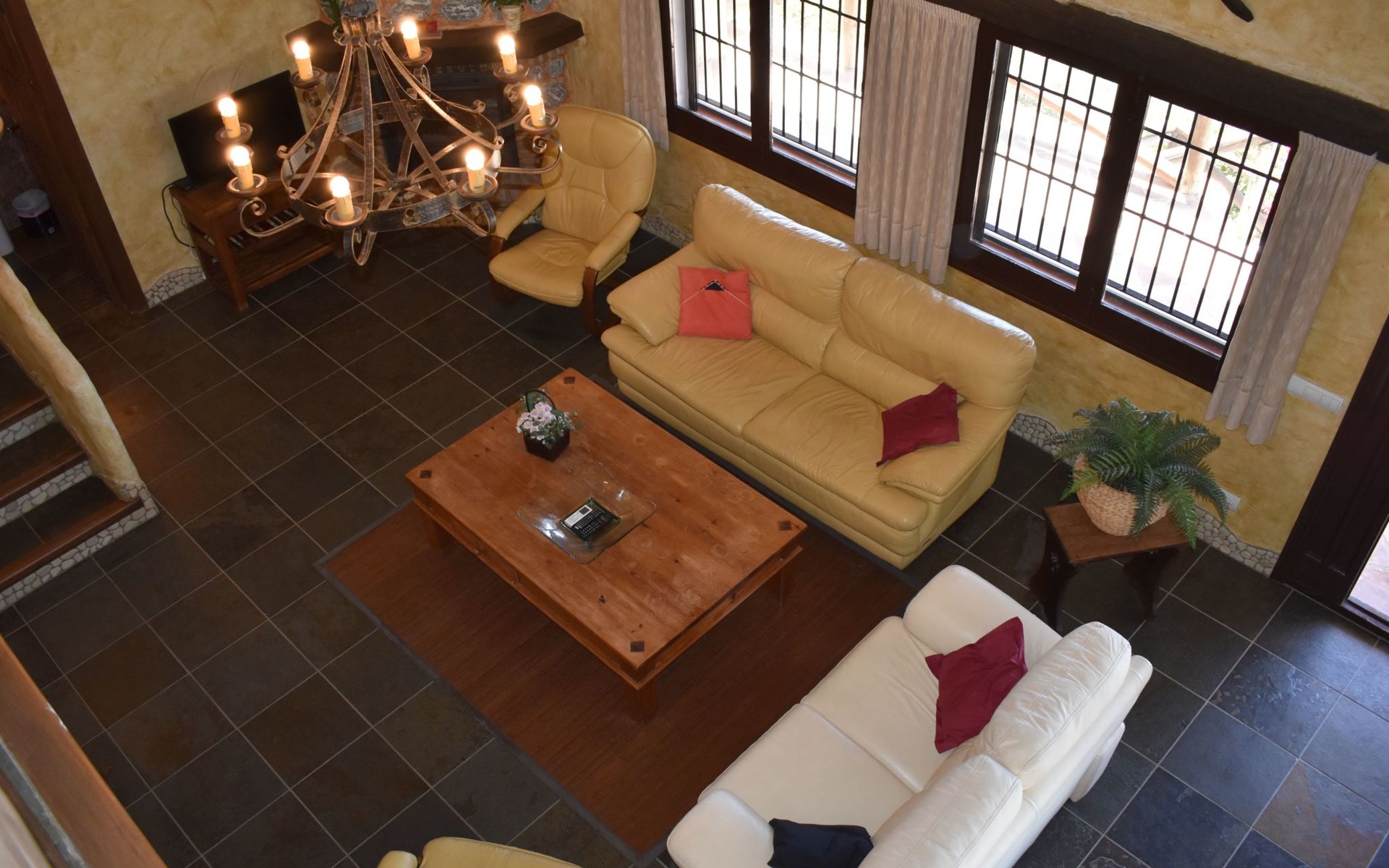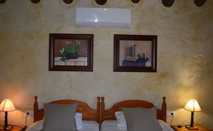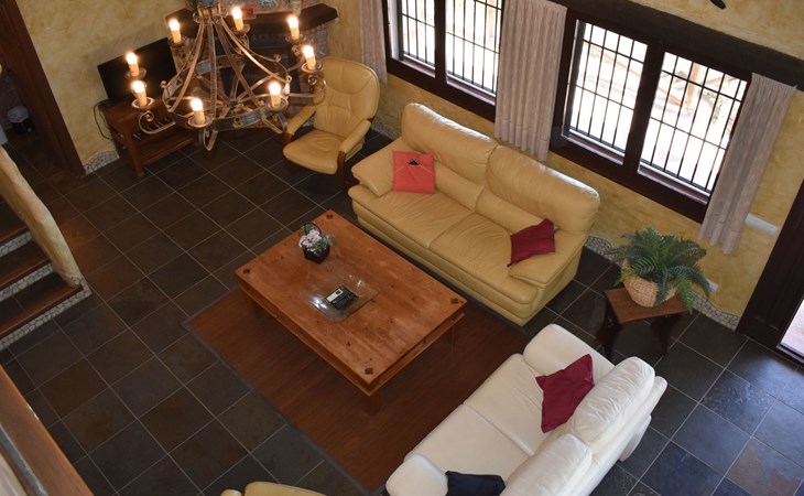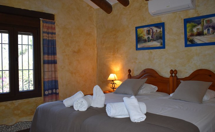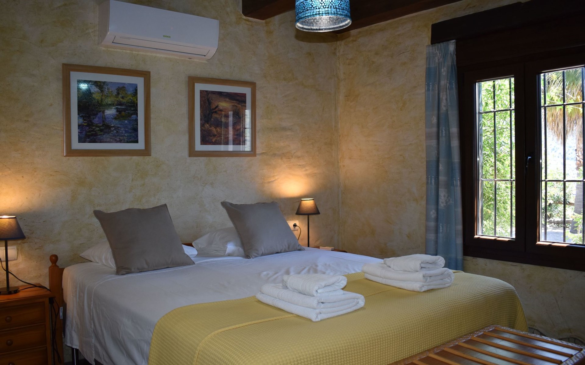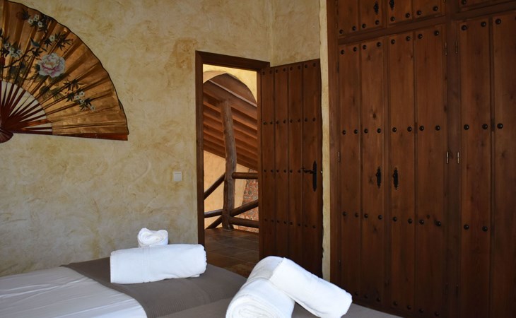 The lovingly decorated Finca Ortiz can accommodate 6 people and is divided into 2 floors. On the ground floor the spacious living room with leather sofa and 2 armchairs, satellite TV, fireplace, dining area, fully equipped open kitchen, a double bedroom and ensuite bathroom with shower and another bathroom with shower. Upstairs the other two bedrooms, both with 2 single beds and a third bathroom with shower.