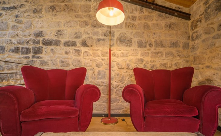 On a mezzanine there is a relaxation area furnished with a sitting room and TV; on the sitting room there is a ceiling window that allows a particular view of the dome of the Cathedral of San Giorgio.
