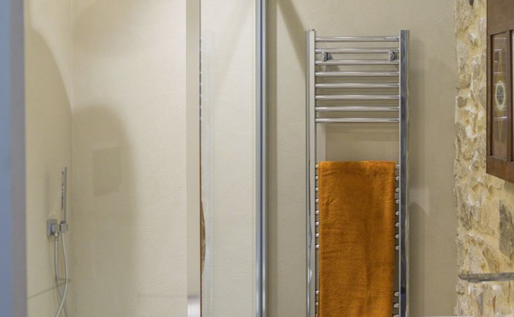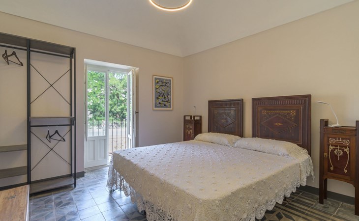 The sleeping area consists of two rooms: a bedroom with double bed and en suite bathroom with shower; a double bedroom with access to a panoramic balcony overlooking the garden below and the city in front.