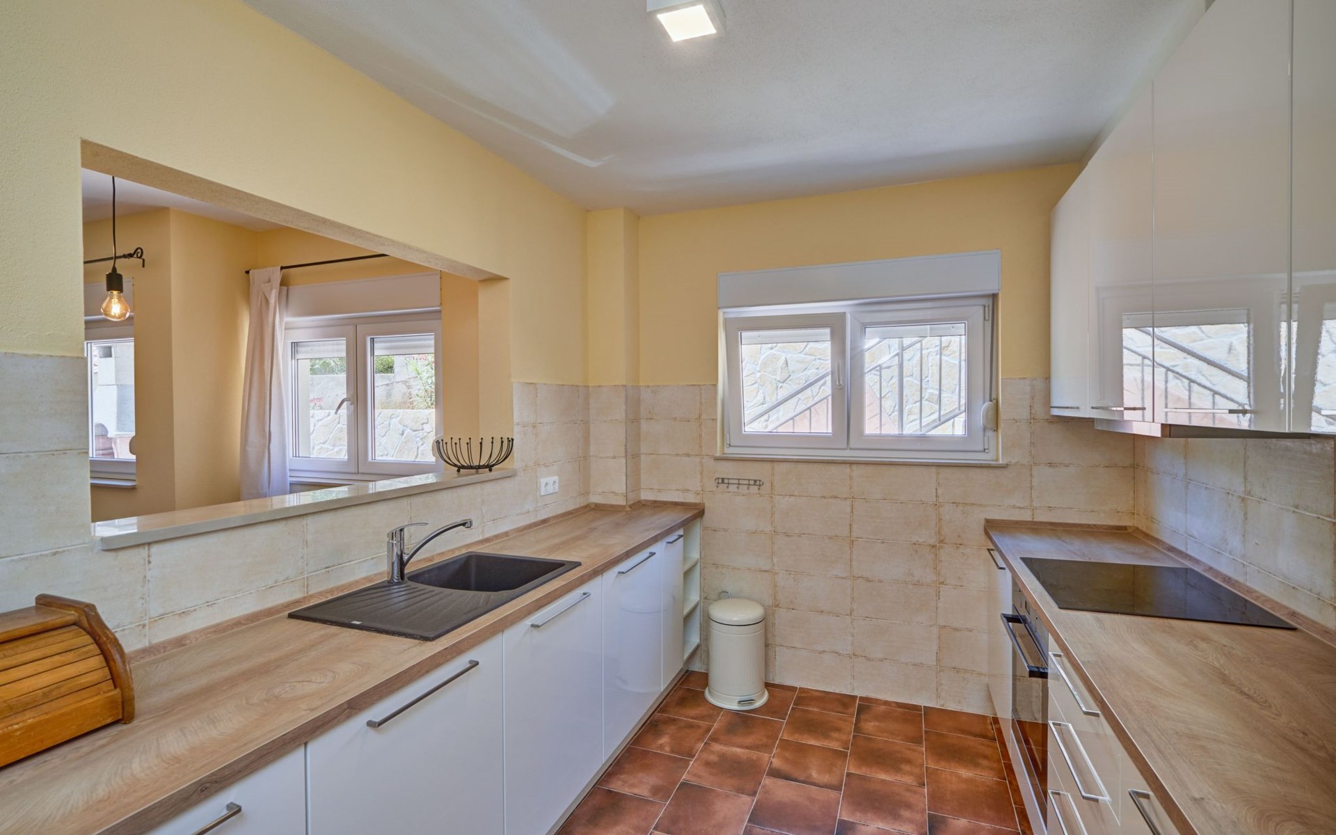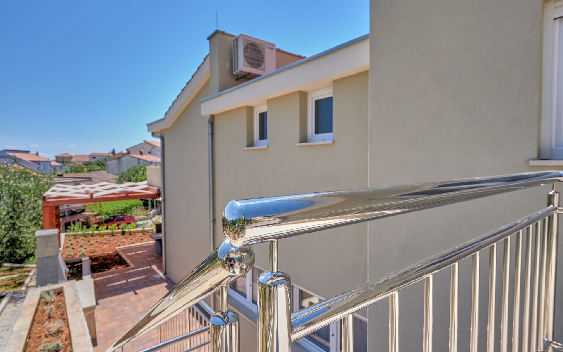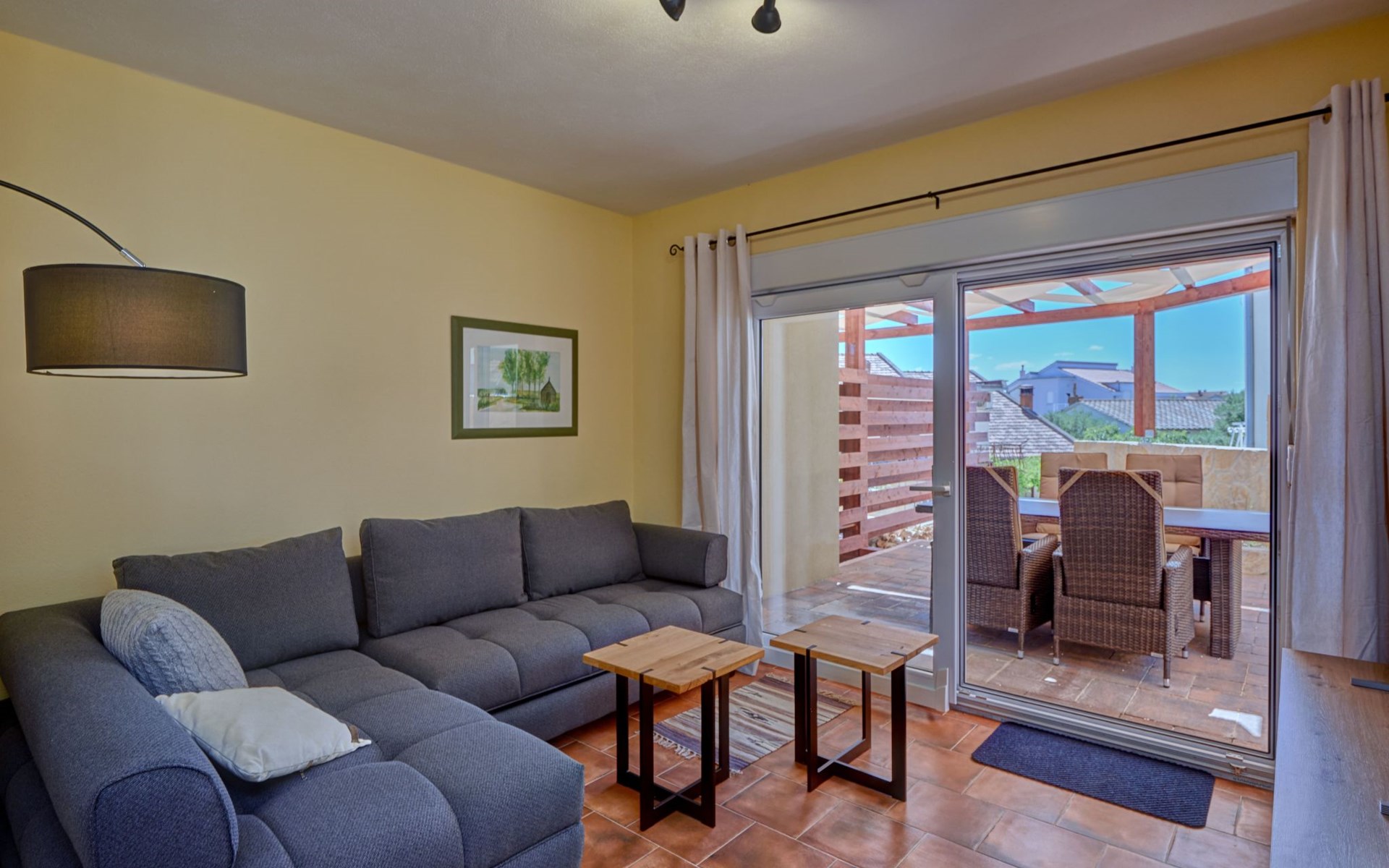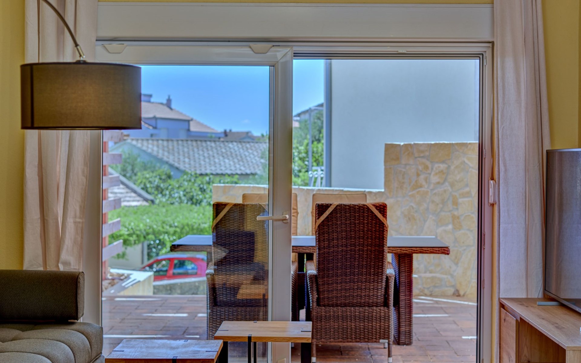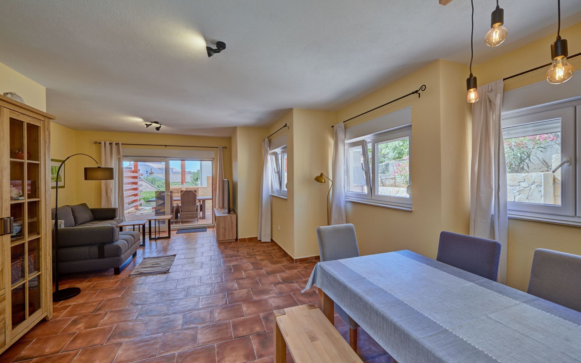 The outdoor area of Anovi Holiday Homes is just as inviting, with a beautifully maintained garden for sole use and a spacious patio ensuring moments of tranquility and leisure. Guests can enjoy the delightful Dalmatian climate, making use of the barbecue facilities available for memorable meals al fresco. With the beach and crystal-clear sea just a 300m walk away, you'll have easy access to sun, sea, and sand whenever you wish.