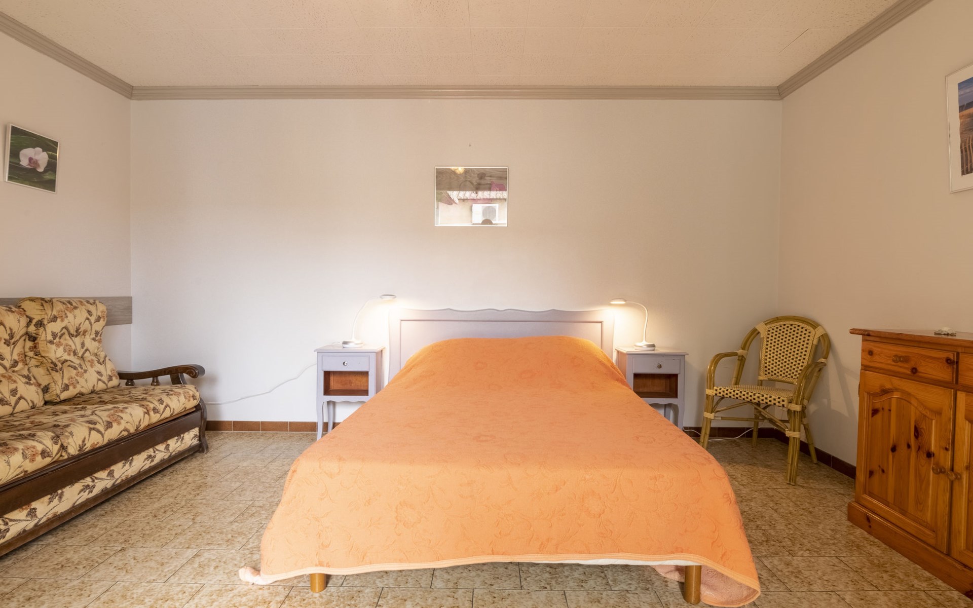 350 m from the centre of Les Stes.-Maries-de-la-Mer, 30 km from the centre of Aigues-Mortes, 40 km from the centre of Arles, traffic calmed area, 600 m from the sea, 600 m from the beach. Public parking. Supermarket 150 m, bus stop "Les Massoucles" 120 m.