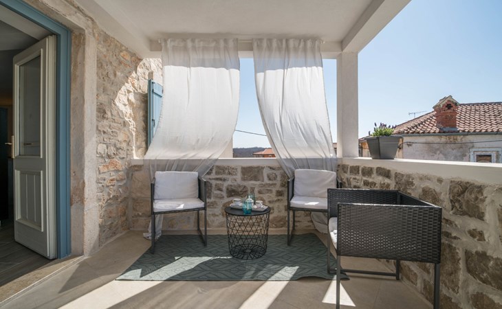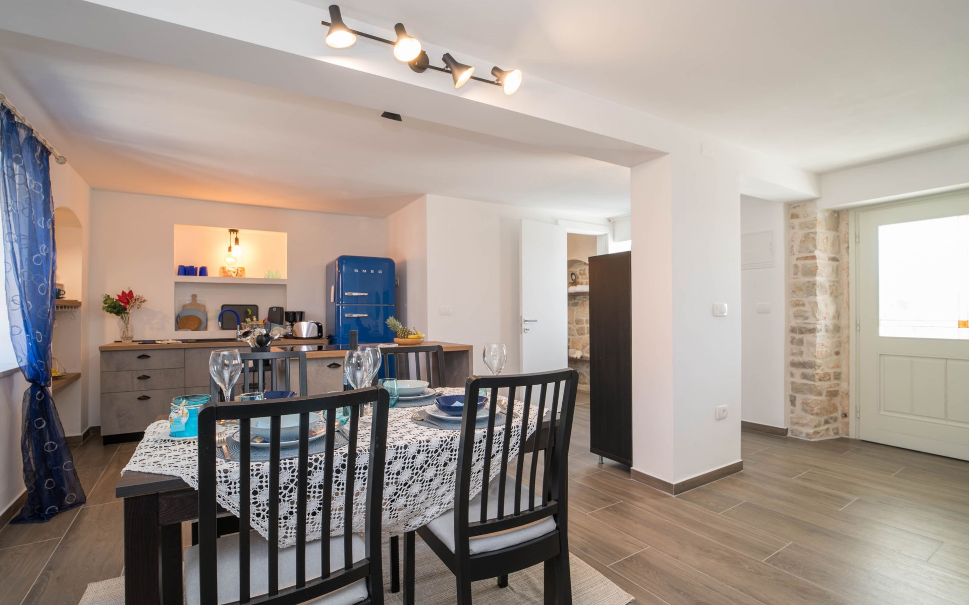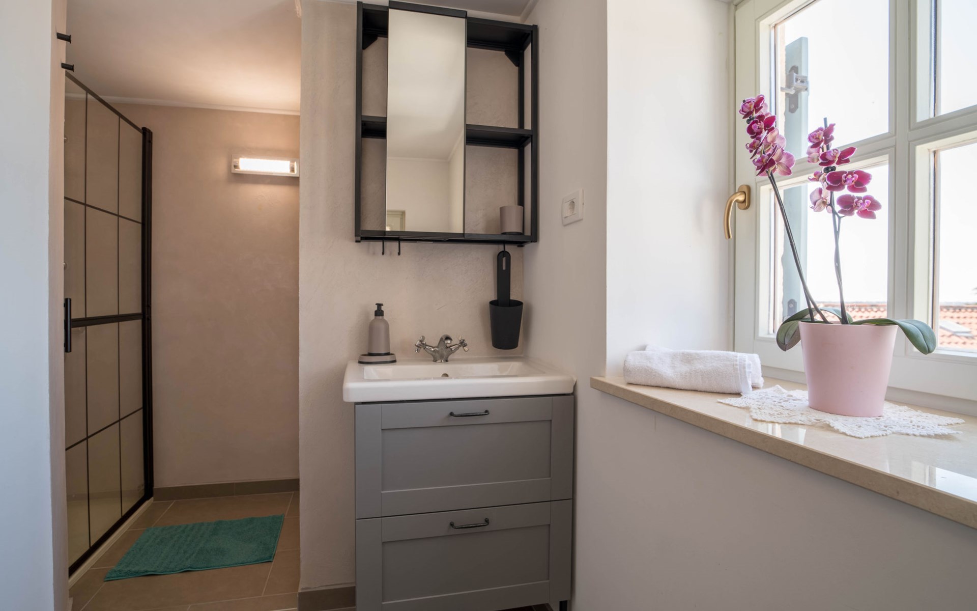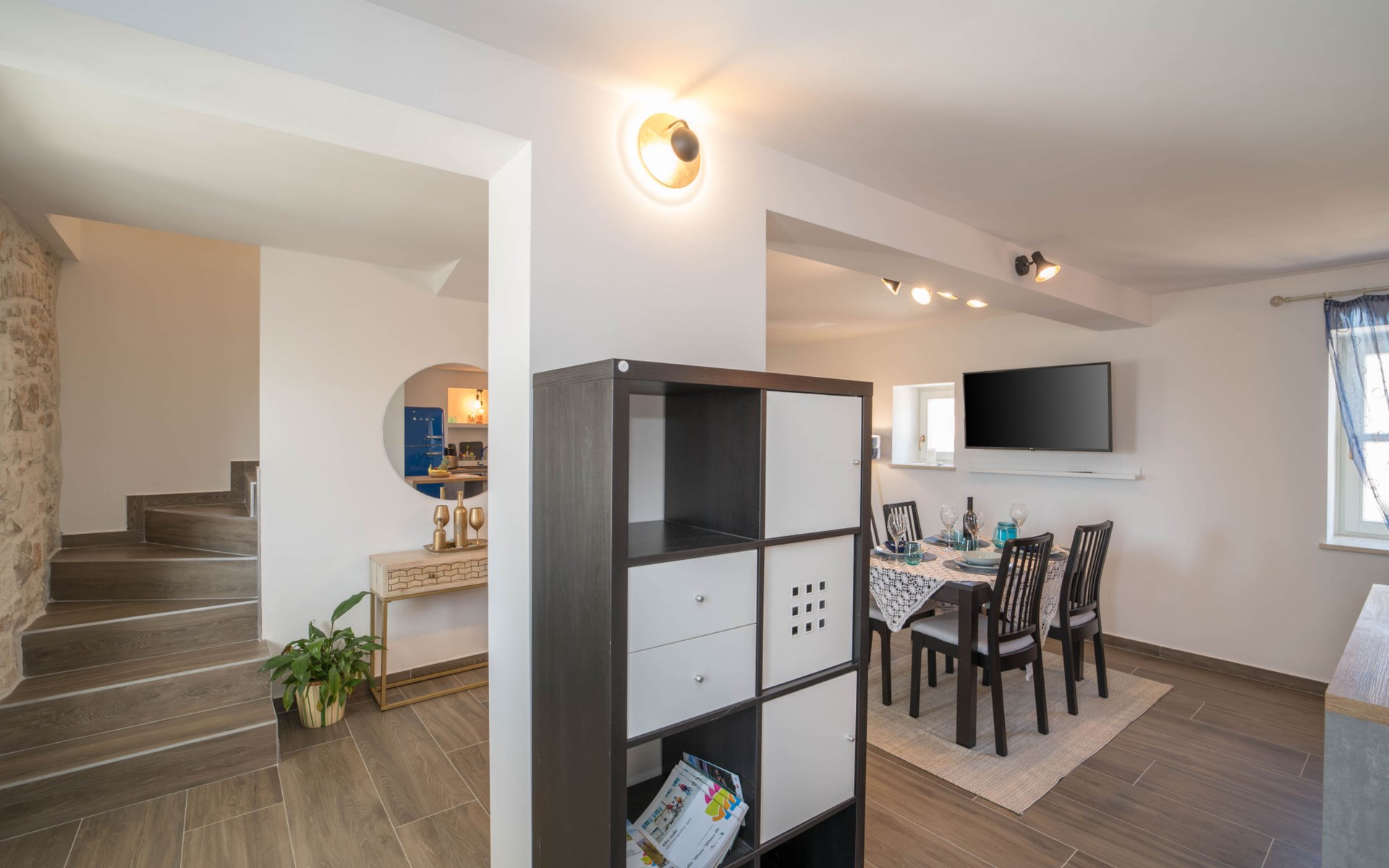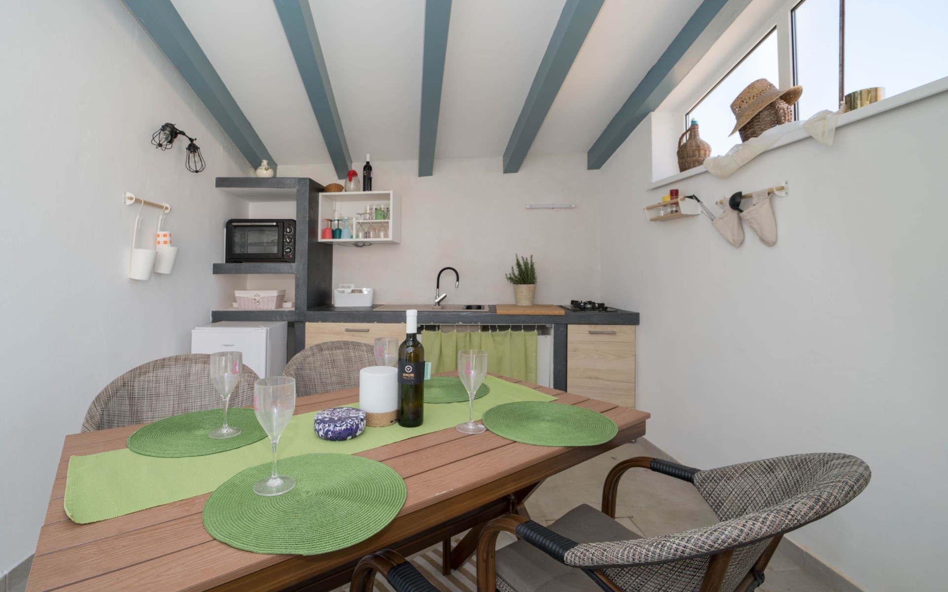 Terraced house "Villa Caterina", 2 storeys, renovated in 2022. In the hamlet Fiorini 8 km from the centre of Novigrad, in a sunny position, 2 km from the sea, 2 km from the beach, in a cul-de-sac. Private: property 200 m2 (fenced), swimming pool angular (15 m2, depth 140 cm, seasonal availability: 01.May. - 30.Sep.). Outdoor shower. In the house: internet access, washing machine. Parking (for 2 cars) at the house on the premises. Shop 6 km, restaurant 50 m, bus stop 2.4 km, pebble beach 2 km, rocky beach 2 km. Walking paths from the house 50 m, cycle lane 100 m, children's playground 200 m. Please note: the owner lives in the same residence. The owner is at guests' disposal for pool cleaning and property maintenance. Private: outdoor kitchen (2 hot plates, oven, microwave, fridge). Organizing a party is not allowed. Swimming pool heated (extra).