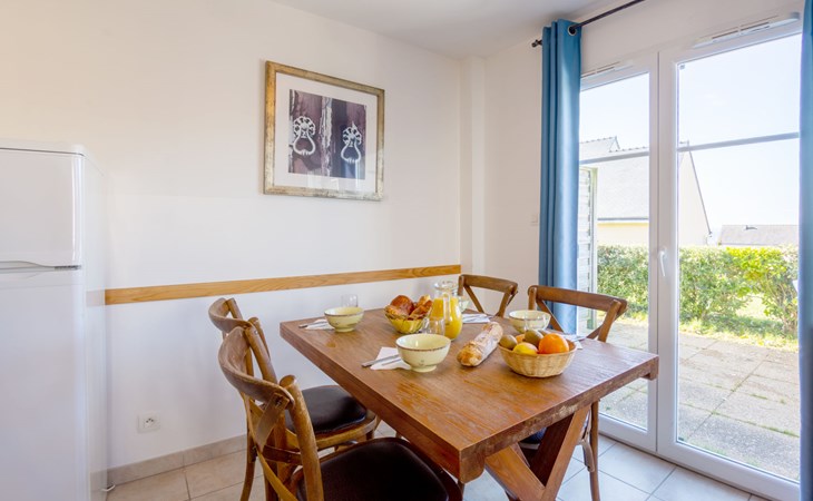 Resort "Les Terrasses". 36 houses in the residence. 50 apartments in the residence. 500 m from the centre of Pentrez-Plage, 1 km from the centre of Saint Nic, 20 km from the centre of Douarnenez, in an elevated position, 500 m from the sea. For shared use: property (fenced) with lawn, swimming pool heated, secured (14 x 6 m, depth 100 - 150 cm, seasonal availability: 15.Apr. - 01.Nov.). Terrace. In the complex: reception, internet access, WiFi, washing machine, tumble dryer (for shared use, extra). Bread roll service. Shop 1 km, supermarket 5 km, bakery 1 km, sandy beach 500 m. Please note: residence with electric gates. The photograph shows a typical example. The holiday properties may differ in living space, floorplan, equipment and furnishing.
