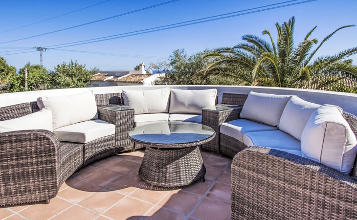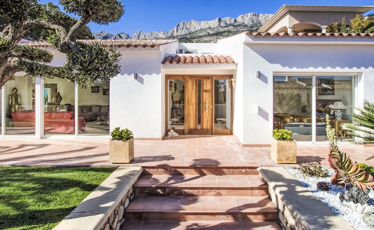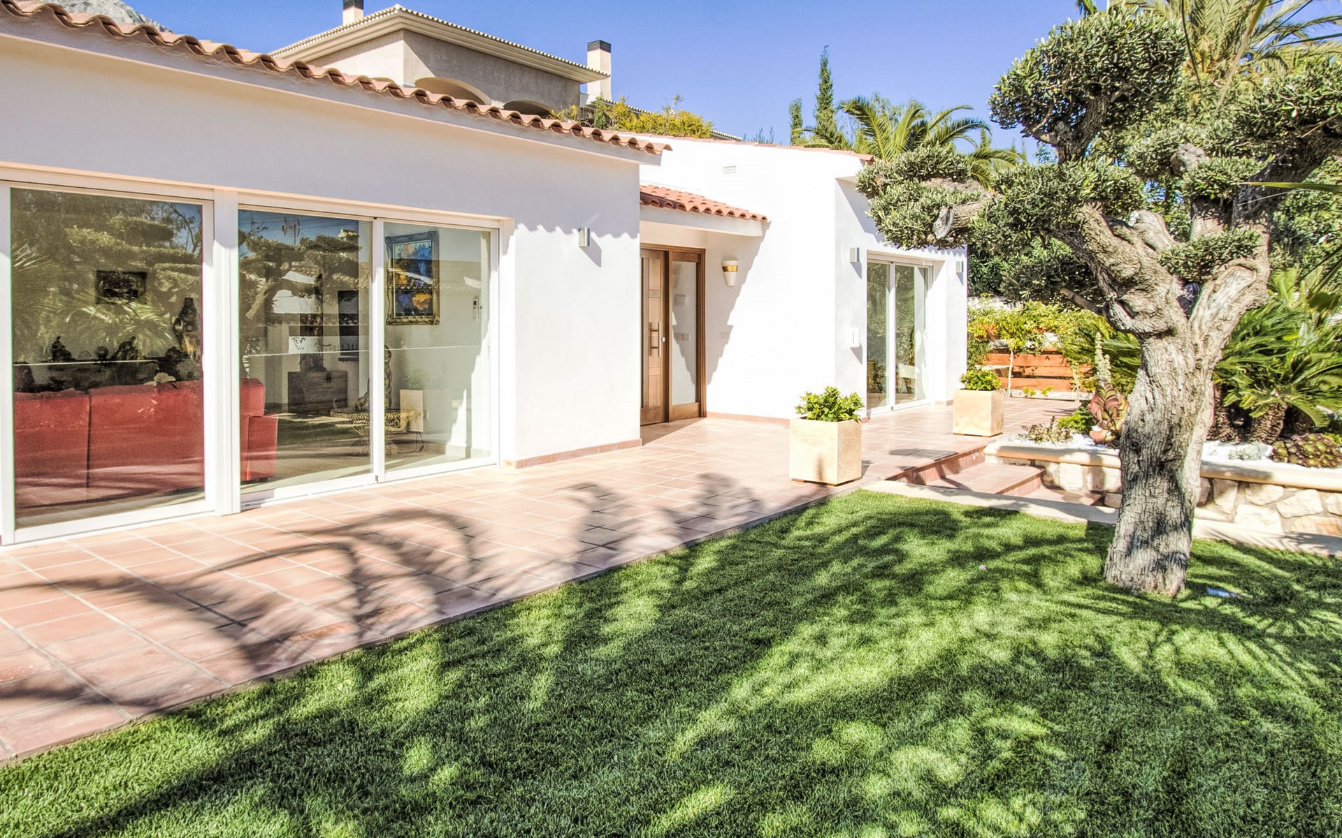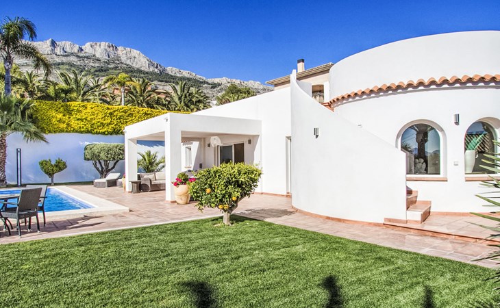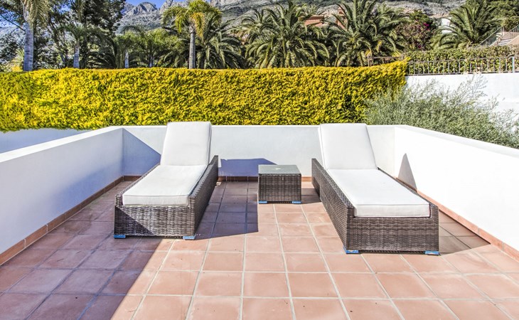 Sierra Altea Golf: Very beautiful villa "Villa del Maestro", renovated in 2017. In the resort 6.8 km from the centre of Altea, 11.9 km from the centre of Calpe, in a sunny position residential area (villas), 4 km from the sea, 4 km from the beach. Private: property 1'019 m2 (fenced), beautiful, well-kept garden with lawn, swimming pool angular, heated (10 x 6 m, seasonal availability: 01.Jan. - 31.Dec.) with internal staircase. Outdoor shower, terrace, garden furniture, barbecue. In the house: sun terrace, roof terrace, washing machine. Supermarket 2.4 km, restaurant 1.4 km, café 1.4 km, bus stop "Parada Bus" 3 km, pebble beach "Playa de la Solsida" 5.9 km. Sports harbour 6.9 km, marina 6.9 km, golf course (9 hole) 1.3 km, surf school 6.9 km, sailing school 6.9 km, tennis 4.3 km. Nearby attractions: Aqualandia, Mundomar, Terra Mítica, Terra Natura, Benidorm Palace (Benidorm), Les Fonts de l'Algar 13.5 km, Castillo de Guadalest 24 km. The owner does not accept any youth groups. Heated pool (Oct-May), extra. Need to be booked minimun one week before arrival day.
