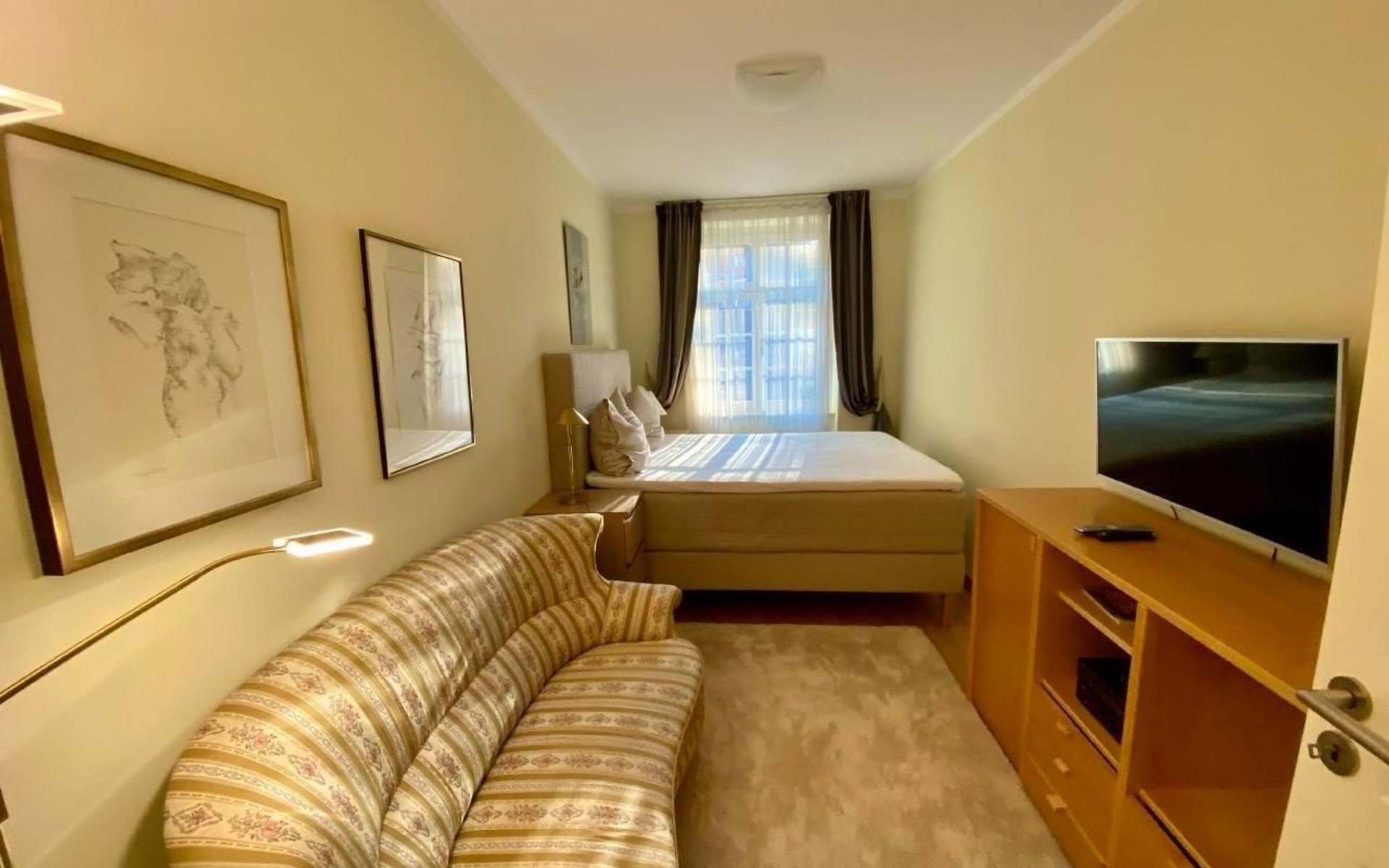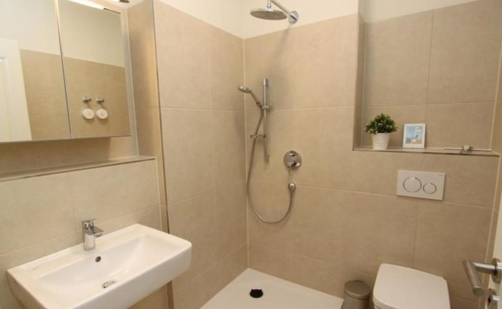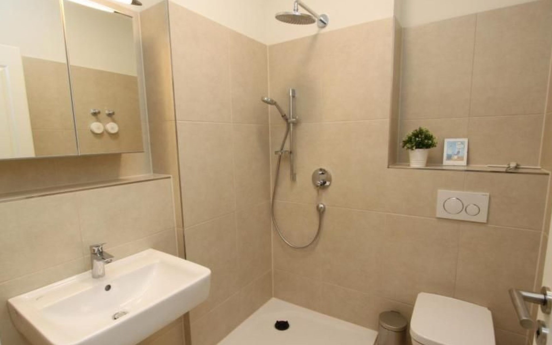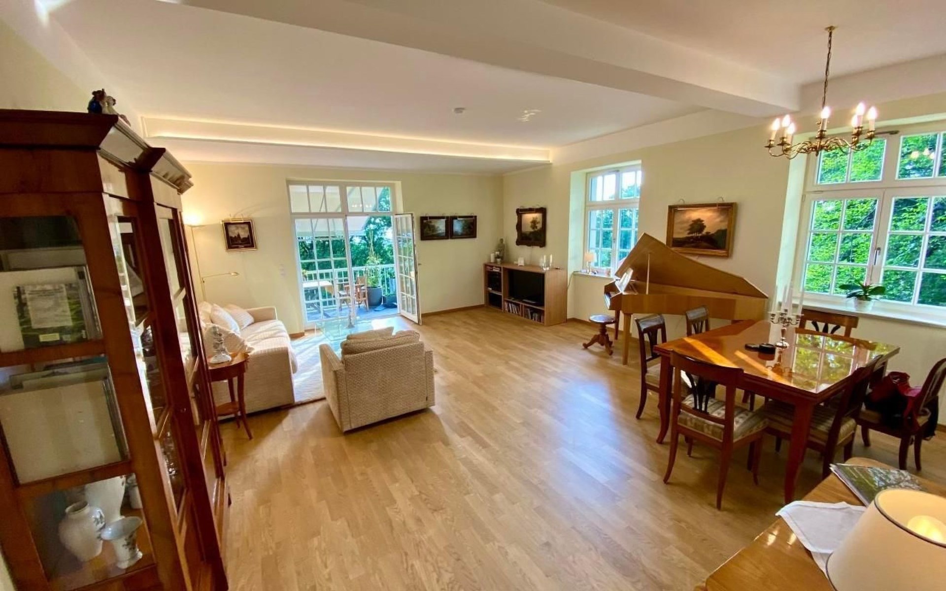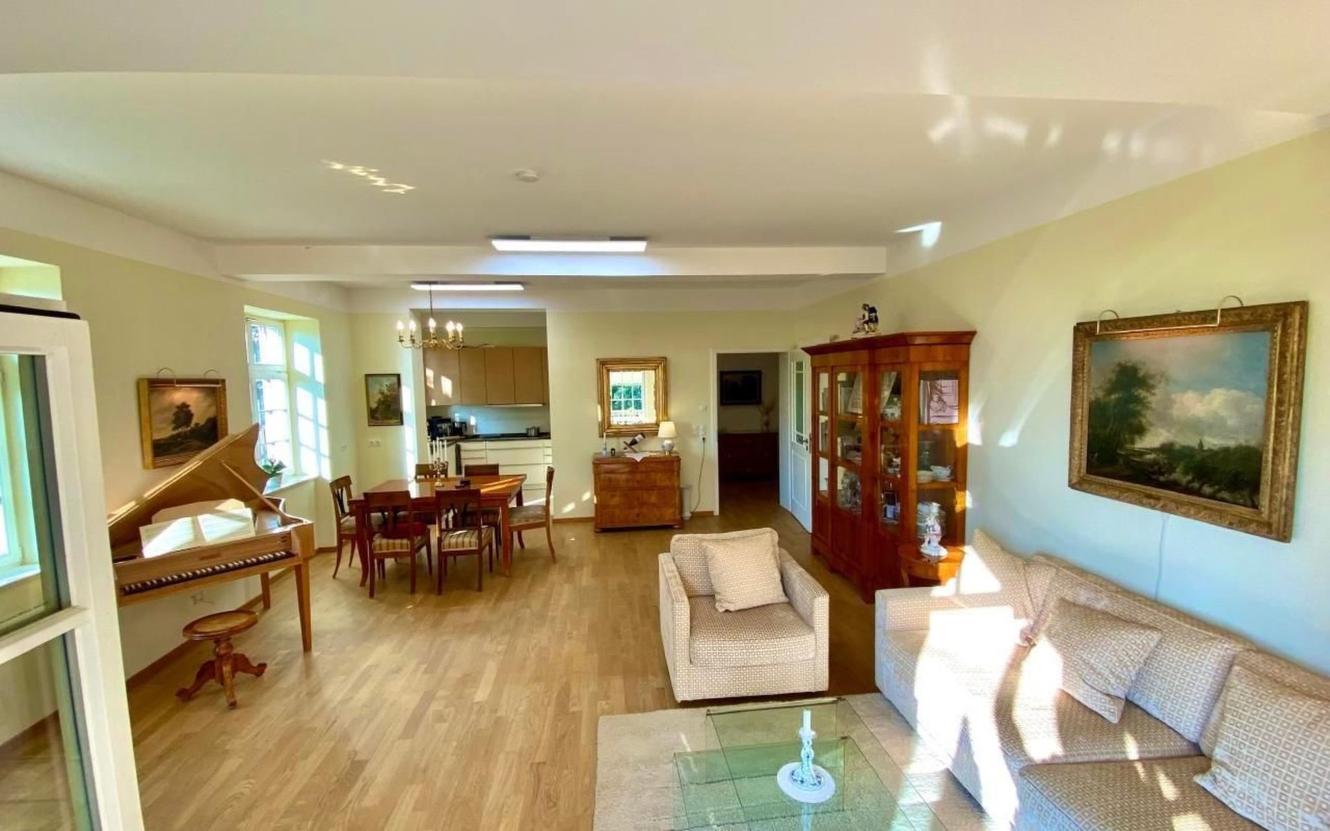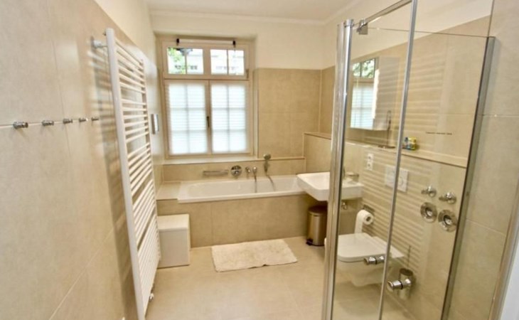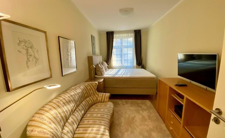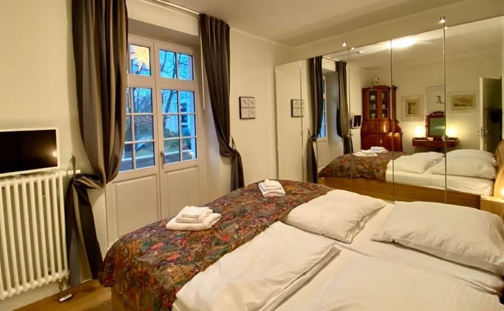 Inside, you will find modern accommodation that leaves nothing to be desired. The ultra-modern kitchen is equipped with the finest appliances from brands such as Miele, Gaggenau and Liebherr and has everything you need, including a selection of coffee machines for the perfect start to the day. The living room has underfloor heating, parquet flooring and a large seating area with access to the balcony, equipped with a TV, DVD/Blu-ray player, stereo system and a selection of DVDs, CDs, books and games. The bedroom has a large wardrobe and a Biedermeier corner cupboard as well as its own TV and a small stereo system.