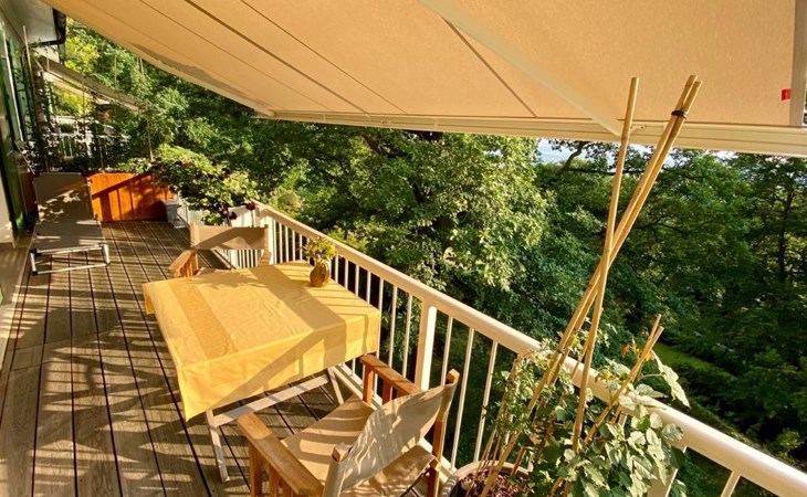 The outdoor area of the holiday flat is a real highlight: the incomparable south-facing balcony offers a breathtaking view and invites you to relax and enjoy. The direct proximity to a beautiful beech forest enables long walks to the vineyards of Pillnitz and promises peace and relaxation in the midst of nature.