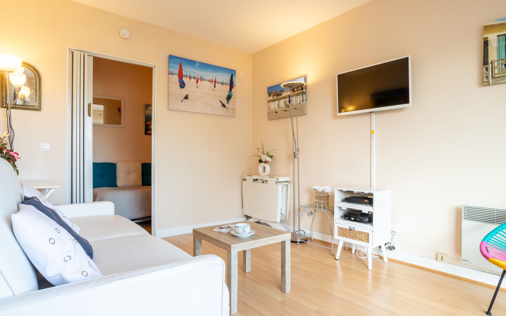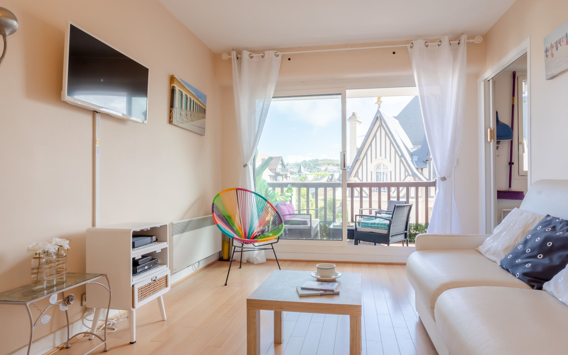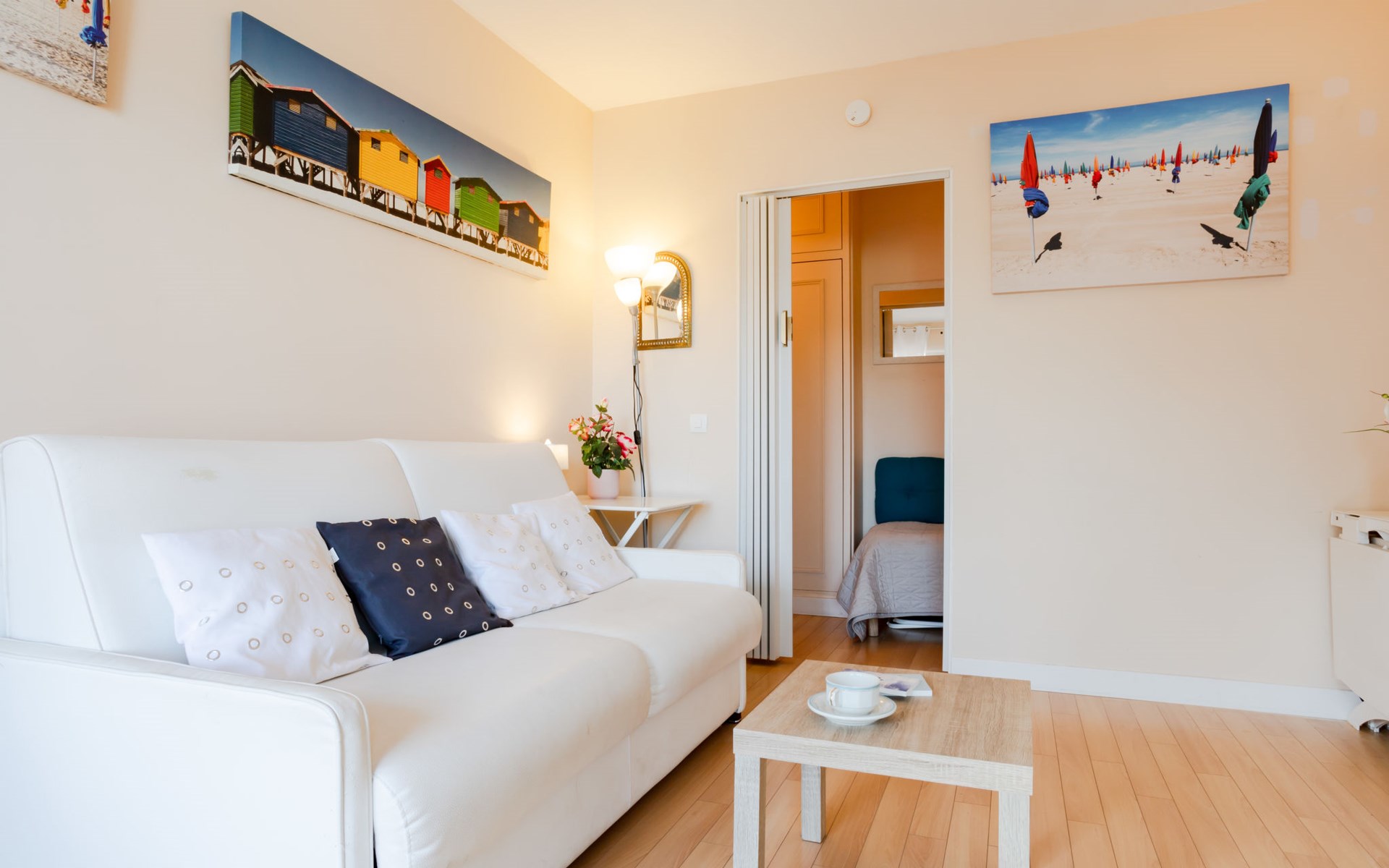 Deauville: Residence "Ascot", 3 storeys, terraced. In the resort, 350 m from the centre, in a quiet position, 1.4 km from the sea, 1.4 km from the beach, east facing position. In the complex: lift. (6 steps). Shop 350 m, supermarket 280 m, restaurant 100 m, bakery 60 m, 4 minute walk to the centre, bus stop "Gare routière" 500 m, railway station "Deauville-Trouville" 500 m, sandy beach "les planches de Deauville" 1.4 km, indoor swimming pool 1.1 km, thermal baths "thalasso de Deauville" 1.1 km. Golf course (18 hole) 3.7 km. Nearby attractions: casino de Deauville 1 km, hippodrome Deauville La Touques 1.2 km, Honfleur village normand 16 km, Mémorial de Caen 54 km, Arromanches plage du débarquement 80 km. The keys‘ handover takes place by the agency Interhome in Deauville.
