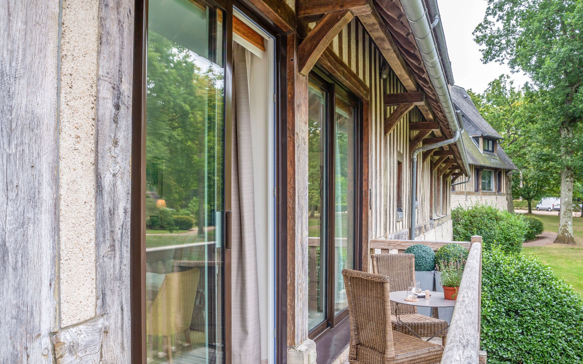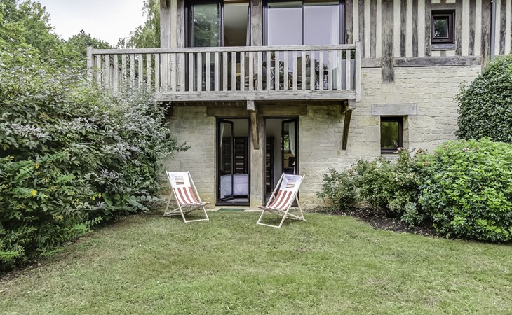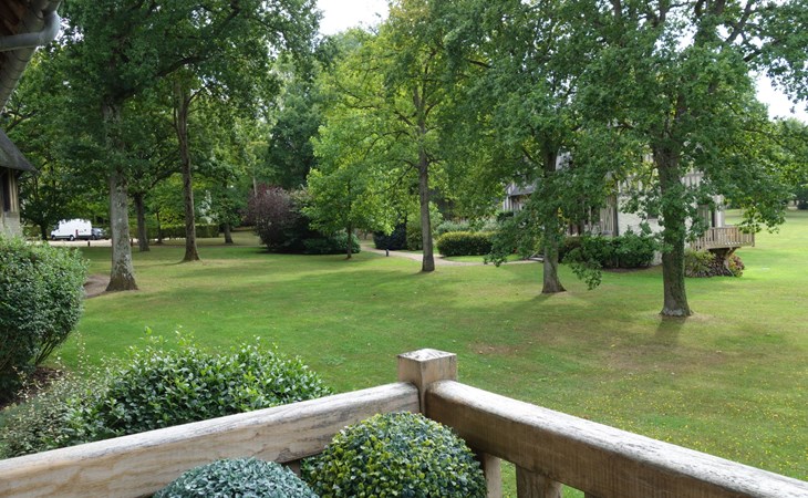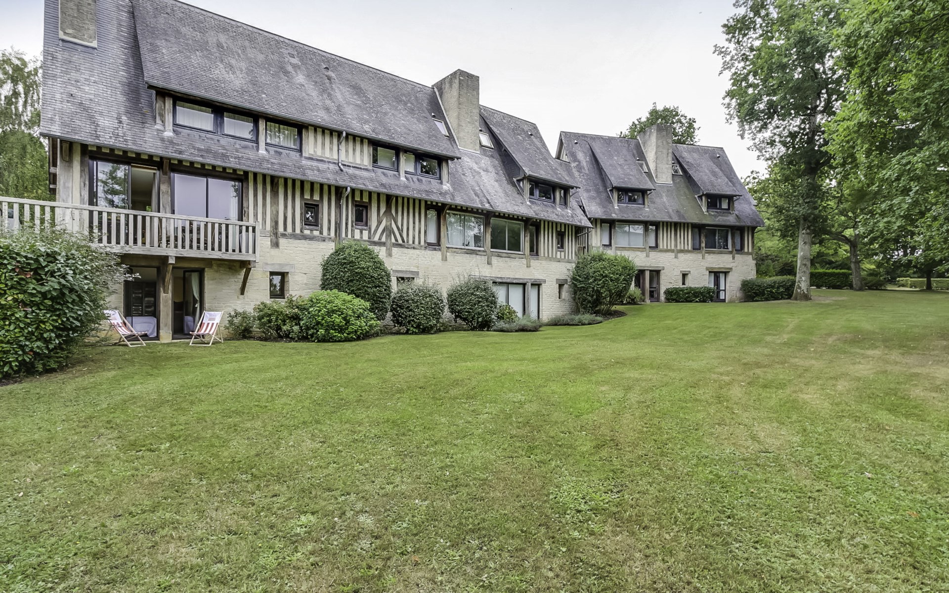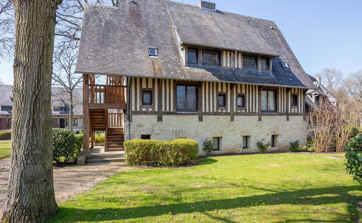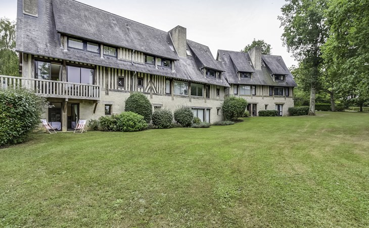 Deauville Tourgéville: Farm estate "Les Hauts de Deauville", 3 storeys. On the outskirts, in the residential district, 3 km from the sea, in the countryside, on the golf course. For shared use: park, parking at the house. Grocery 750 m, supermarket 3.1 km, restaurant 2.9 km, bus stop "Tourgéville Golf" 100 m, railway station "de Deauville Trouville" 3.6 km, sandy beach "de Deauville" 3 km, indoor swimming pool 3.1 km, thermal baths "Thalasso de Deauville" 3.1 km. Golf course (27 hole) 3.5 km, riding stable 3.3 km. Nearby attractions: hippodrome de Deauville Clairefontaine 1.9 km, casino de Deauville 2.9 km, Honfleur village authentique 19 km, Mémorial de Caen 44 km, Plages du débarquement d'Arromanches 75 km. The keys‘ handover takes place by the agency Interhome in Deauville.