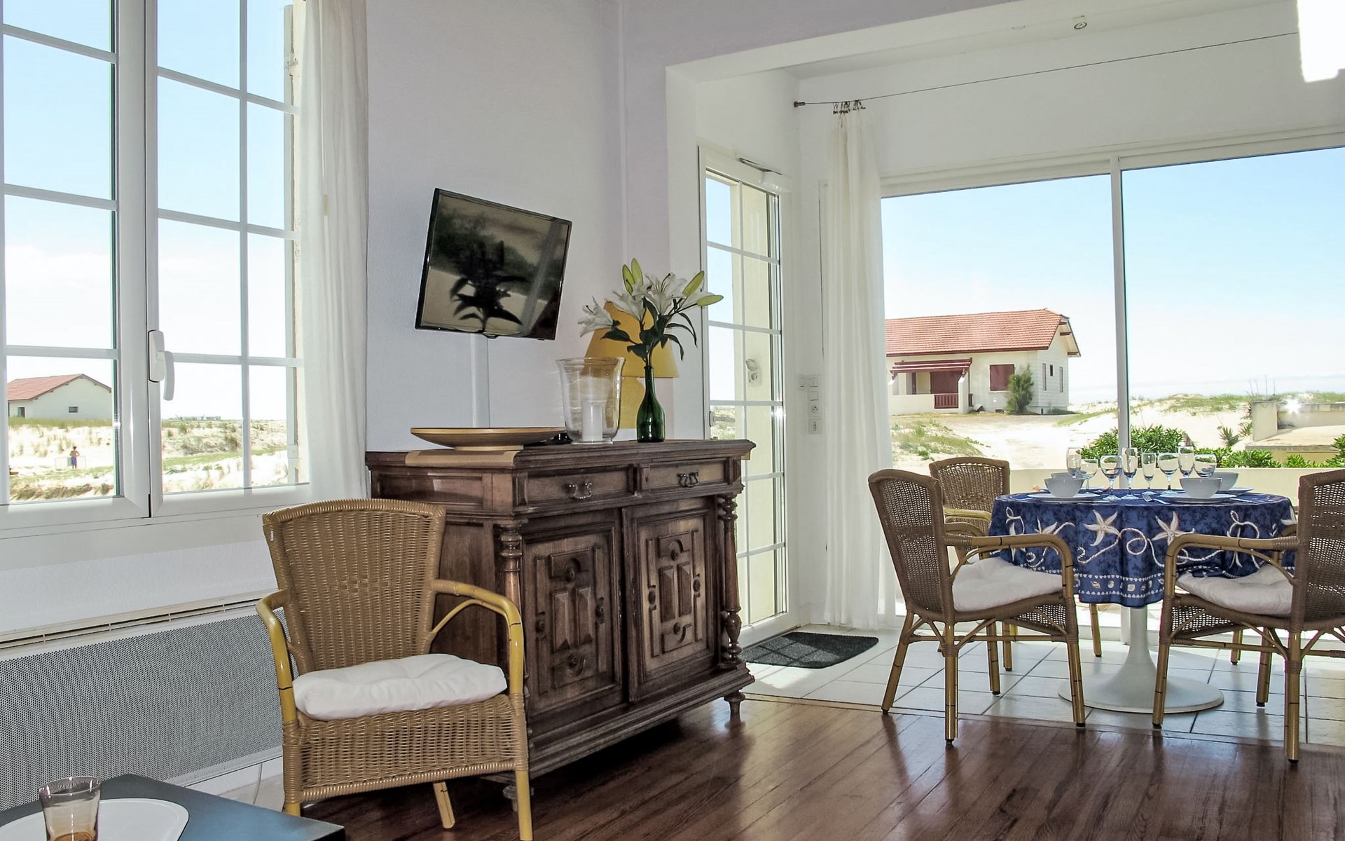 3-family house "Capama". In the resort 500 m from the centre of Mimizan Plage, 60 m from the sea, 60 m from the beach. For shared use: natural state property 850 m2, public parking on the road. Shop, restaurant 300 m, railway station "Labouheyre" 30 km, sandy beach 60 m, park "Landes Aventure" 6 km, indoor swimming pool 6 km, bathing lake "Aureilhan" 10 km. Golf course (9 hole) 6 km, surf school 250 m, riding stable 7 km. Nearby attractions: Arcachon 70 km, Biscarosse 40 km, Bordeaux 120 km, Centre Nautique 7 km, Casino Mimizan Plage. Hiking paths: Parc naturel régional des Landes.