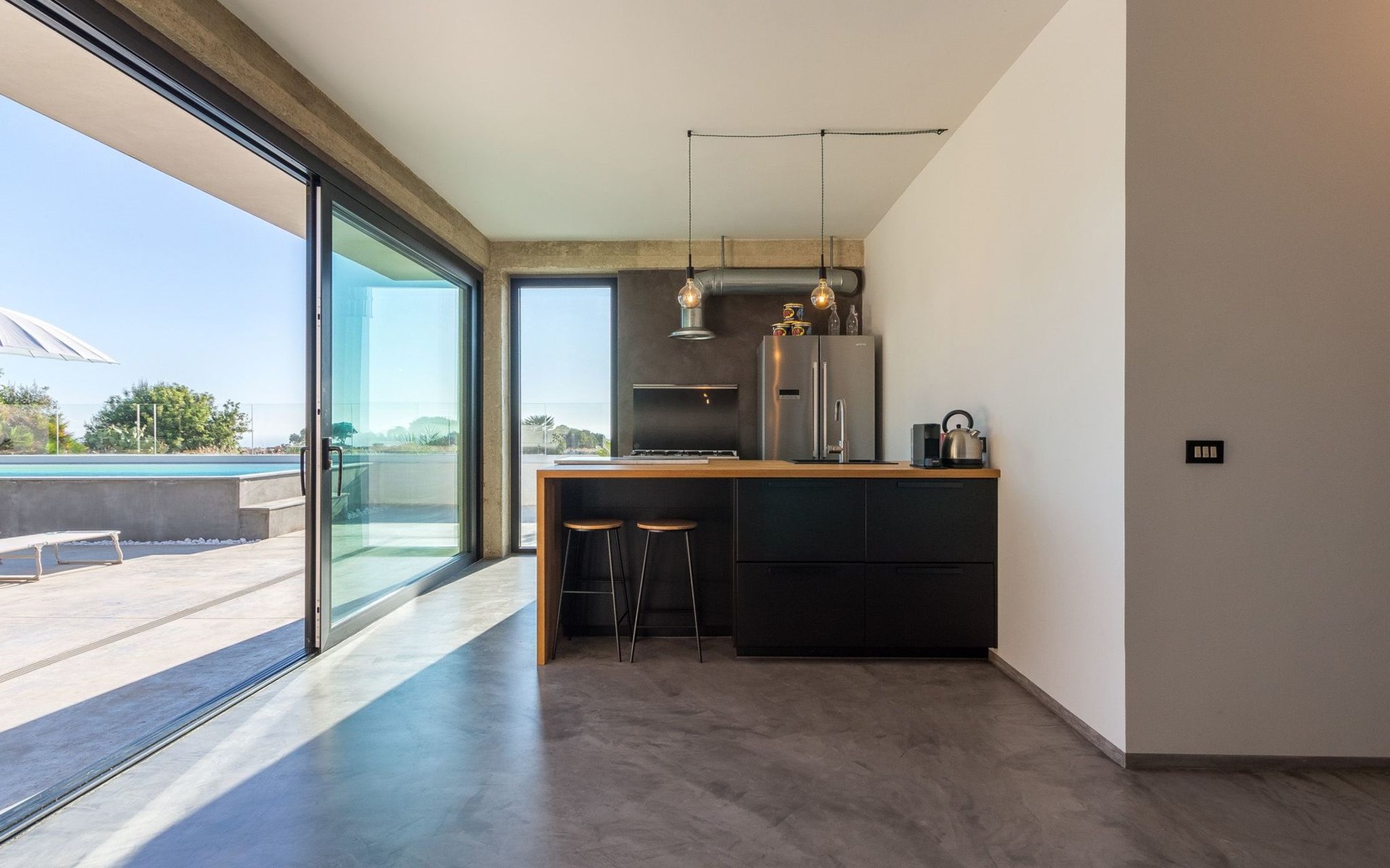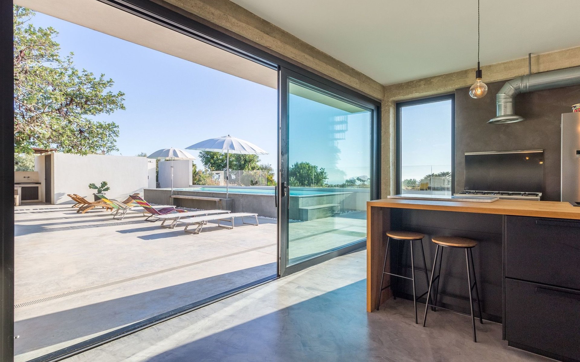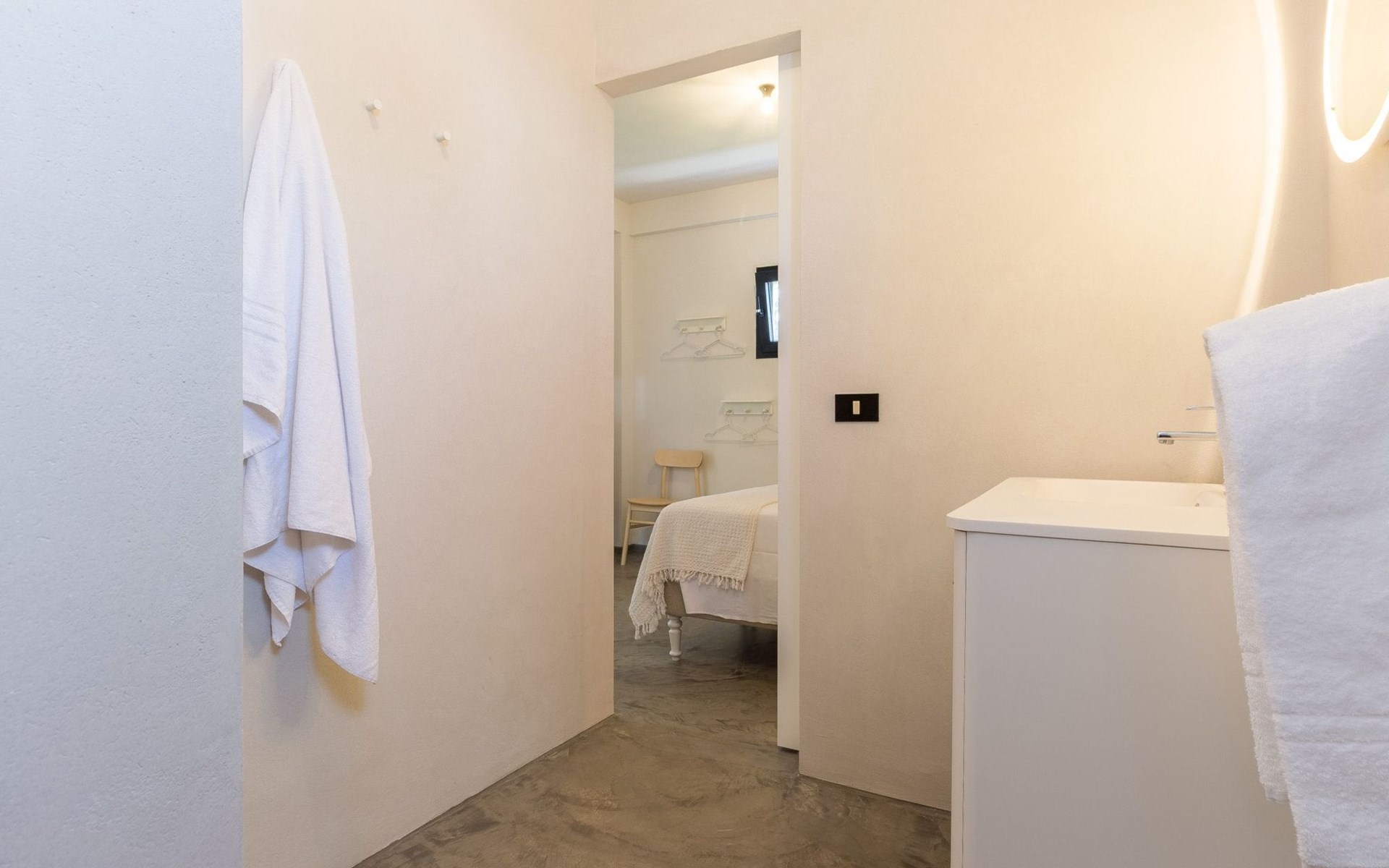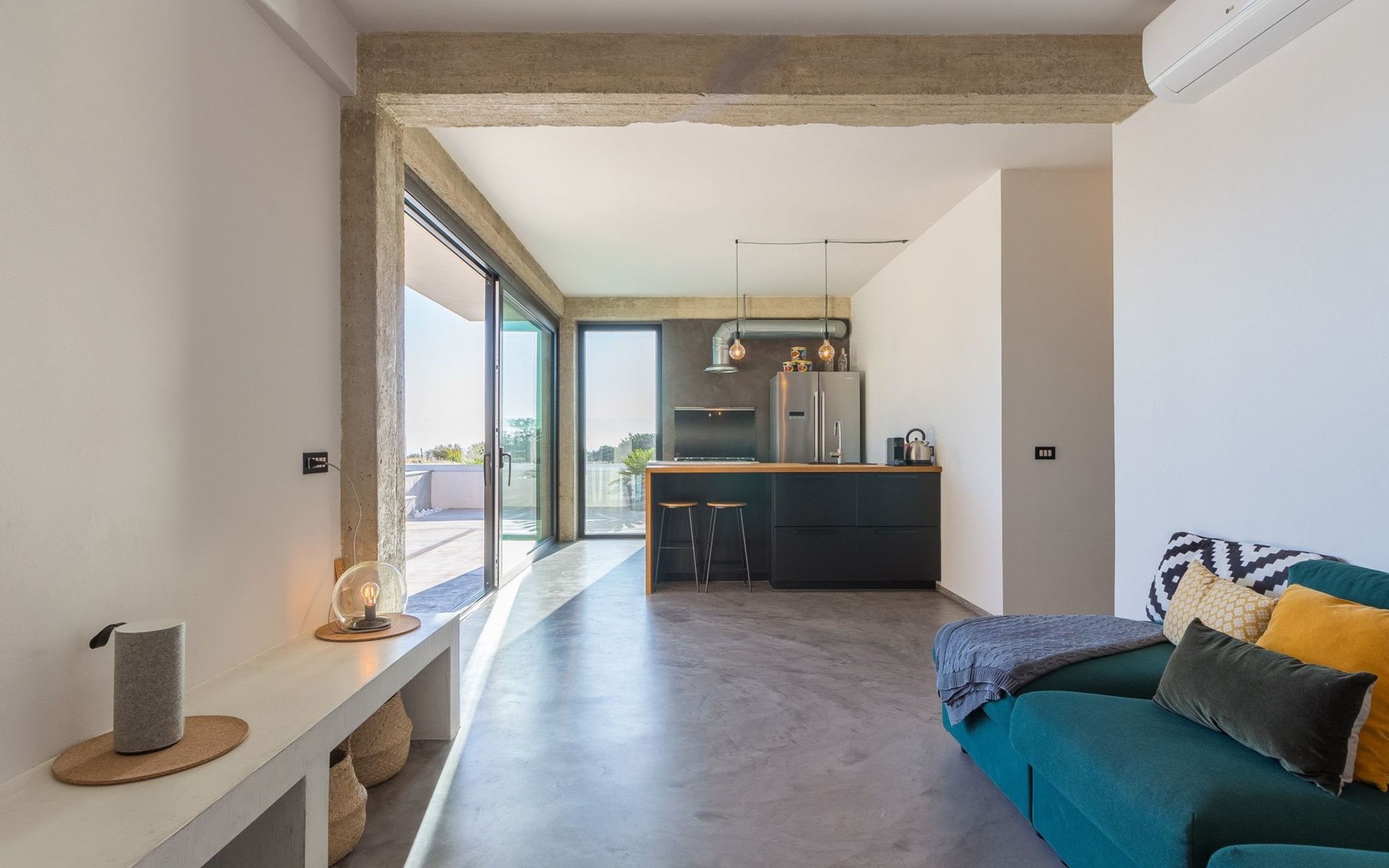 The villa has a sober and bright interior.
