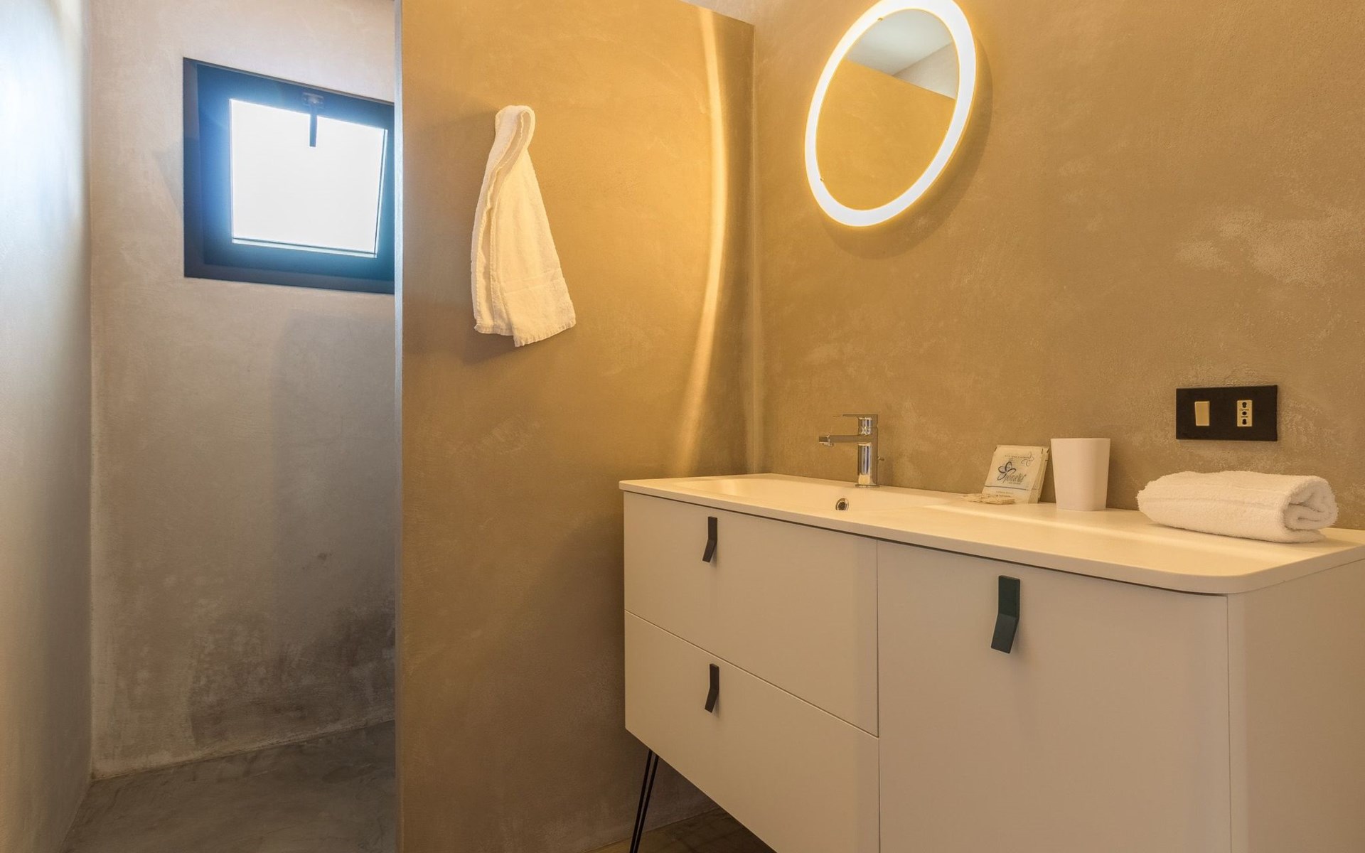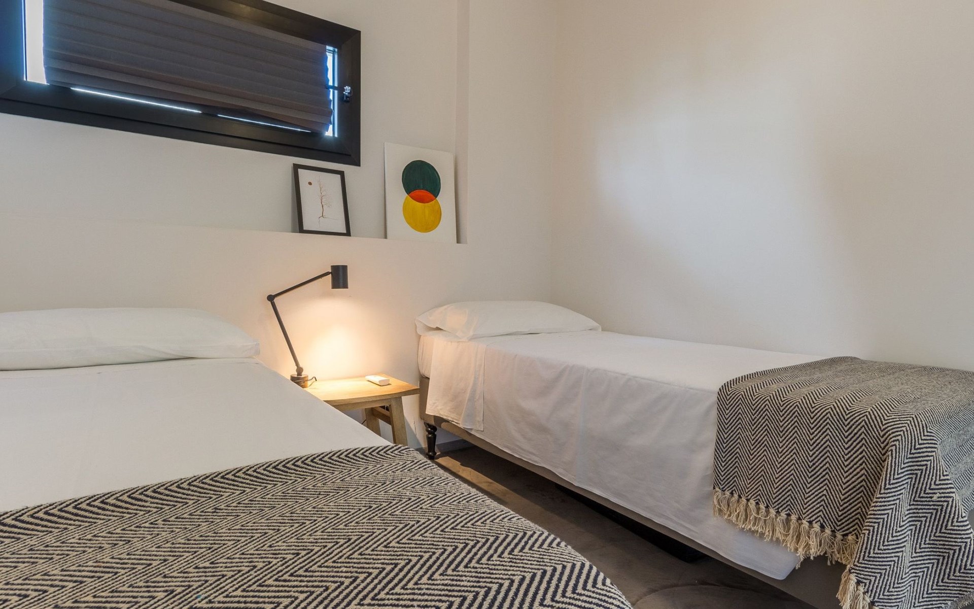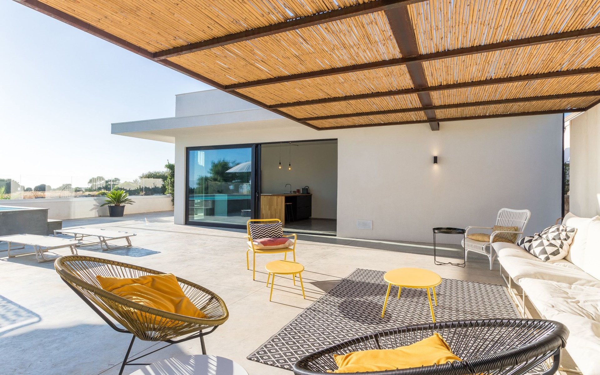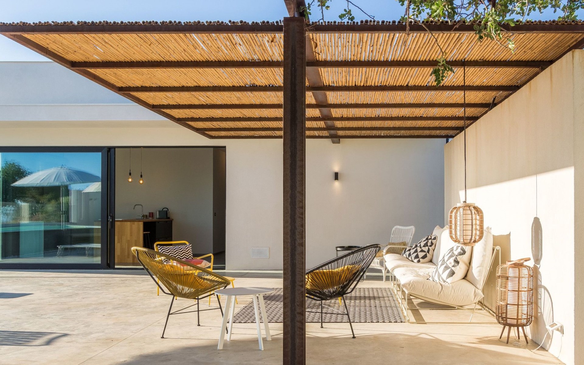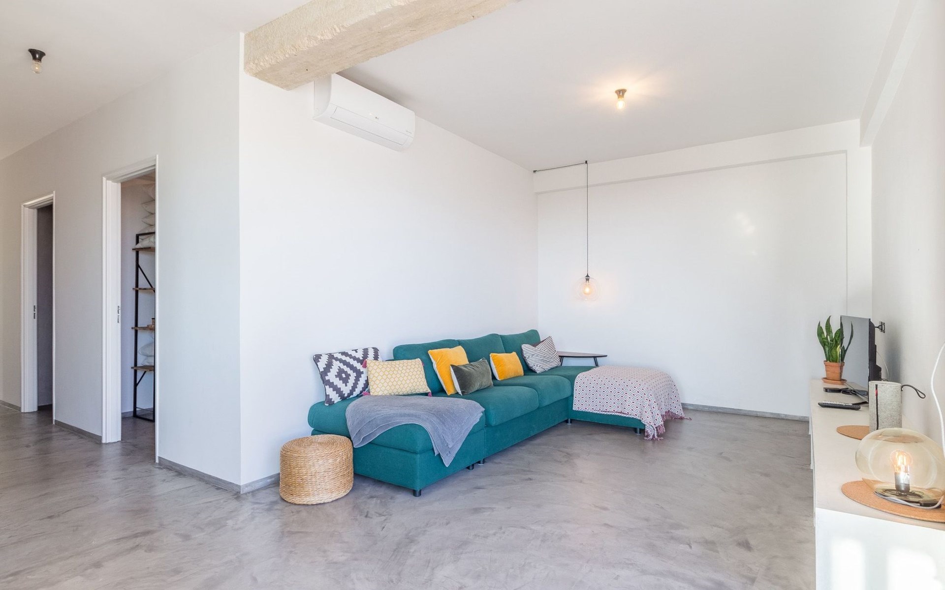 The villa has a sober and bright interior.
