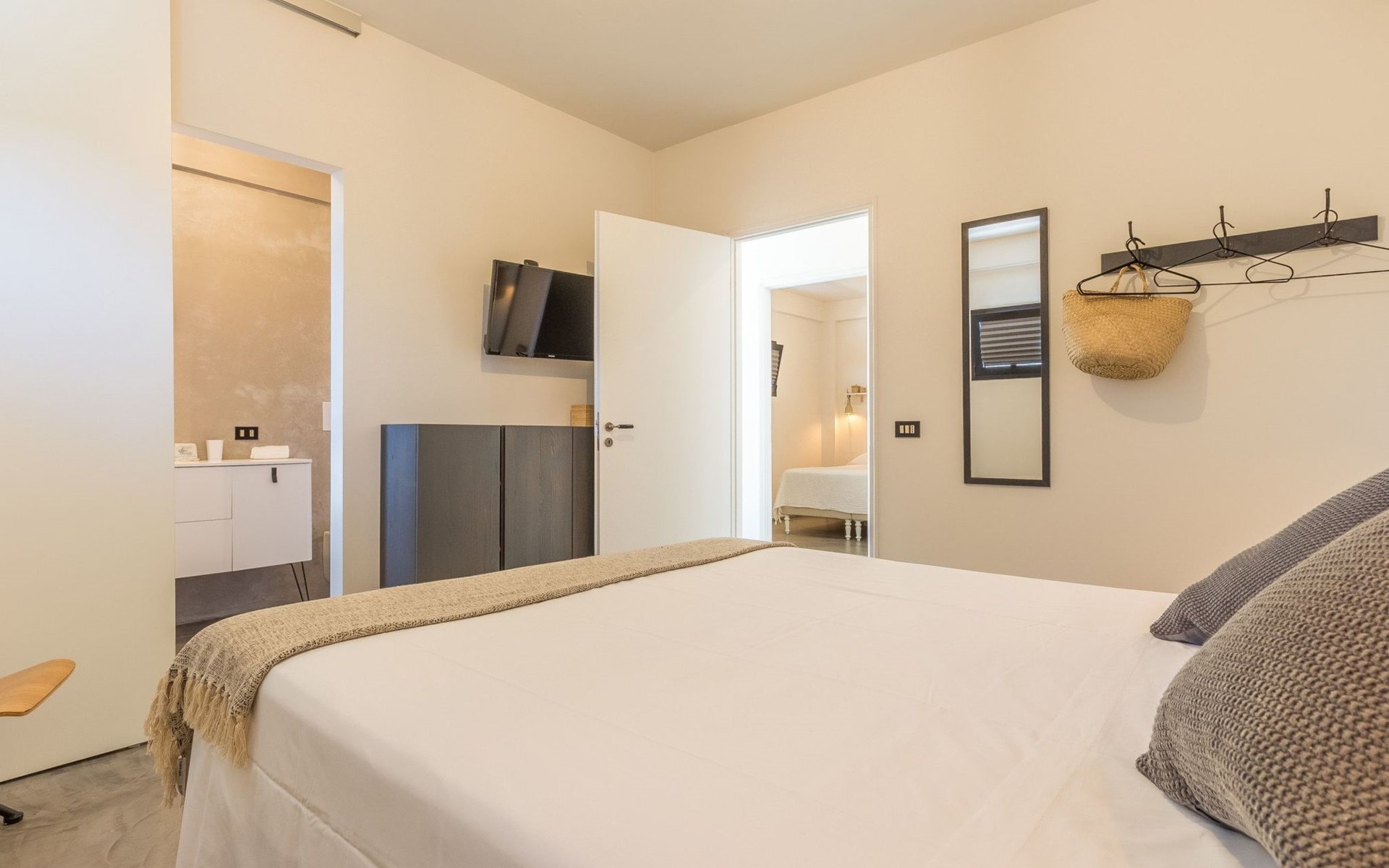 4 bedrooms: one twin (two single beds), one double, one double with en suite bathroom and shower and another large double with TV and en suite bathroom with shower.