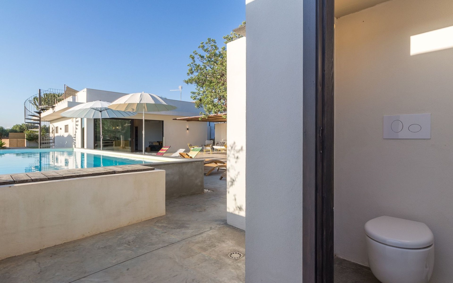 The villa is immersed in the countryside, in a 1000 sq m property.