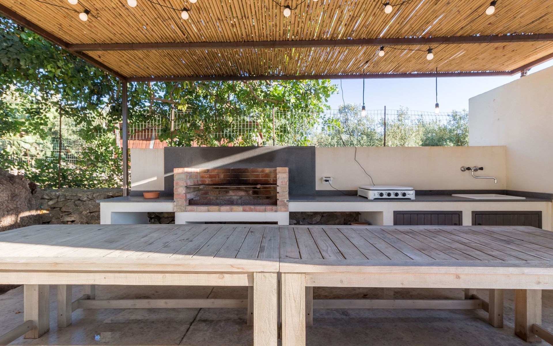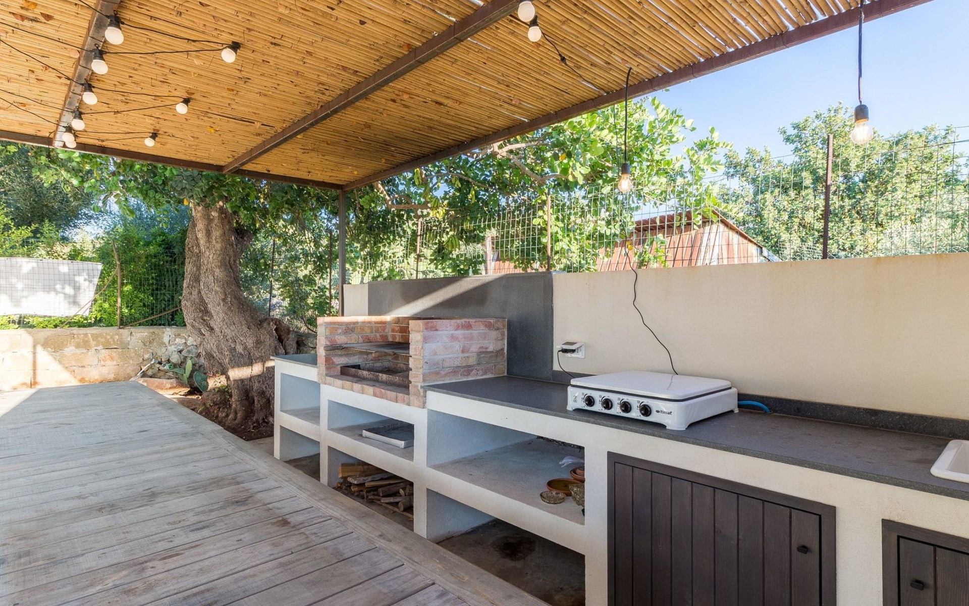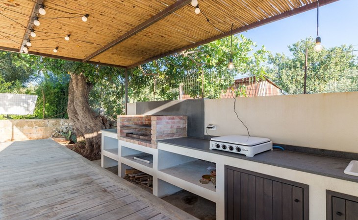 Large furnished terrace with outdoor kitchen with barbecue.
