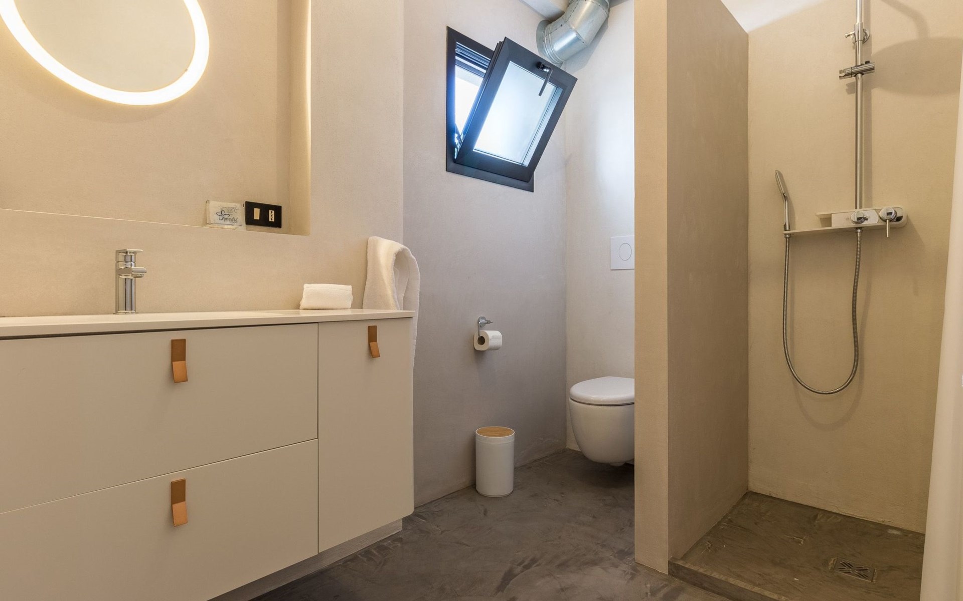 A third bathroom with shower in the corridor.