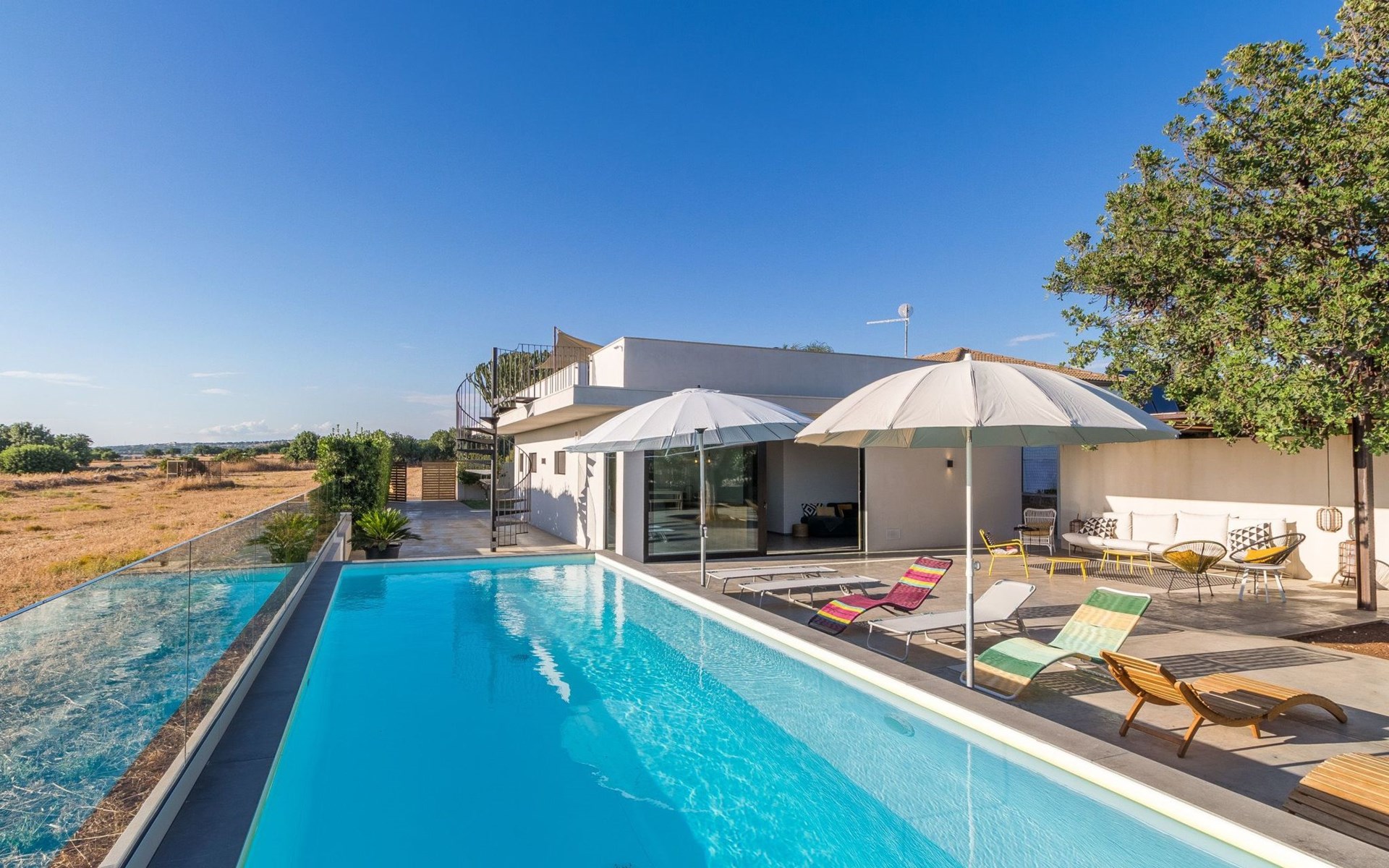 For families or for a group of friends who want to spend a relaxing holiday not far from the sea, in a panoramic villa, in a quiet and peaceful countryside area. Cozy and well furnished, the villa offers a stay of comfort, privacy and relaxation, just a few minutes’ drive from the sea and the city services. It also boasts a good location for getting around easily by car and visiting the surrounding area and tourist destinations.