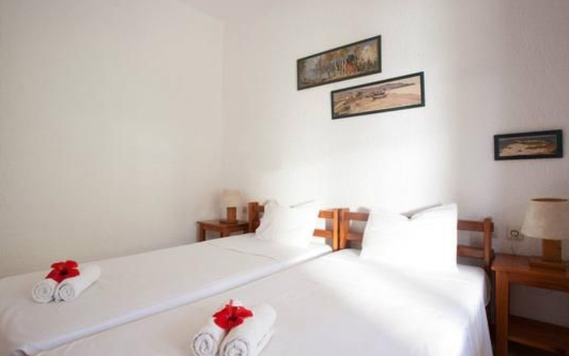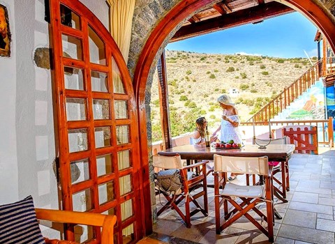 Soft, sandy beaches, embraced by rocky coves, contribute to the queer charm of the coastline.The gracefully rising slopes of the surrounding hills are adorned by lavish green vegetation contrasting the grey-brown color of the mountains and the white houses of small scattered villages. Villa Castello is situated on a 1900 m² large property where Olive-, Fig-, Orange-, Mandarin-, Palm-, and Banana trees, as well as flowers thrive in terraced gardens that embrace the house; about 450 m from the Sea. Every apartment is individually decorated with original paintings and old, traditional Greek objects. Pergolas, covering all patios and balconies, provide cooling shade; every apartment is with Safe, TV, W-Lan and air conditioning unit. The terraces and stone pathways are adorned by flowerbeds, decorative shrubbery and bushes.Here, in harmony with nature, you can escape the hustle of the nowadays so hectic world to find your own little piece of fortune and get lost in your dreams submerged in the changing play of light and shadow, water and azure blue sky - everything is possible on this island. The garden includes a stone built oven, nestled between the trees, next to a marble table and stone benches.A playground with sandbox is also available for our very young guests. In Istron (ca. 300 m from the house) you find shopping and nice taverns serving Greek specialties. The initial village of Kalo Chorio is located about 2 km upcountry. Because of its location a good starting point to visit Minoan palaces, remote monasteries, Byzantine churches, caves, grottos and many enchanting natural sights.Villa Castello for 2-3 Persons:Located on the first floor (upper floor), includes bedroom with 2 single beds, night stands, built-in wardrobe, mirror with shelf and stool, and sizeable balcony with view toward the mountains. The spacious living room with table, chairs, stools and sofa (sleeping for 3rd person) extends to a lovely balcony with table, chairs and view to the Sea. The kitchen, separated from the living room by an arched doorway, is furnished with table, chairs, upper- and lower cupboards, sink, refrigerator, coffee maker, electric stove with plates, enough silverware and dishes. Bathroom with shower, toilet and sink.Short description 1Number of kitchens : 1SurroundingNearby sports facilities : Bike tours, Canoeing, Diving, Fishing, Mountainbiking, Rowing, Sailing, Surfing, Water skiingRental Facilities : Bicycle rental service, car rentalGarden and outdoorGarden facilities : GrillOn-site leisure facilities : Outdoor swimming pool shared use, Swimming pool