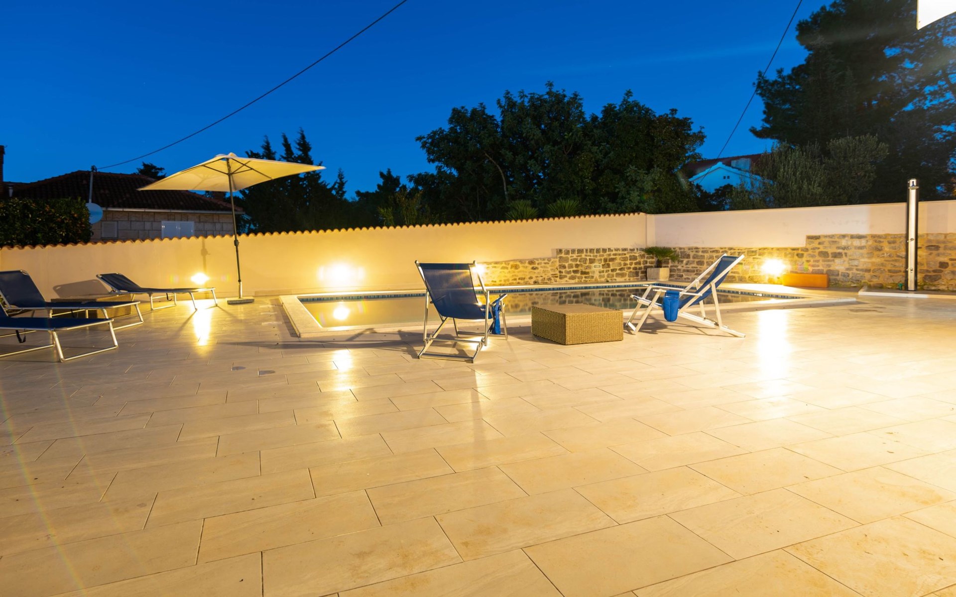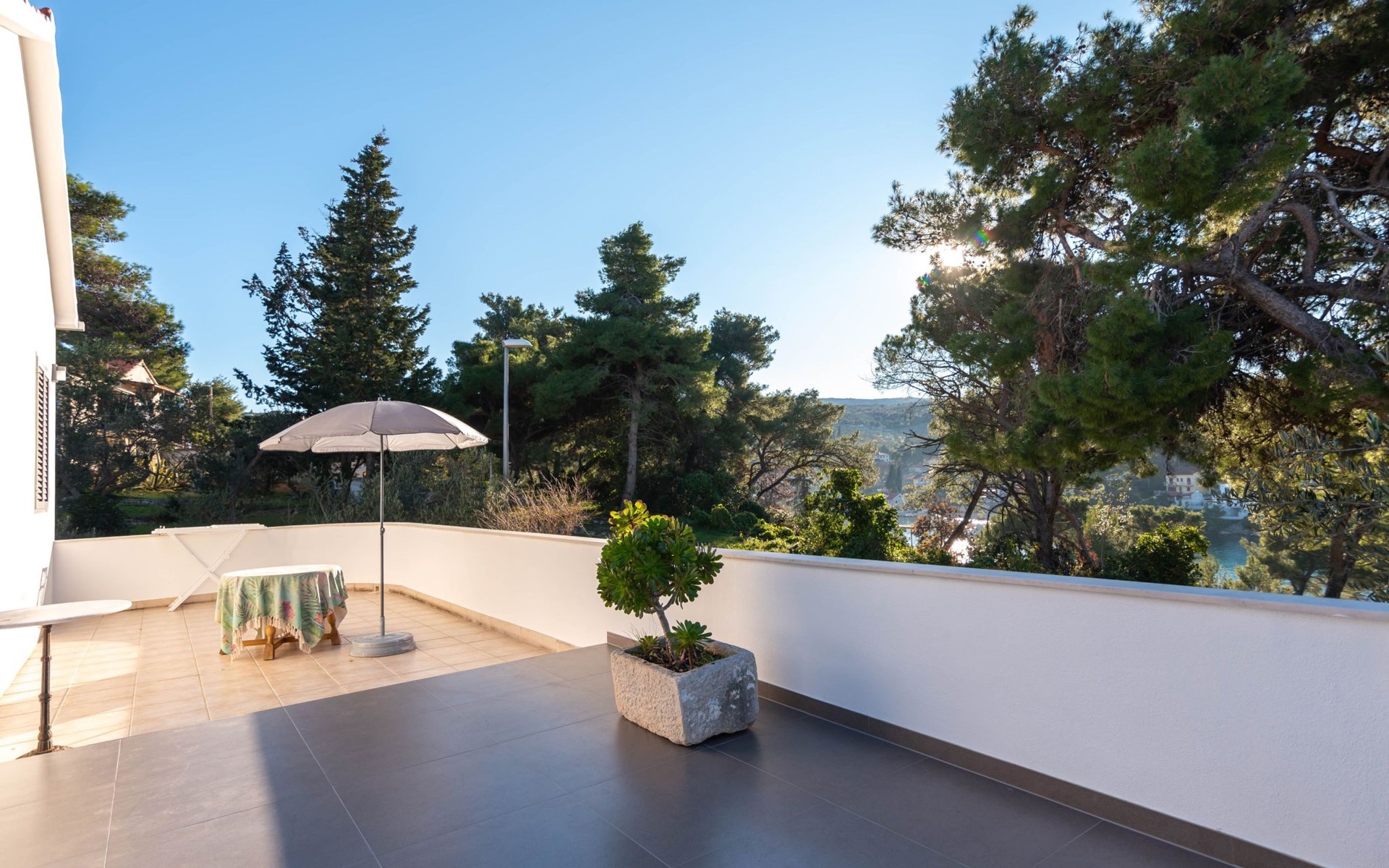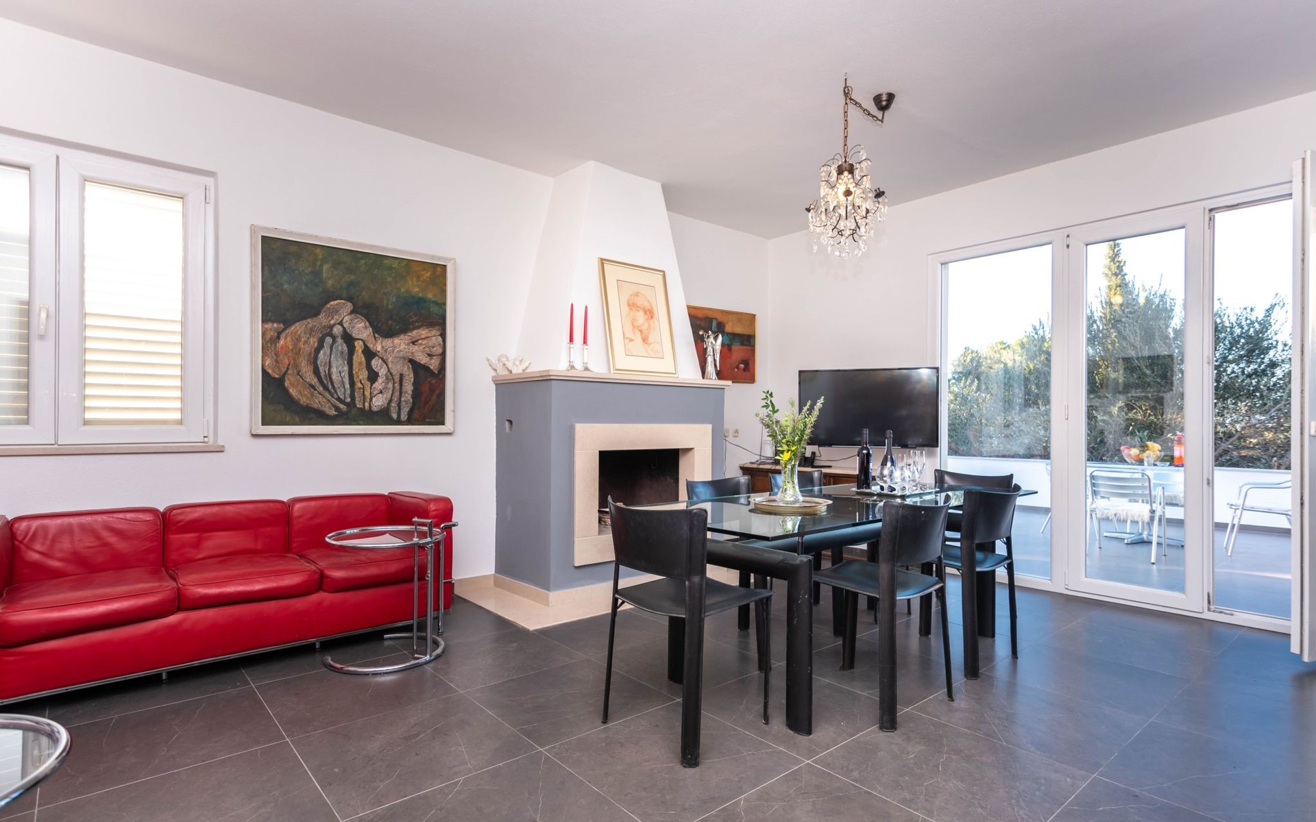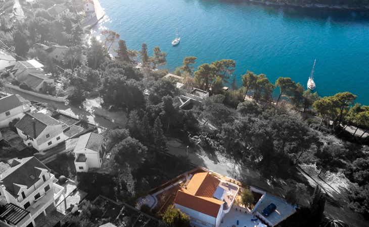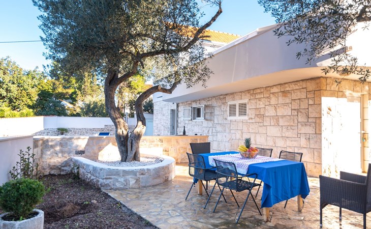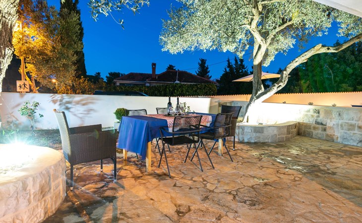 Villa is located on the right side of the bay, in a pine forest and is only 50 meters from the sea. Villa has a large pool & which is surrounded with stone paved yard on which there is a fireplace, table with chairs under the olive tree, an outdoor shower and sunbeds.