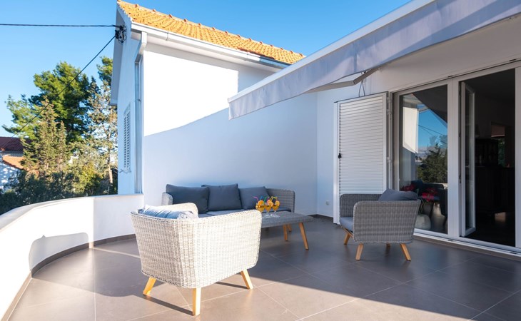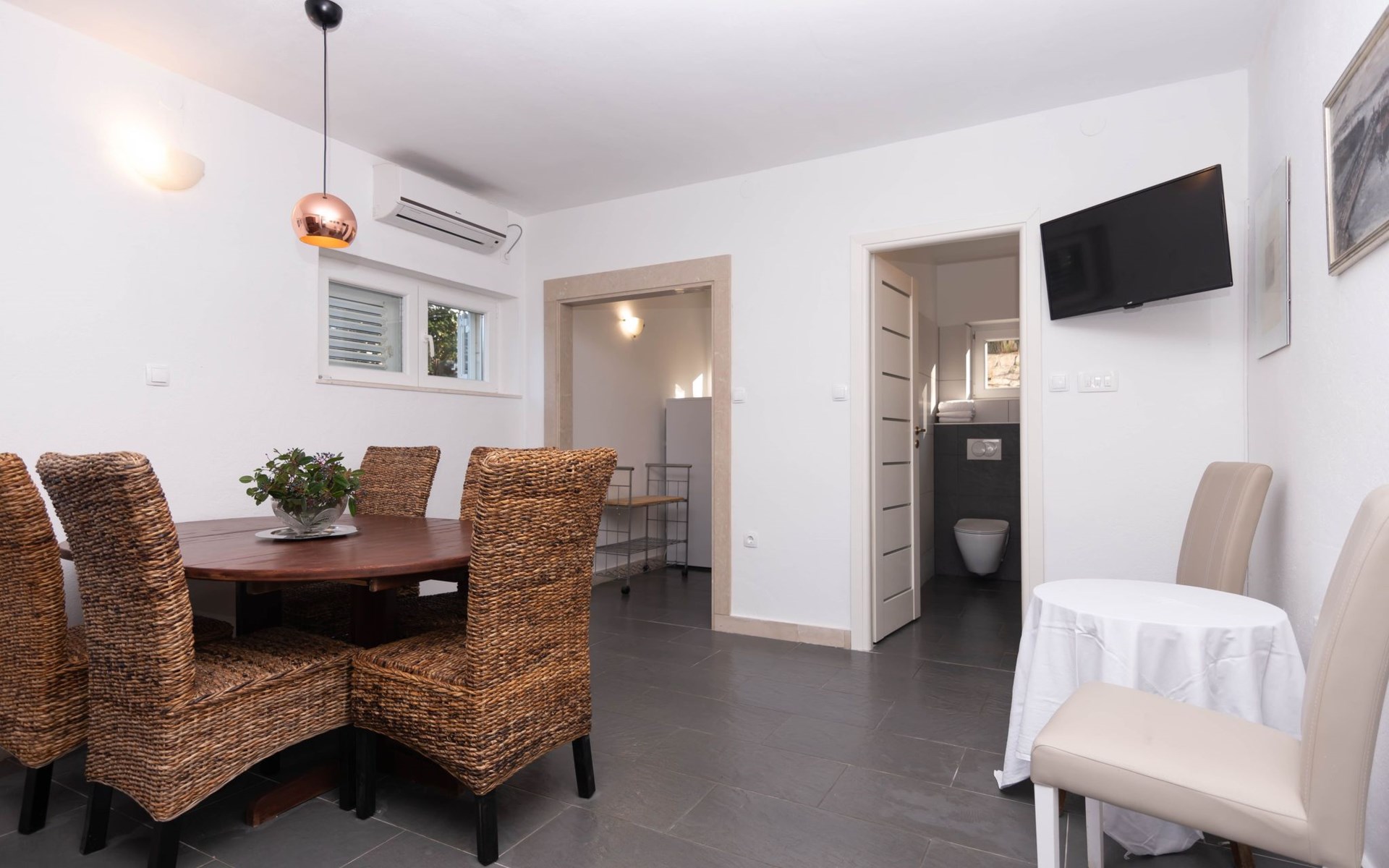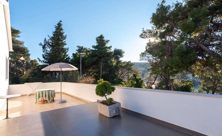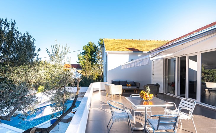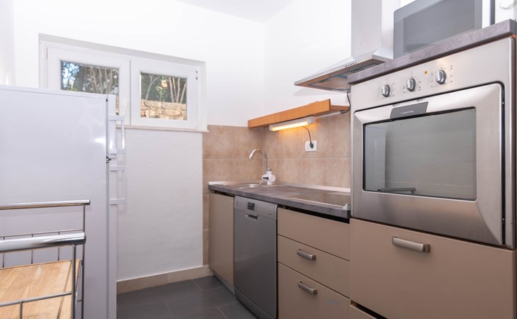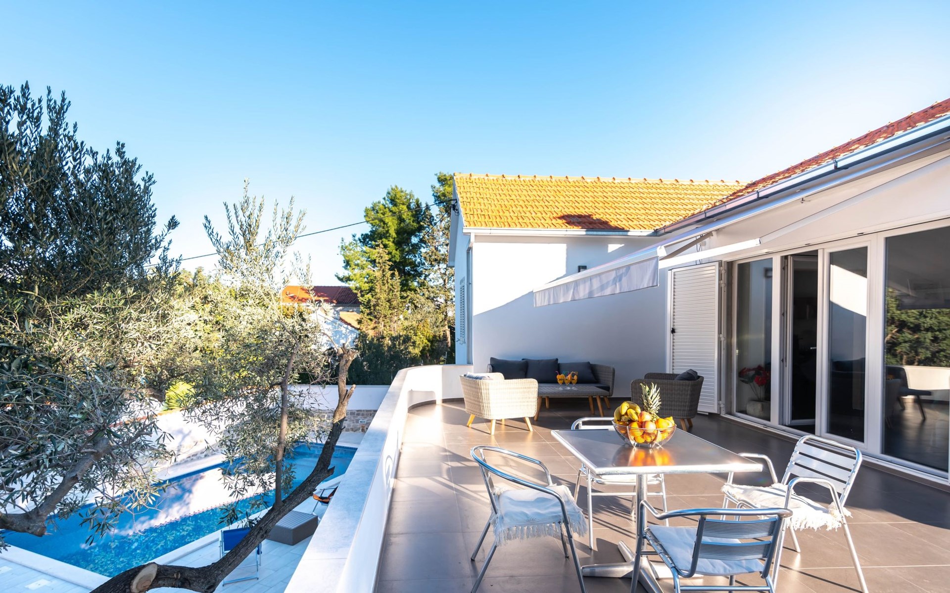 Villa is located on the right side of the bay, in a pine forest and is only 50 meters from the sea. Villa has a large pool & which is surrounded with stone paved yard on which there is a fireplace, table with chairs under the olive tree, an outdoor shower and sunbeds.