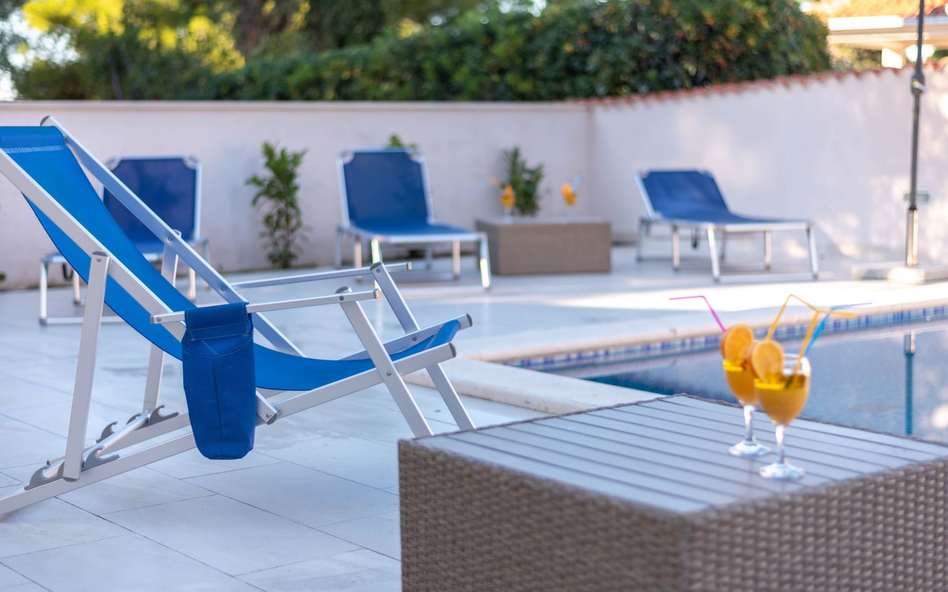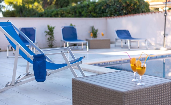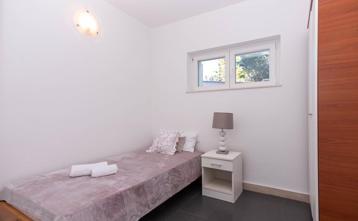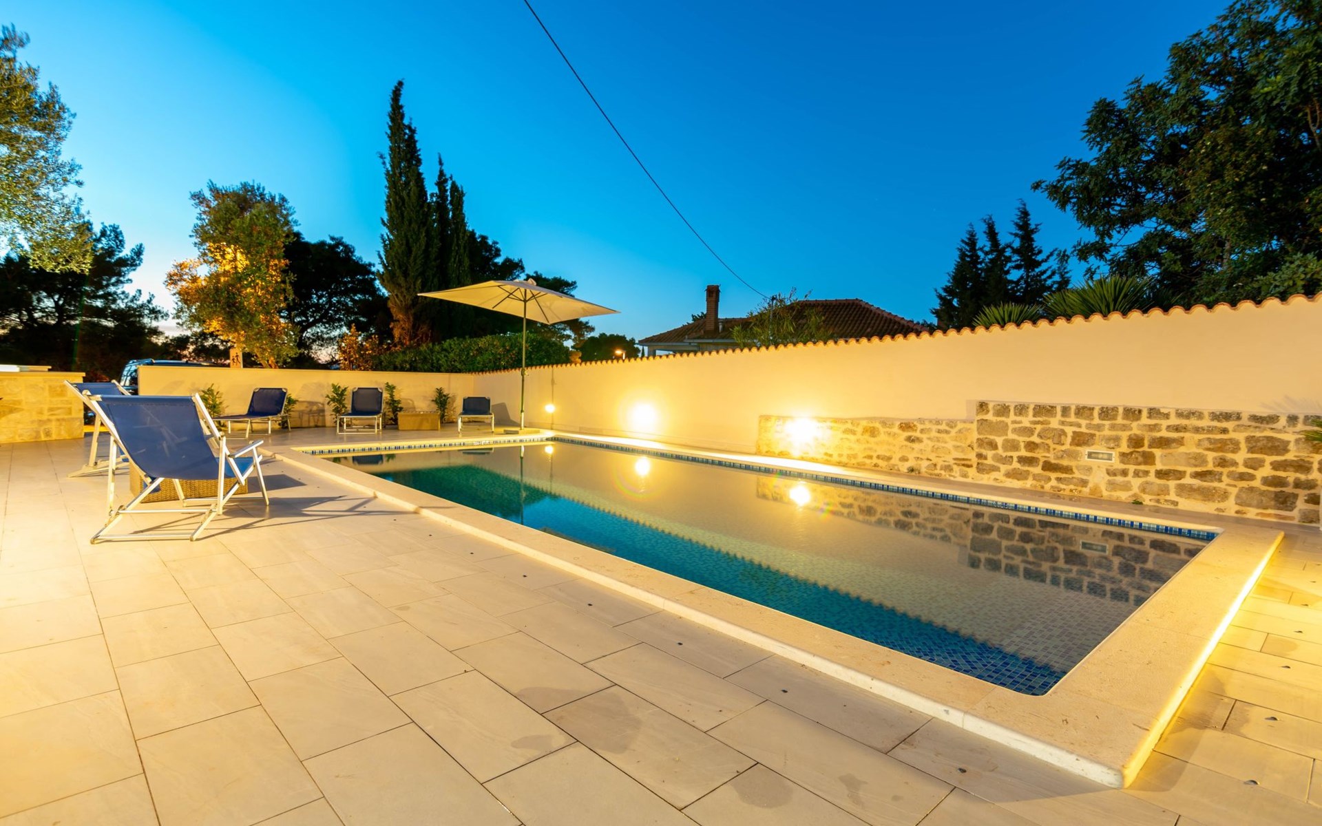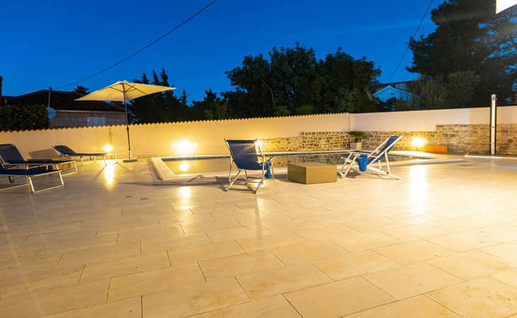 On the ground floor there are 2 bedrooms, 1 with double beds and second with single bed. Villa has big POOL of 30 m^2 in front of it with sunbeds and siting area around it.