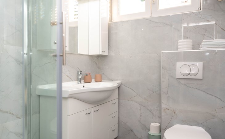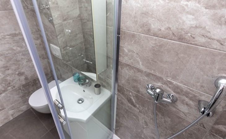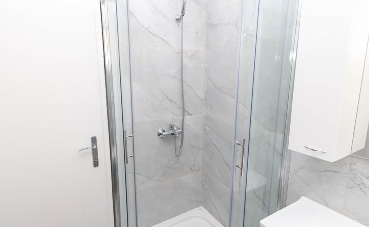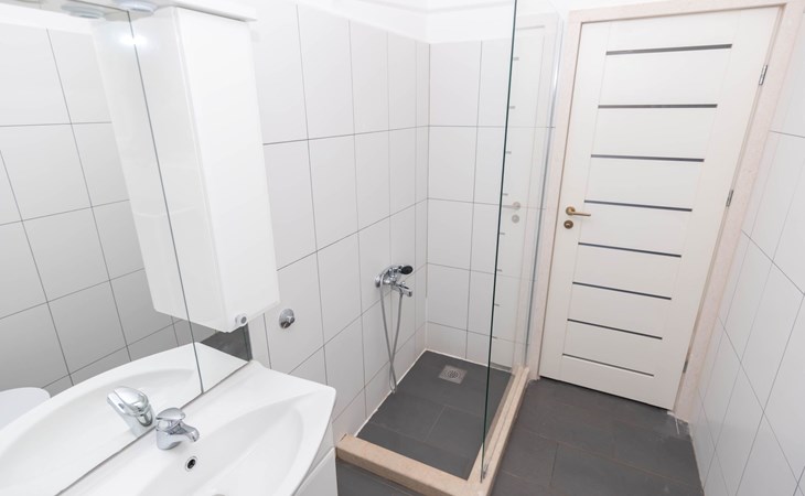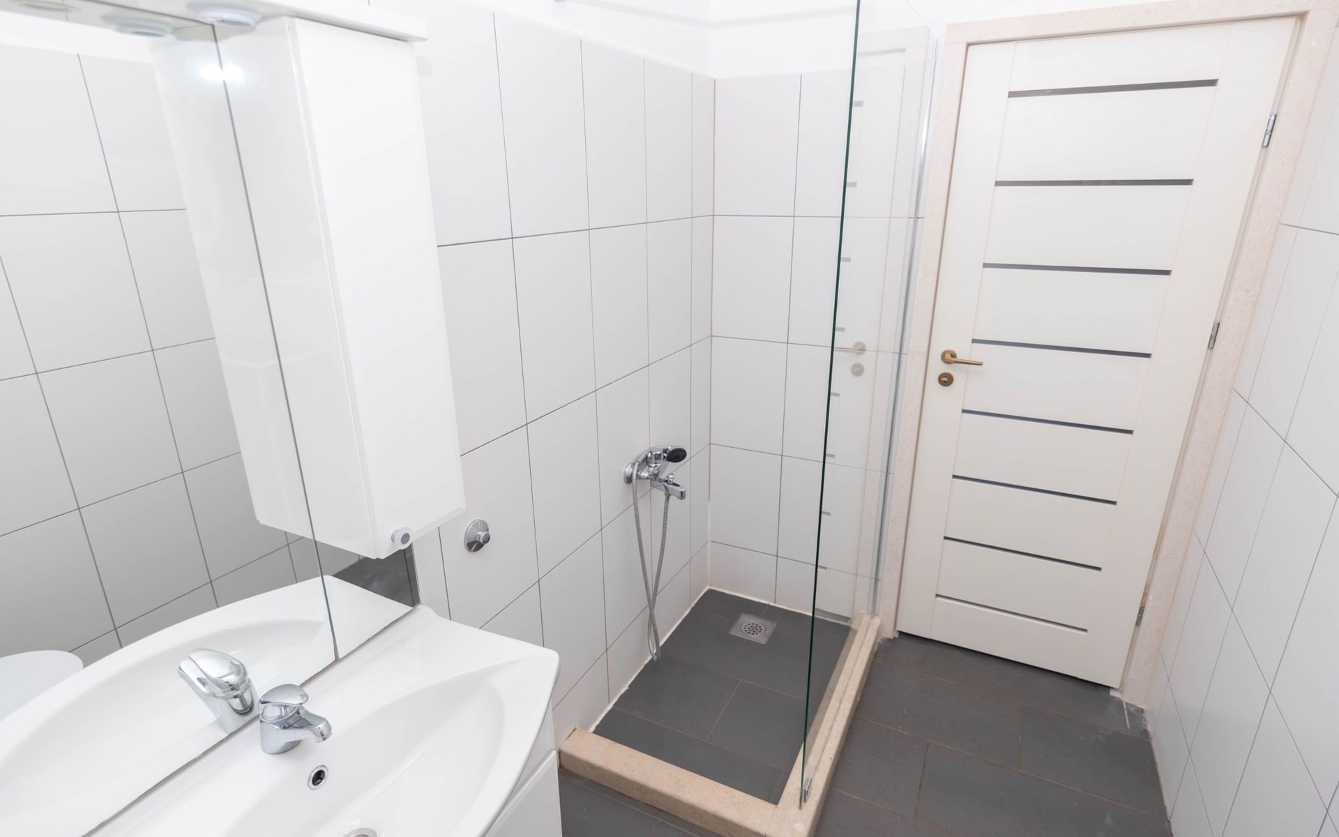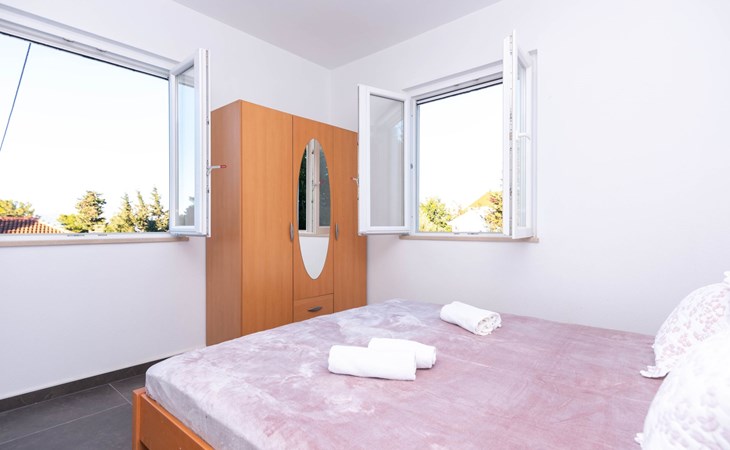 From stone pave you enter ground floor which consists of 2 bedrooms, 1 with double beds and second with single bed. There is small new kitchen and dining place with table and 5 chairs. Also there is full bathrooms.