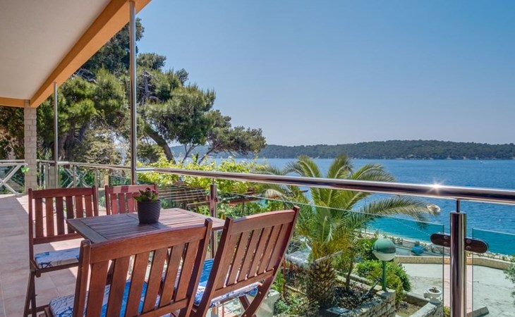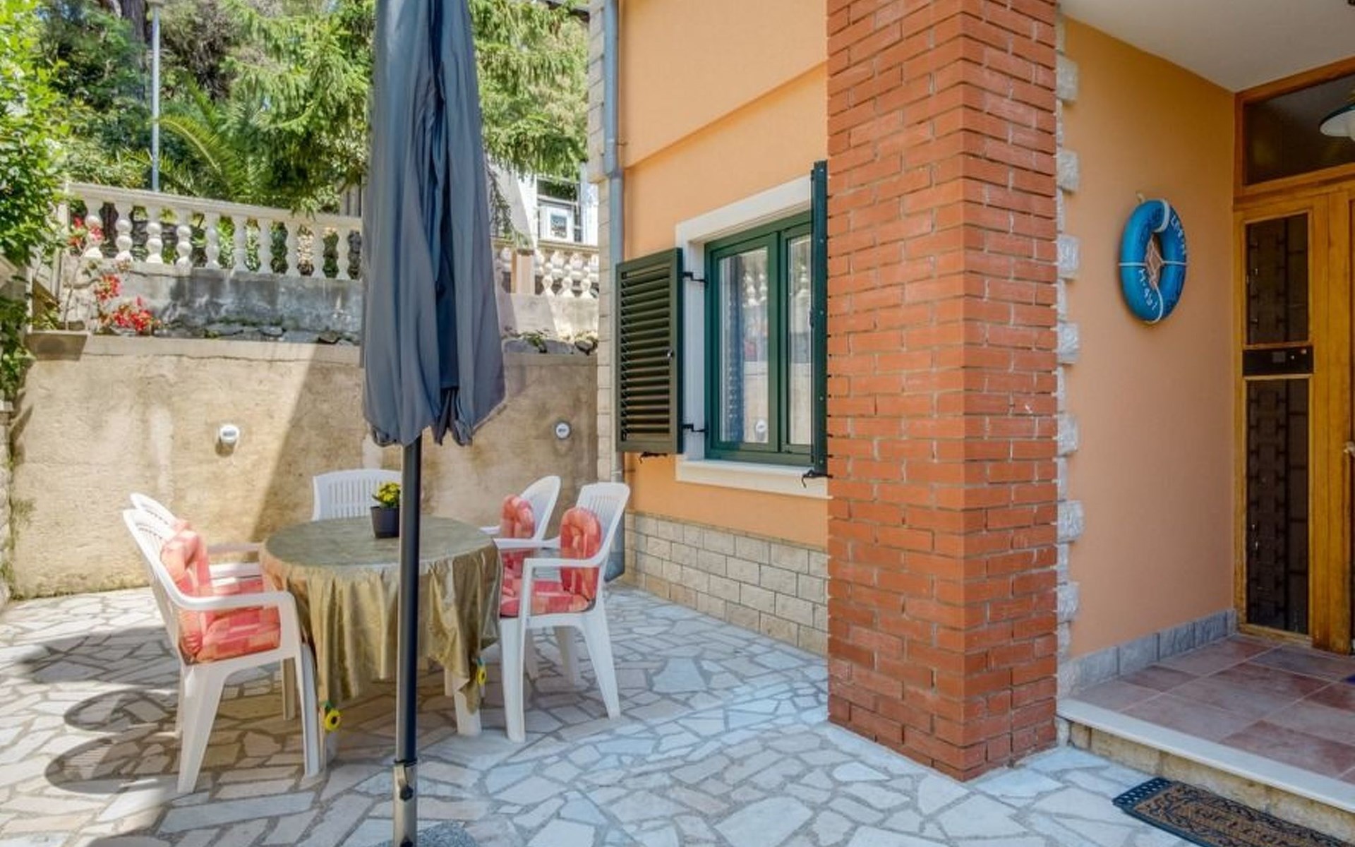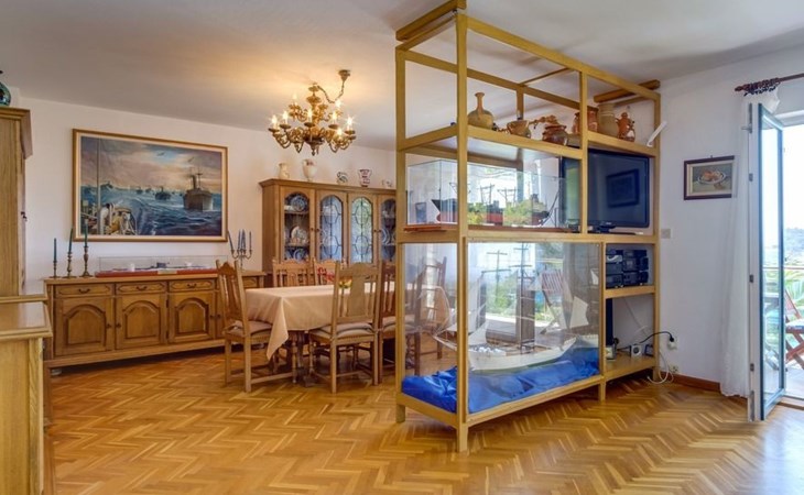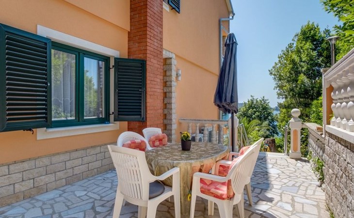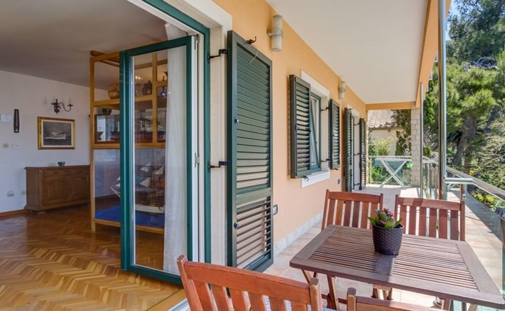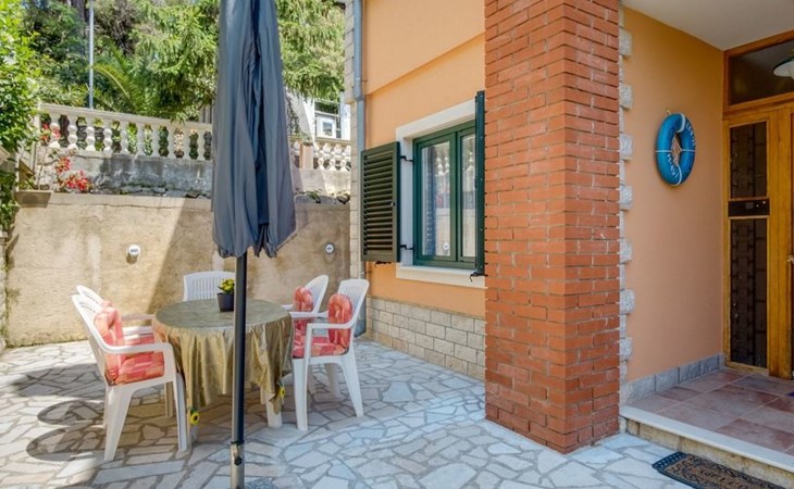 The house has four apartments, one on the ground floor for four people with a large terrace and sea view, one on the first floor for 3 people and sea view and two on the second floor for 3 people with a balcony and sea view. A barbecue is also available next to the house.