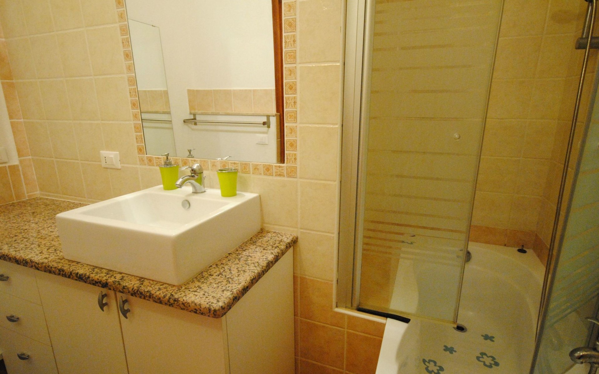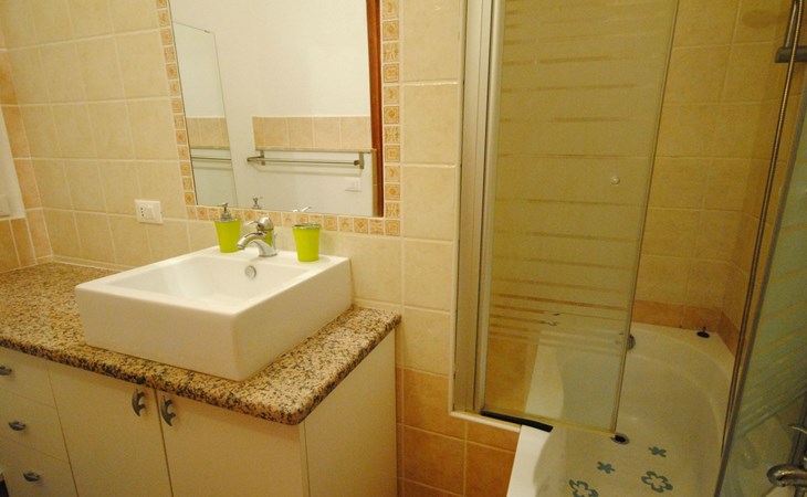 2-room flat 40 m2, for 2 - 3 persons, 1st floor incl. 15m2 veranda 1 bedroom with double bed, can also be set up as single beds Bathroom (shower/WC/bathtub). Kitchen/living room with single sofa bed (width 110 cm) and veranda with garden view. Air conditioning/heating, fully equipped kitchen, fridge, freezer, gas hob, oven, washing machine in common room, tastefully furnished rooms (see photos, subject to change), barbecue. Car park in the courtyard, WIFI, TV and towels.