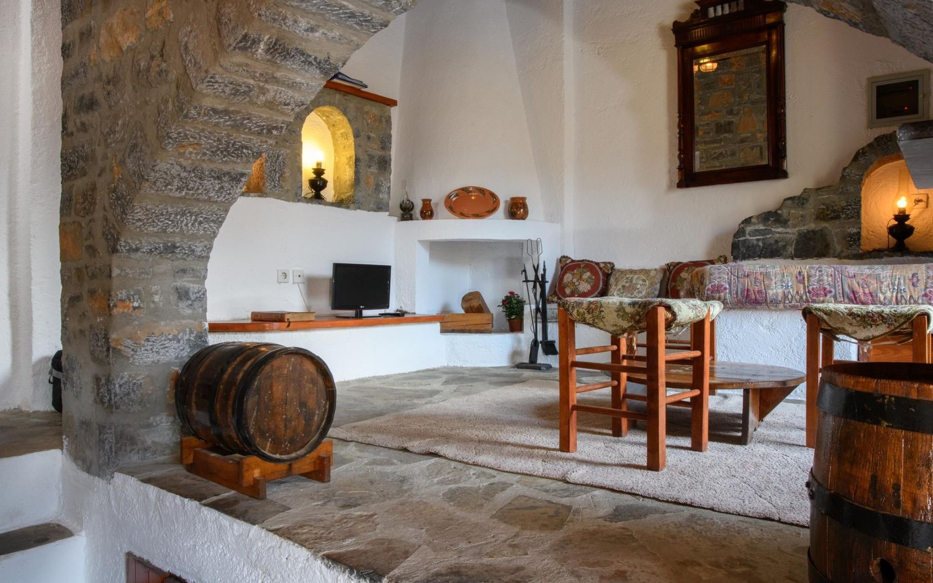 β Living Room Area β Cozy seating with handcrafted furniture & Cretan decor