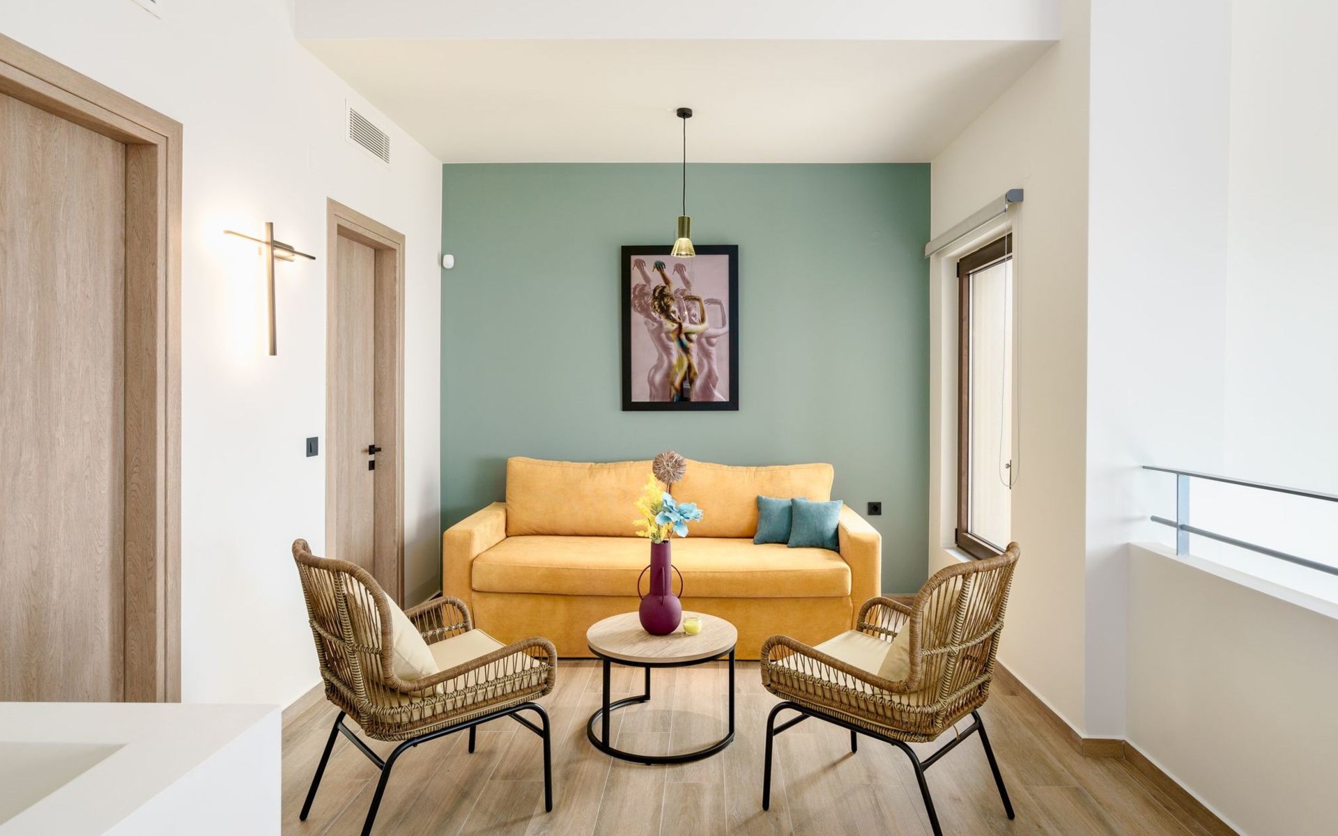 Living area with a sofa that can be converted into two single beds (0.90*2.00) upon request at an extra cost
