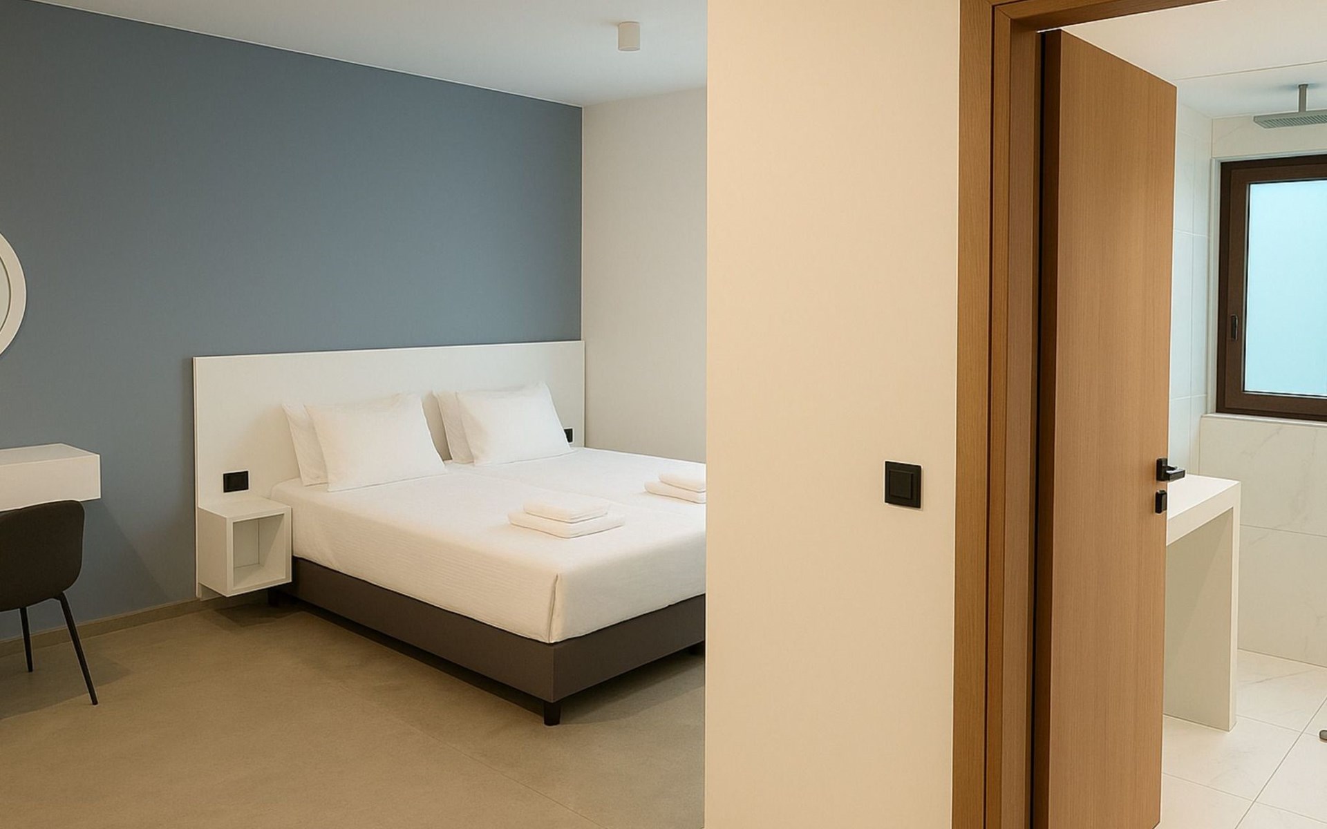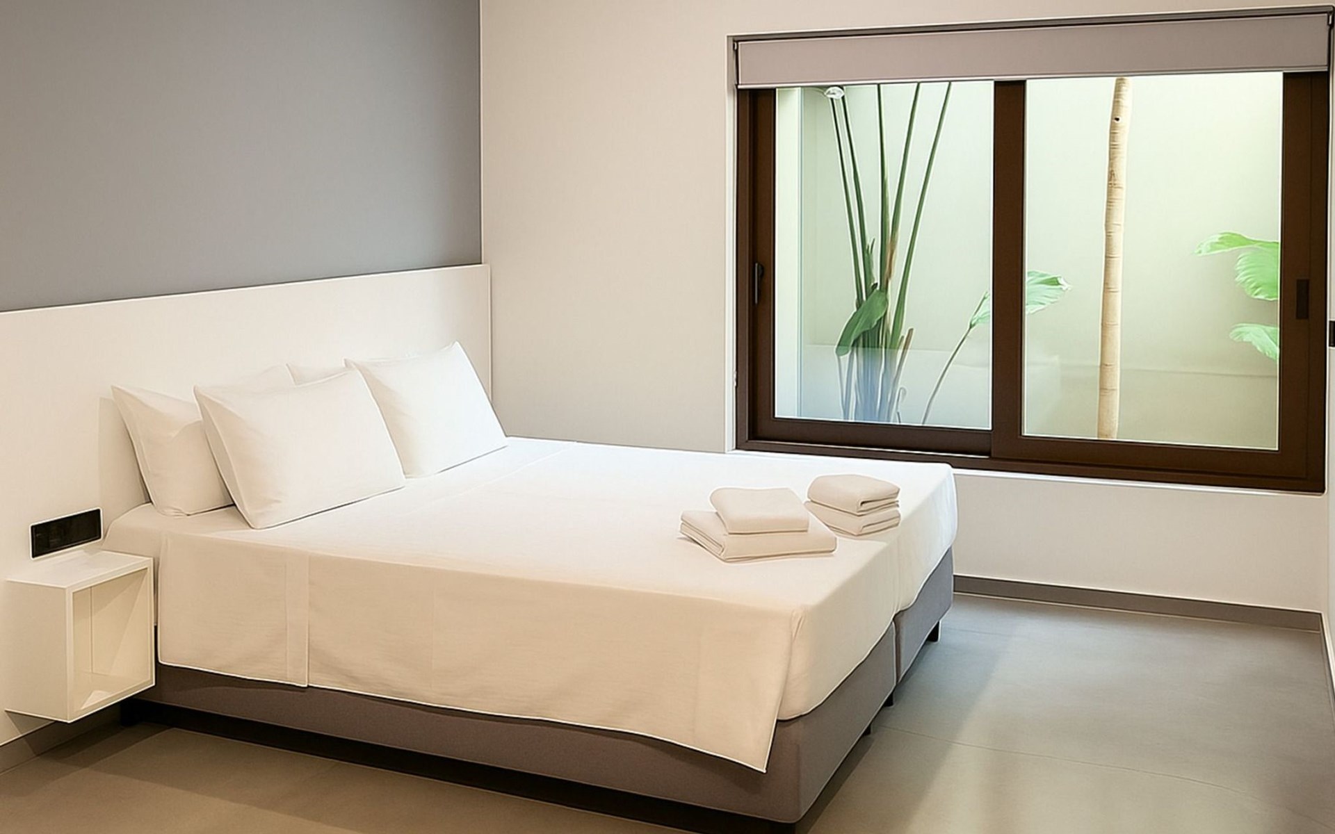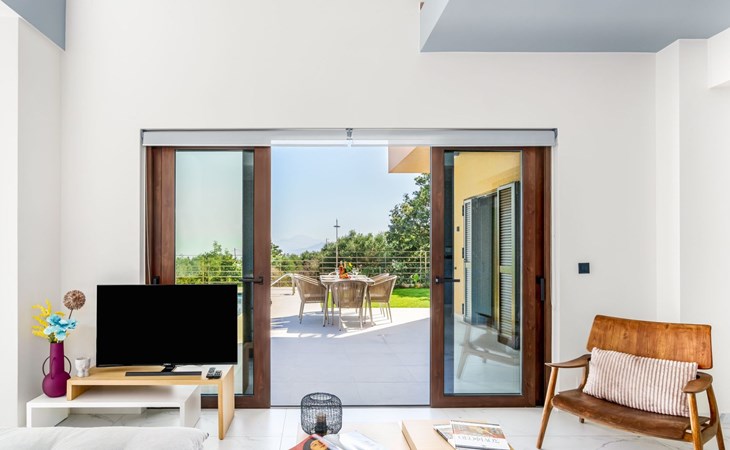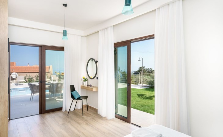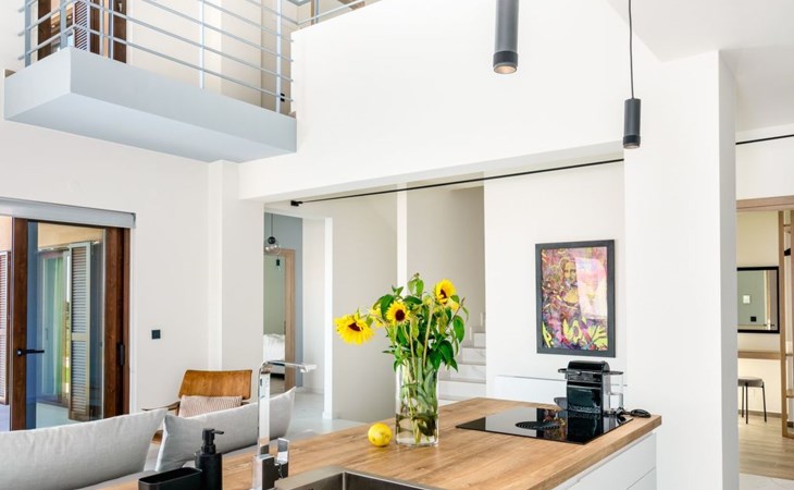 Villa Alya is part of the Olympia Villas Complex, which includes three villas: Villa Anthos (1 bedroom, 2 guests), Villa Alya (4 bedrooms, 9 guests), and Villa Fos (3 bedrooms, 8 guests). For larger groups, multiple villas can be booked together for a seamless stay.