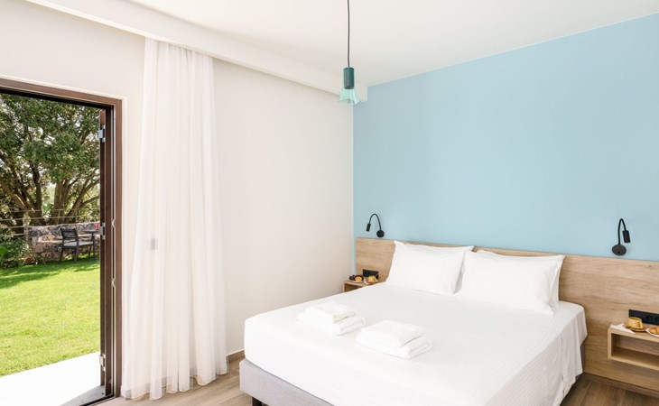 Bedroom 1: Queen-size bed (1.60x2.00), A/C, access to yard, Seaview