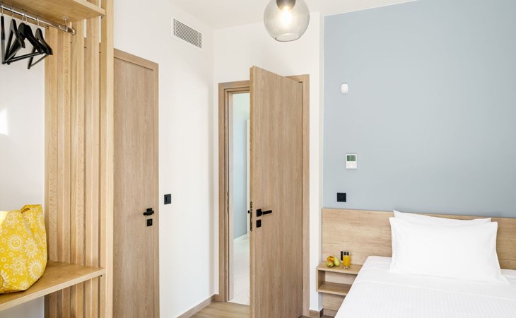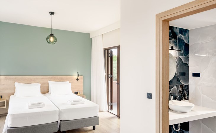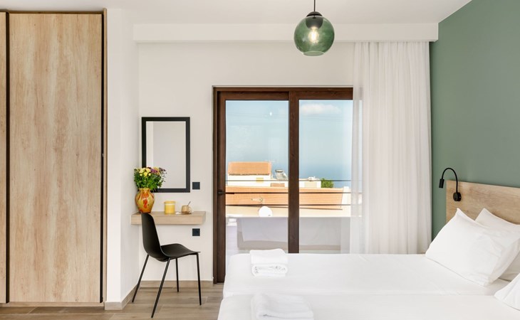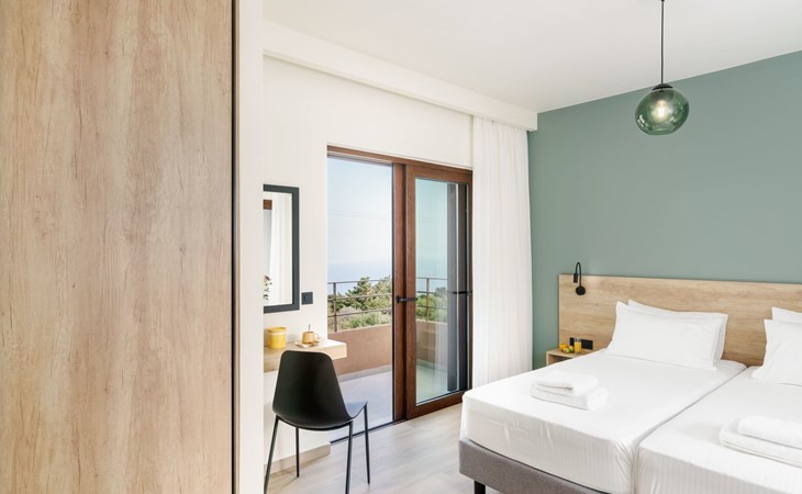 Bedroom 3: Twin-size beds (0.90x2.00), ensuite bathroom with shower, hairdryer, A/C, balcony with Sea & mountain view