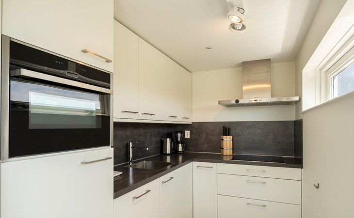 The modern and luxury house is fully-equipped and has a bright living room with a nice seating corner and a cosy fireplace. The open kitchen can be found adjacent to the living and dining area. The house has three bedrooms of which one on the ground floor. Furthermore, two bathrooms with shower and separate toilets are present.