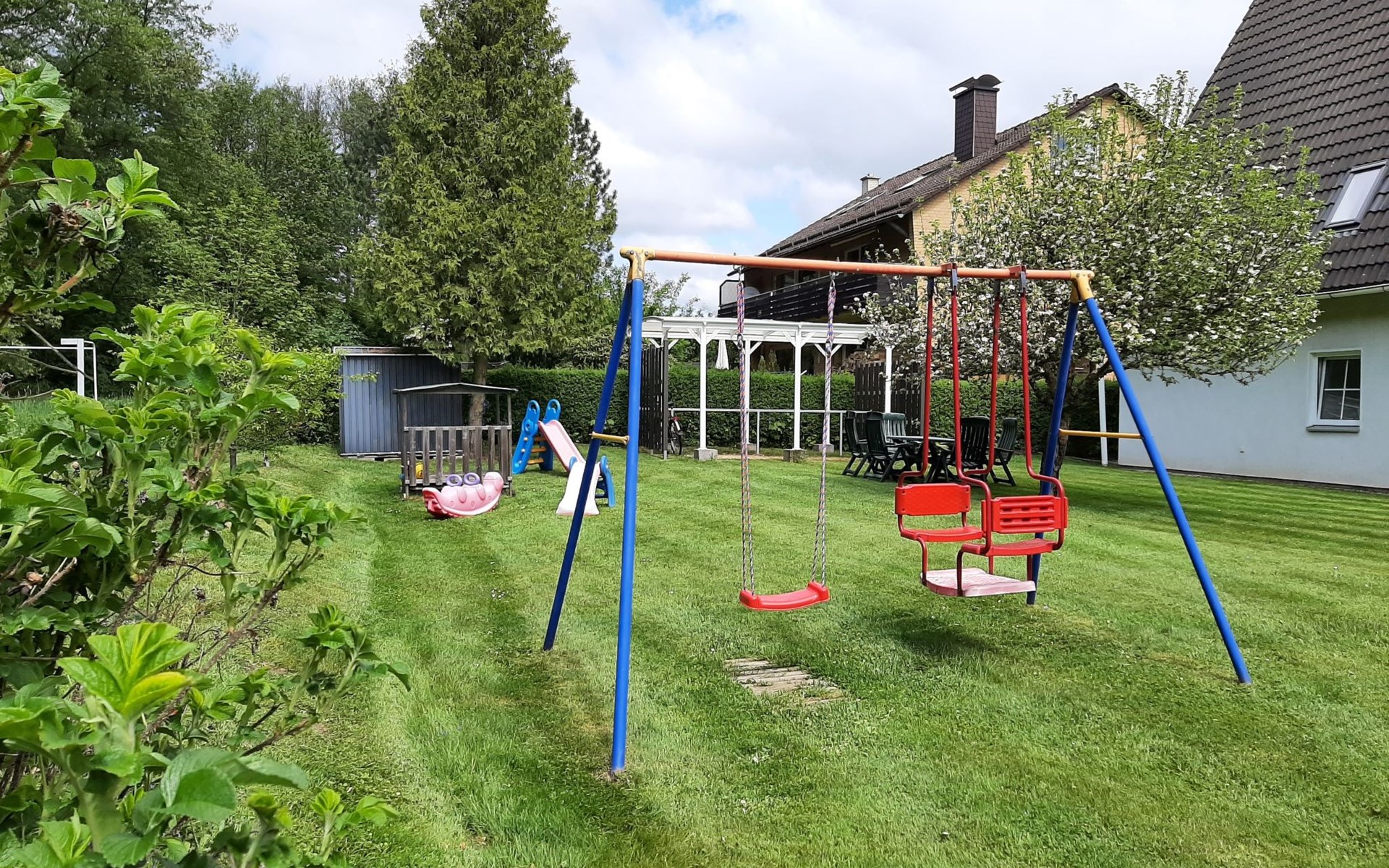 Outside, a spacious garden of around 1500 square metres awaits you with a sunbathing and play area, two barbecue facilities, play equipment, a playground and a garden shed for bicycles. It is a paradise for children and all those who love nature. The large terrace invites you to relax while your children can play safely and carefree. There is plenty of parking space right next to the house for your convenience.