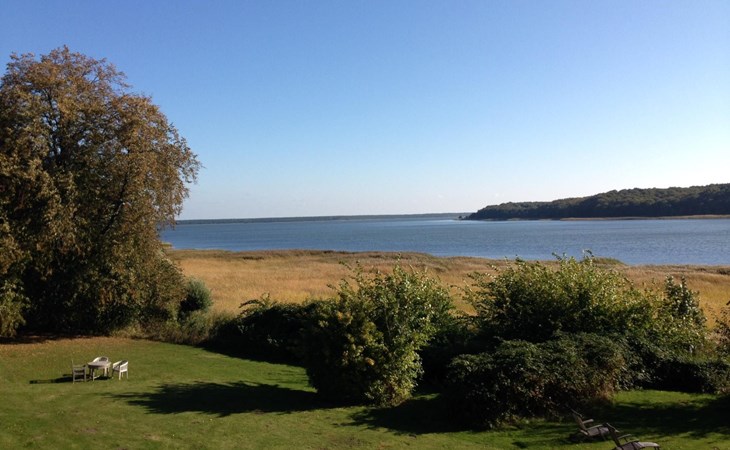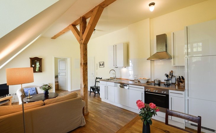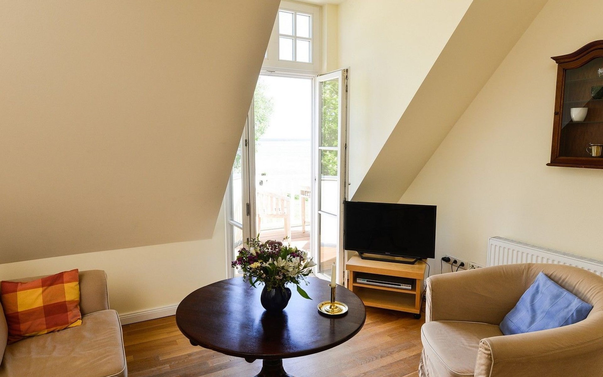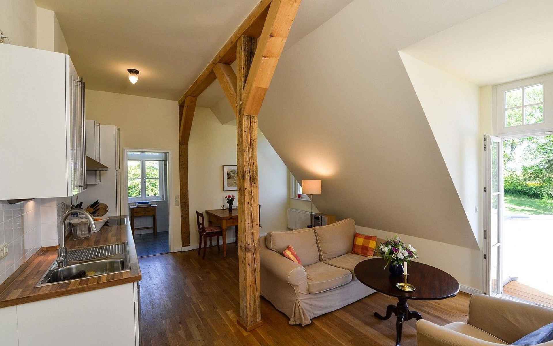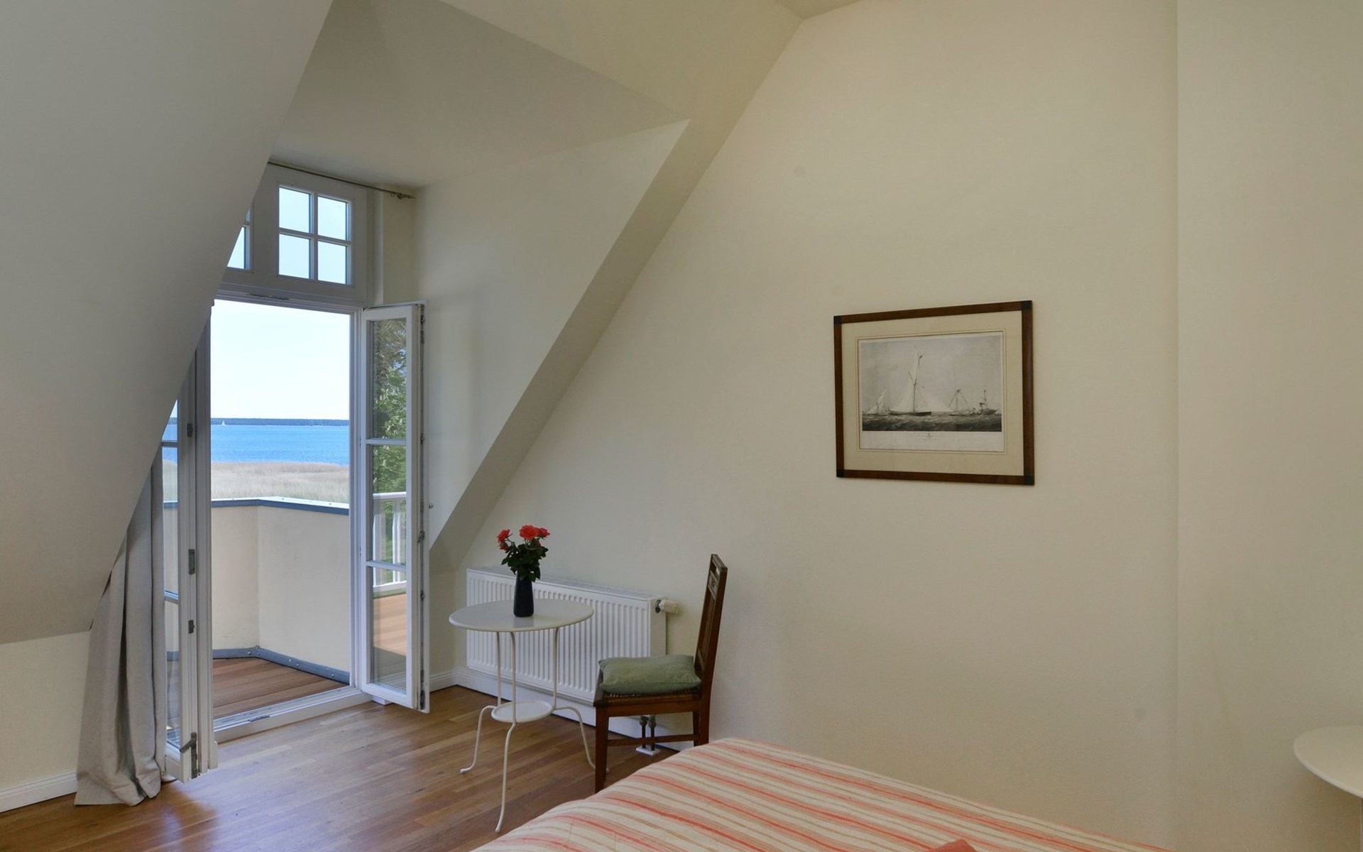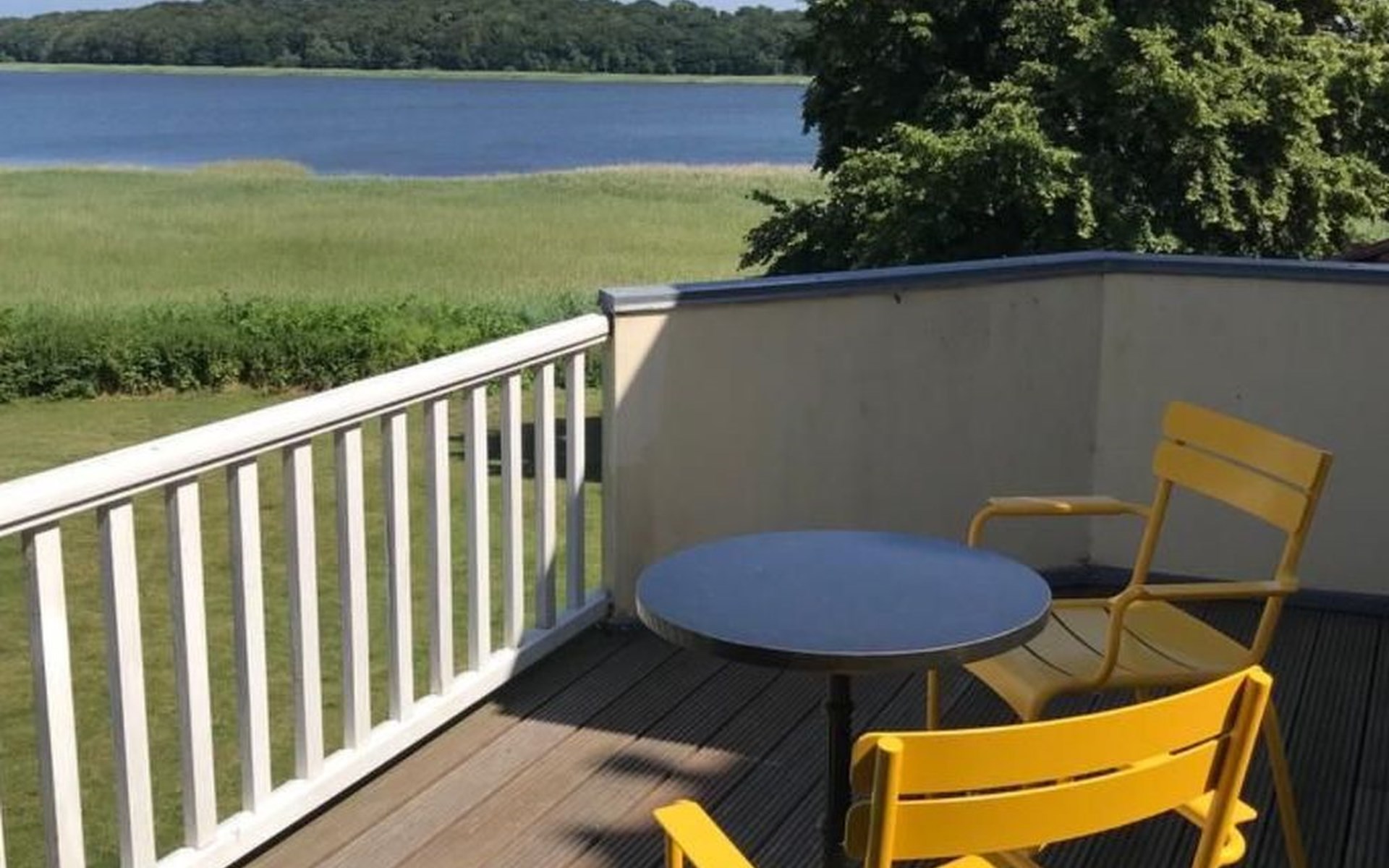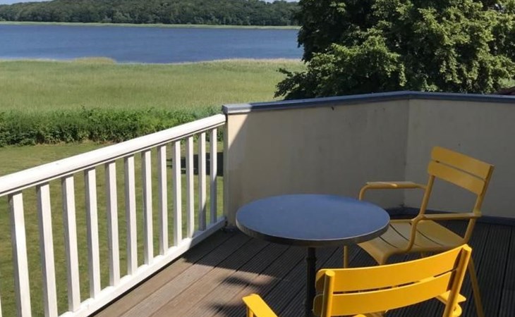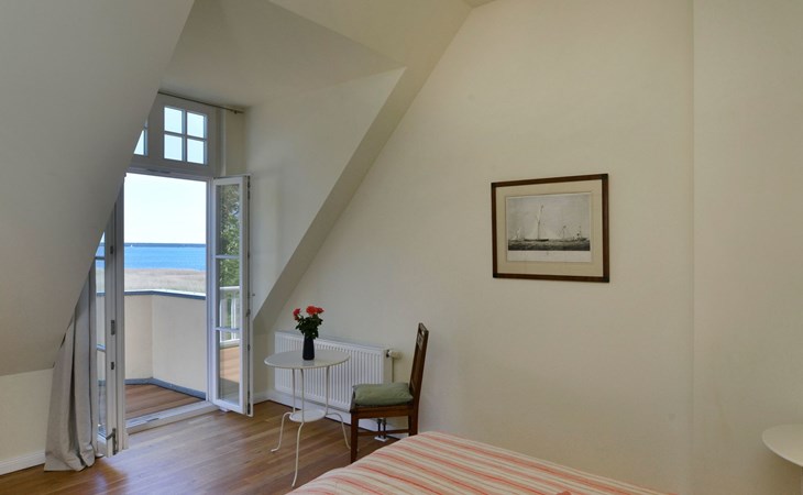 The apartment has a big balcony facing the garden and water, to the north-east. The balcony furniture is made of teak wood.