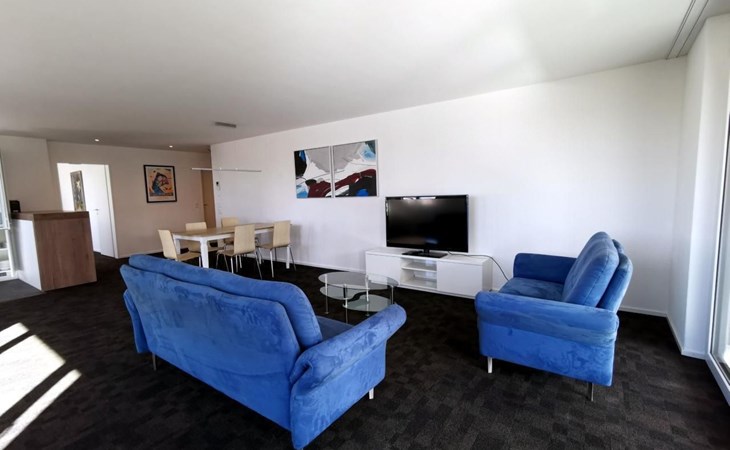The flat consists of 3 separate bedrooms, a large living/dining room, an integrated open-plan kitchen, a spacious bathroom with shower and bathtub and a beautiful large balcony.