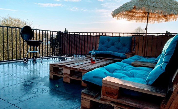 25sqm roof terrace with lounge furniture, barbecue and parasol.private parking on the property