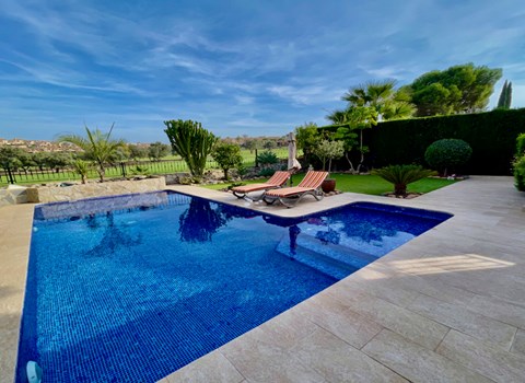 large terrace fenced with a railing and with privileged views of the mediterranean sea, has an electric awning and has outdoor tables and chairs.