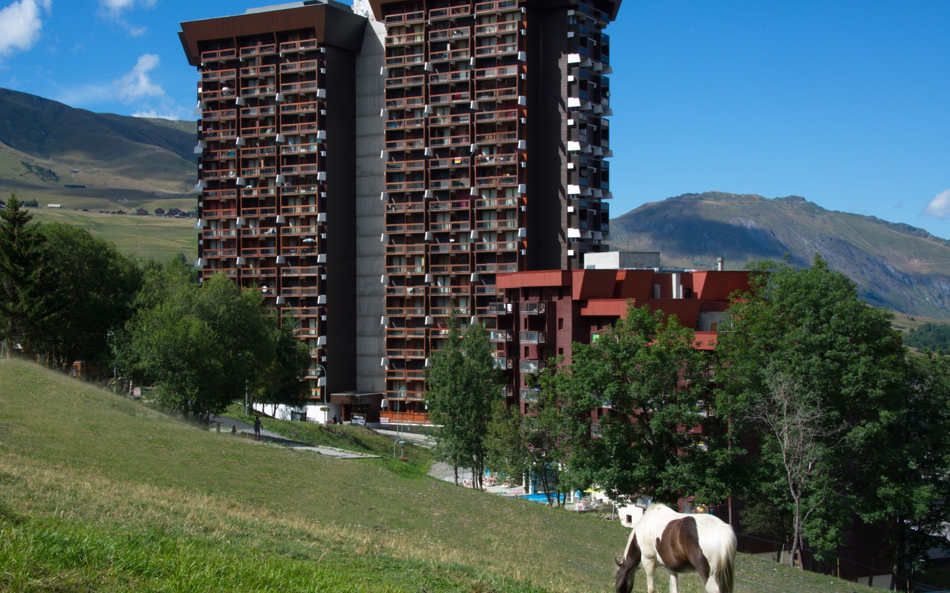 Apartment house "Pegase Phenix", 19 storeys. Below Corbier, 350 m from the centre, 150 m from the skiing area. For shared use: swimming pool heated (25 x 12 m, depth 90 - 200 cm, seasonal availability: 14.Dec. - 11.Apr. and 28.Jun. - 29.Aug. pool opening hours: 10:00-19:30). In the complex: lift, storage room for skis. Public parking 50 m. Shop 350 m, grocery 50 m, restaurant, bar 350 m, bus stop 20 m, railway station "St Jean de Maurienne" 15 km, outdoor swimming pool 350 m. Ski lift, chair lift 150 m, ski school 350 m, ski-kindergarten 100 m, sled run 350 m. Please note: In case of good snow conditions, the house is accessible on skis. Additional accommodations can be booked. The swimming pool indicated is located 250 m from the residence: it is the municipal outdoor swimming pool. Children from 3 to 5 years old, access authorized depending on weather conditions (in winter). The swimming pool is included with the rental.