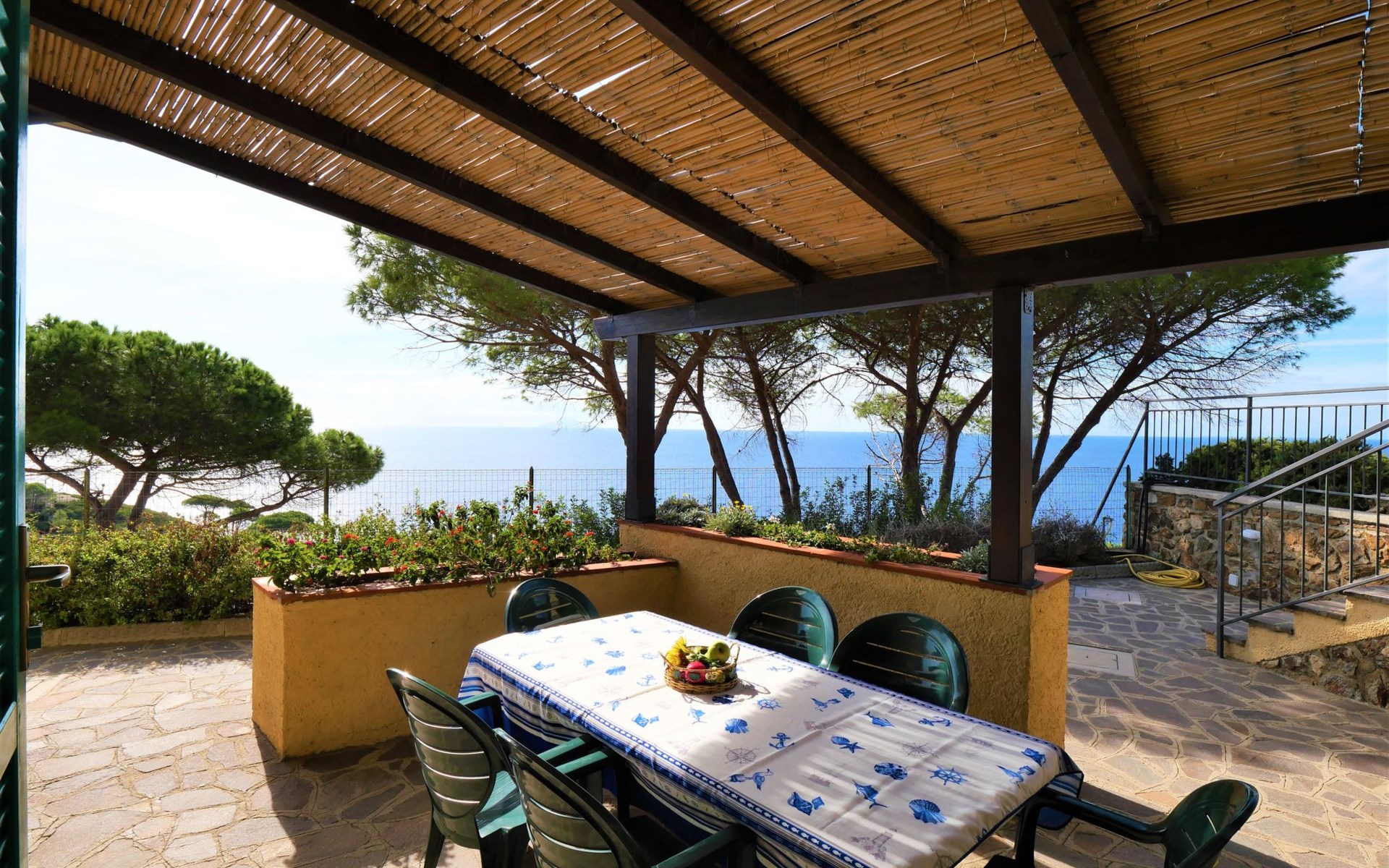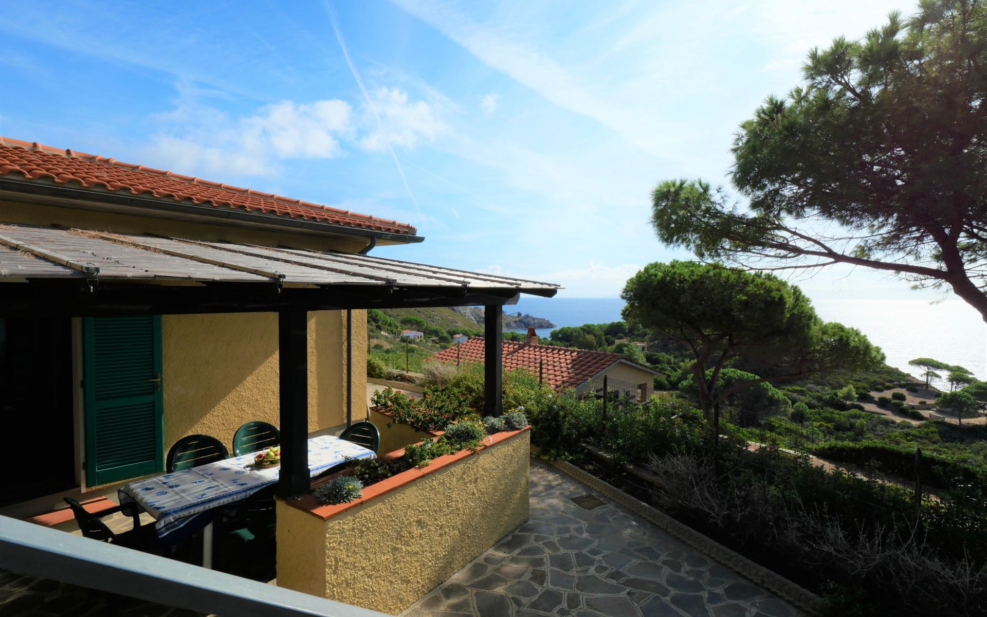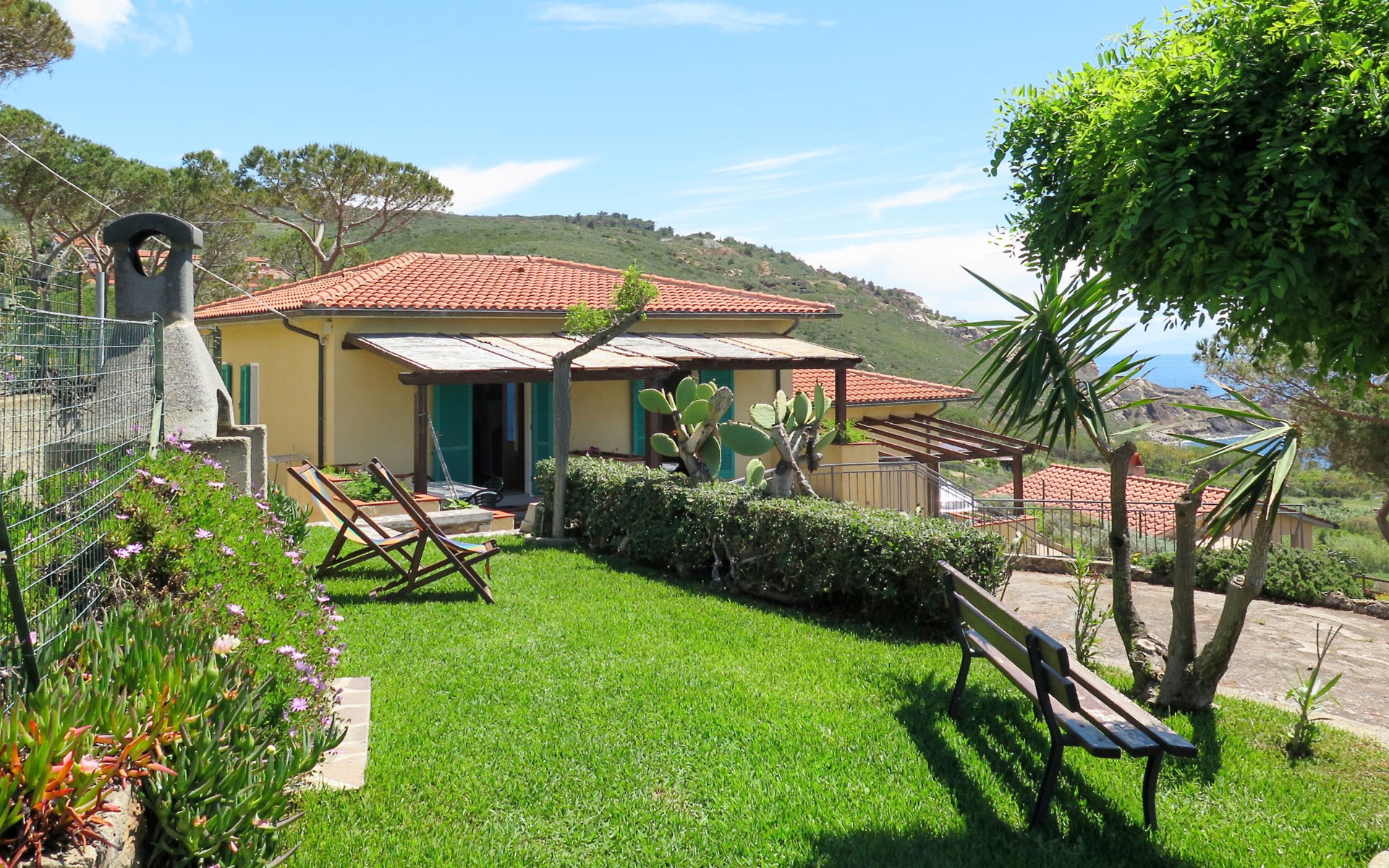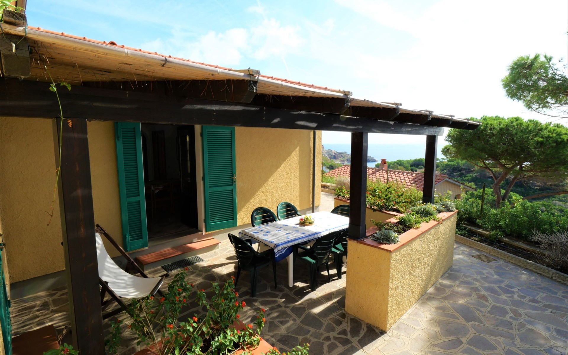 3-family house, surrounded by trees. Above Innamorata 5 km from the centre of Capoliveri, 800 m from the centre of Innamorata, 19 km from the centre of Portoferraio, in an elevated position on a slope, 800 m from the sea. For shared use: terraced garden, 70 m2 with lawn and plants. Outdoor shower, barbecue. In the house: WiFi. Motor access (100 m via unmade road). Parking on the premises. Grocery 1 km, supermarket 5 km, restaurant, bar 800 m, bus stop 4.9 km, ferry "Portoferraio" 19 km, sandy beach "Innamorata" 800 m.