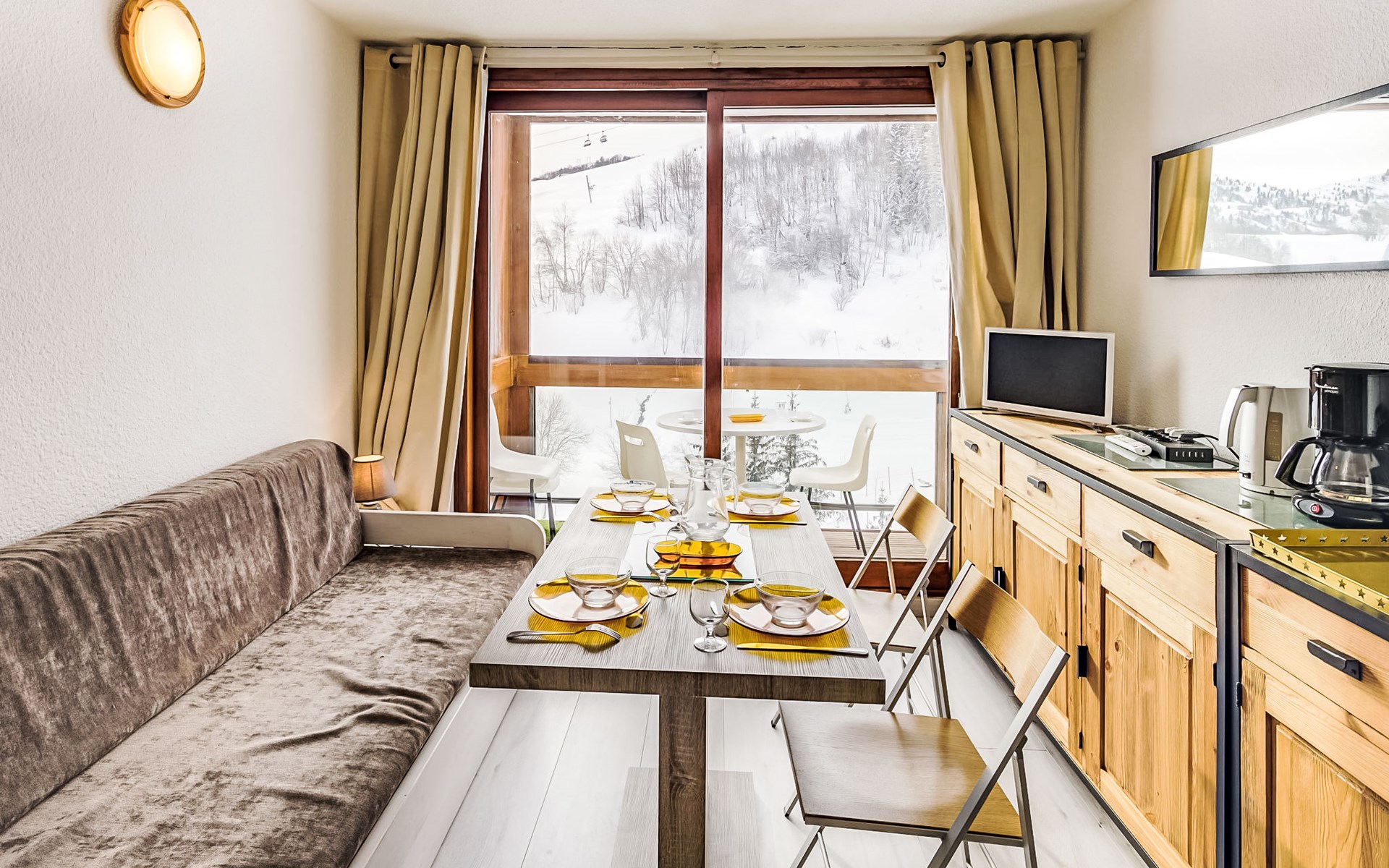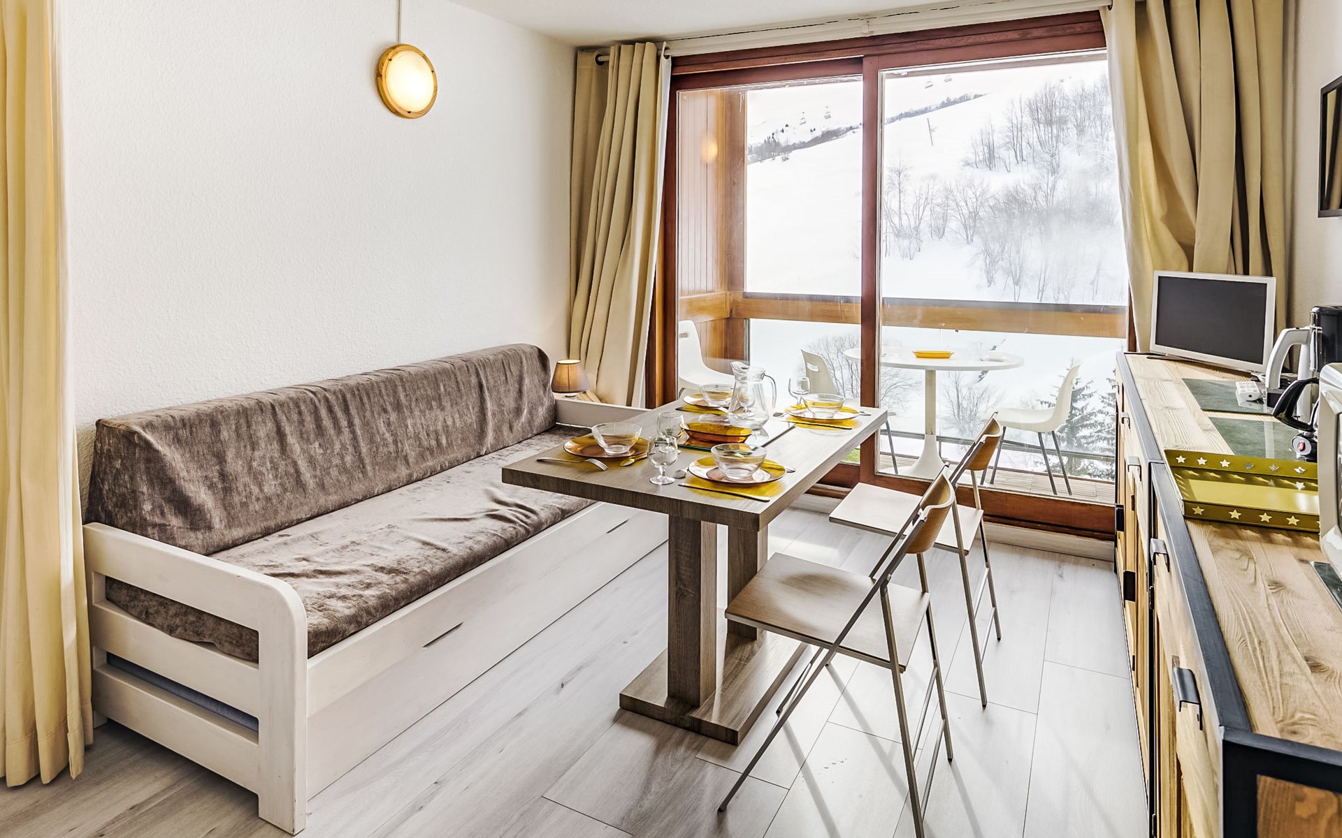 Apartment house "Soyouz Vanguard", 19 storeys. 150 m from the centre, 150 m from the skiing area. For shared use: swimming pool heated (seasonal availability: 14.Dec. - 11.Apr. and 28.Jun. - 29.Aug. pool opening hours: 10:00-19:30). In the complex: internet access, lift, storage room for skis. Public parking. Shop 200 m, grocery 50 m, restaurant, bar 200 m, bus stop 450 m, railway station "St Jean de Maurienne" 15 km, outdoor swimming pool 200 m. Skisport facilities, slopes, ski school 200 m, ski-kindergarten 50 m, sled run 200 m. Please note: Additional accommodations can be booked. The swimming pool facilities are 150 m from the residence at the municipal pool. Entrance for under 3’s is not allowed. Children between 3 and 5 years old are allowed subject to weather conditions (in winter). Entrance tickets to the swimming pool are included in your rental price and will be given to you when you check in.